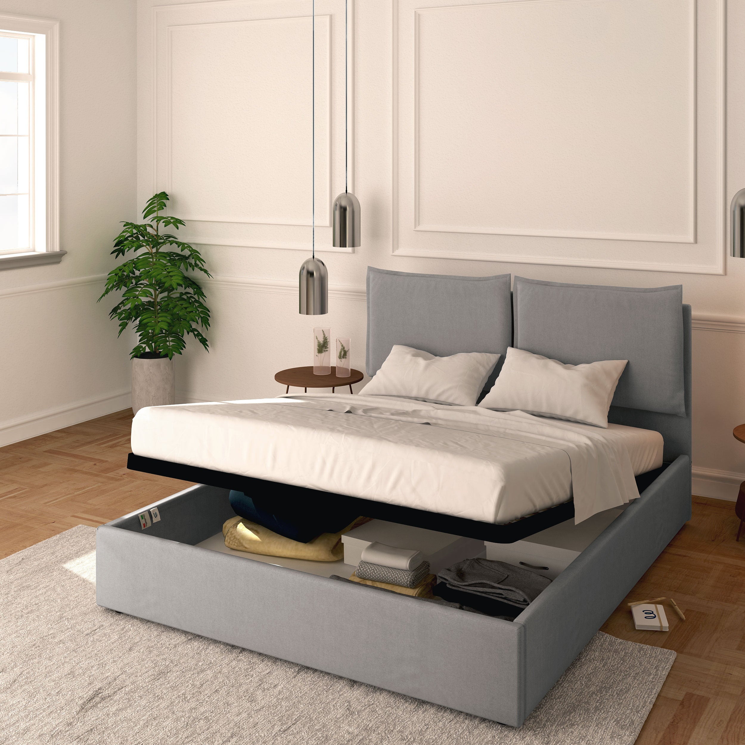 Letto contenitore matrimoniale in tessuto ignifugo sfoderabile Monet