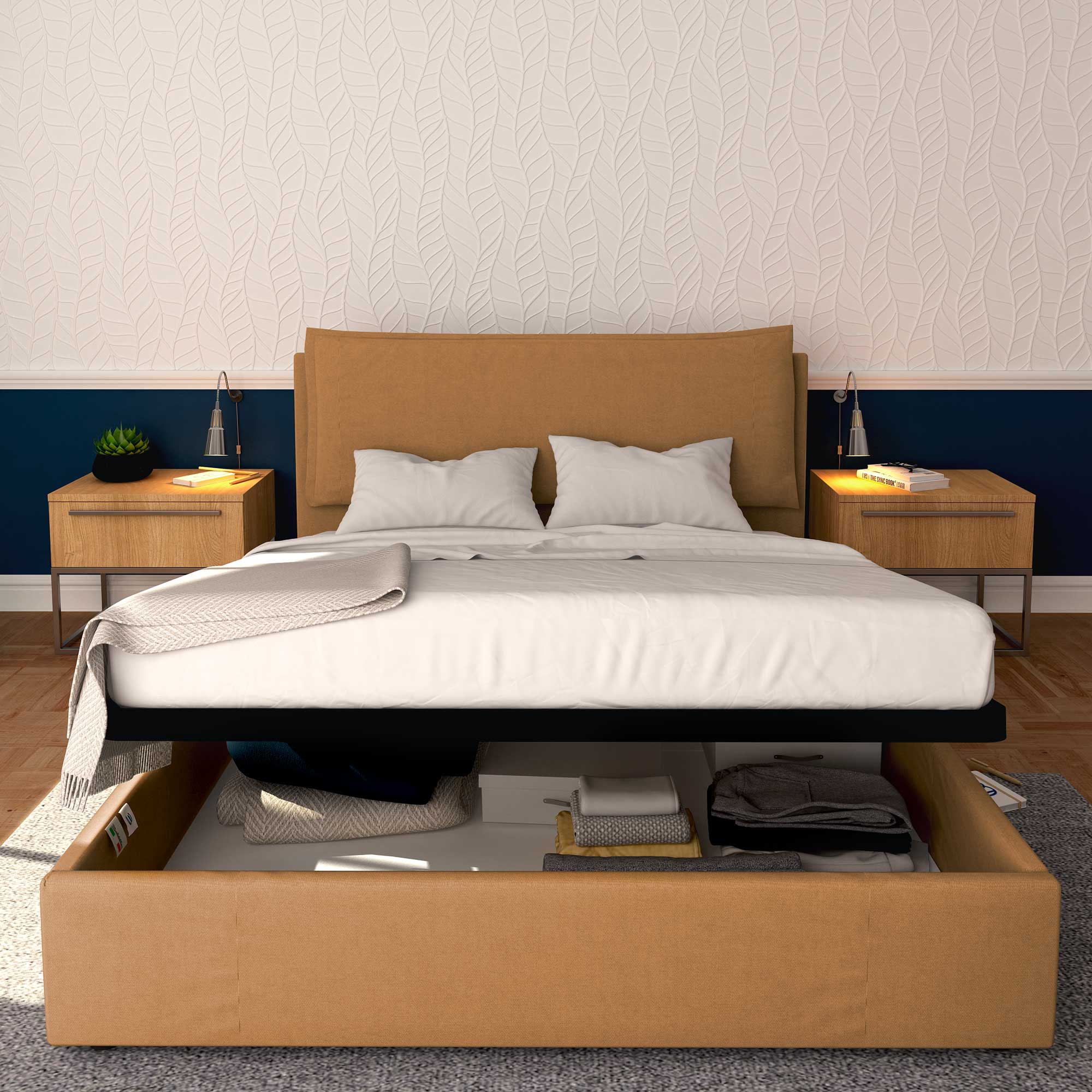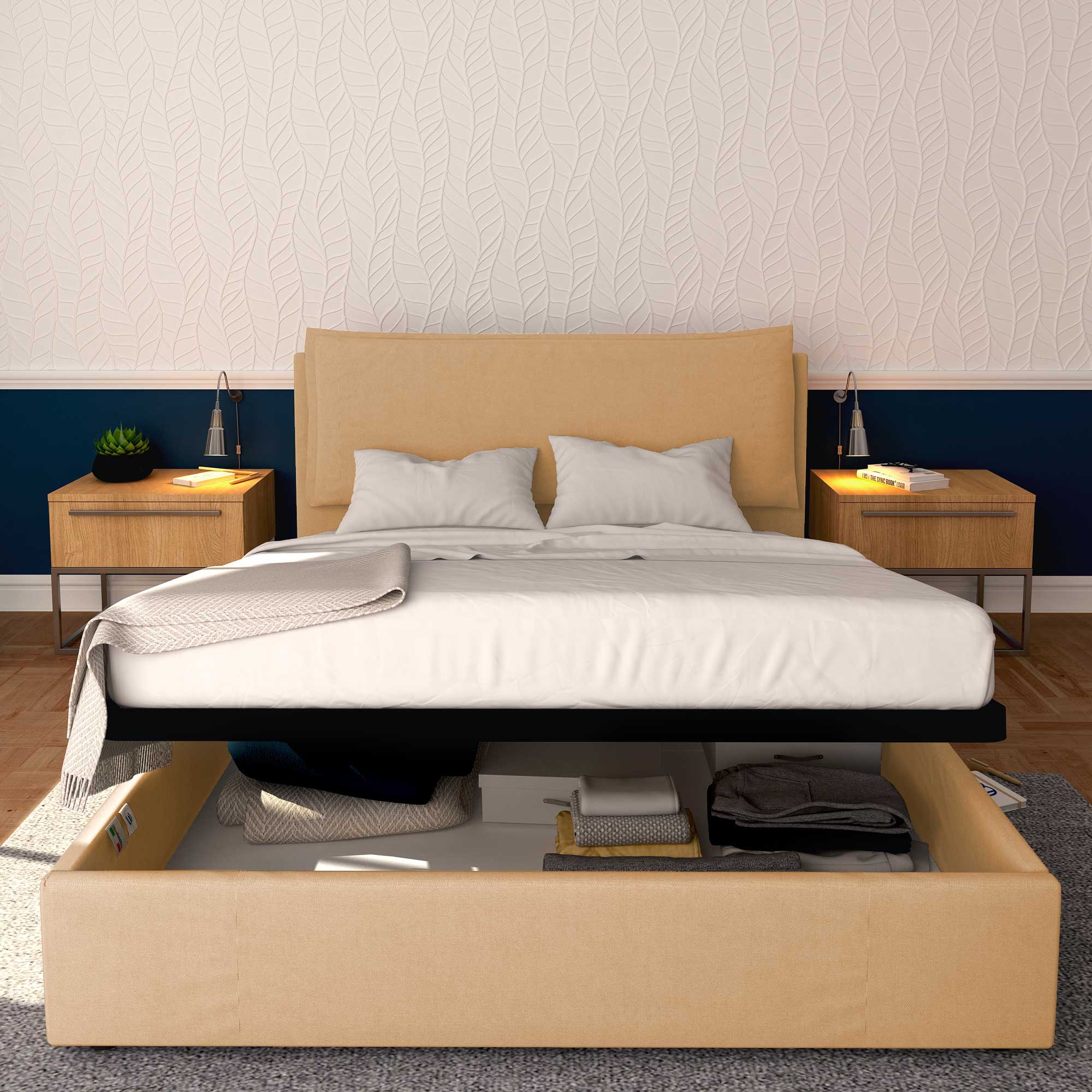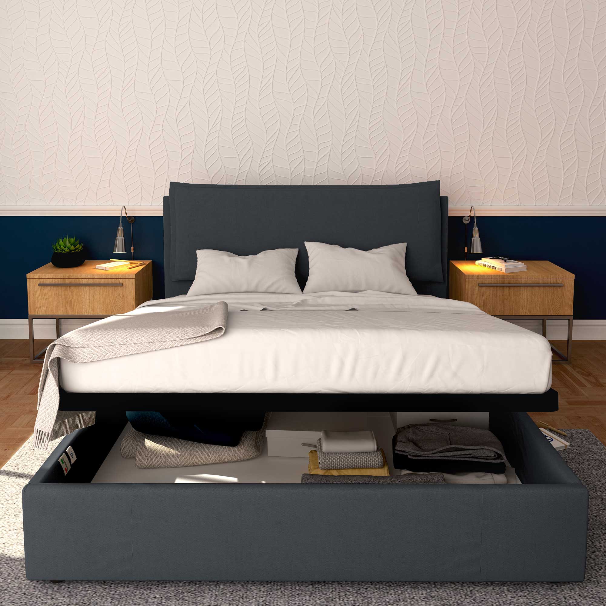 Il letto contenitore matrimoniale in ecopelle sfoderabile Giuliano permette di sfruttare lo spazio sotto al letto per riporre coperte, lenzuola, piumoni, abiti e scatole. La rete e il materasso si sollevano agevolmente attraverso la maniglia di presa. Il letto contenitore arriva a casa da montare, corredato di semplici istruzioni da seguire.