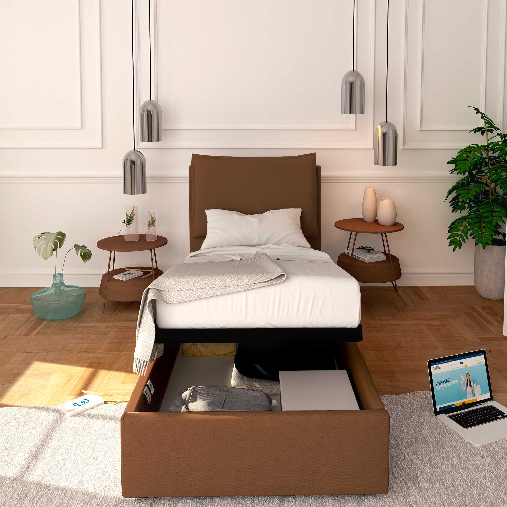 Letto contenitore singolo in ecopelle sfoderabile Licia