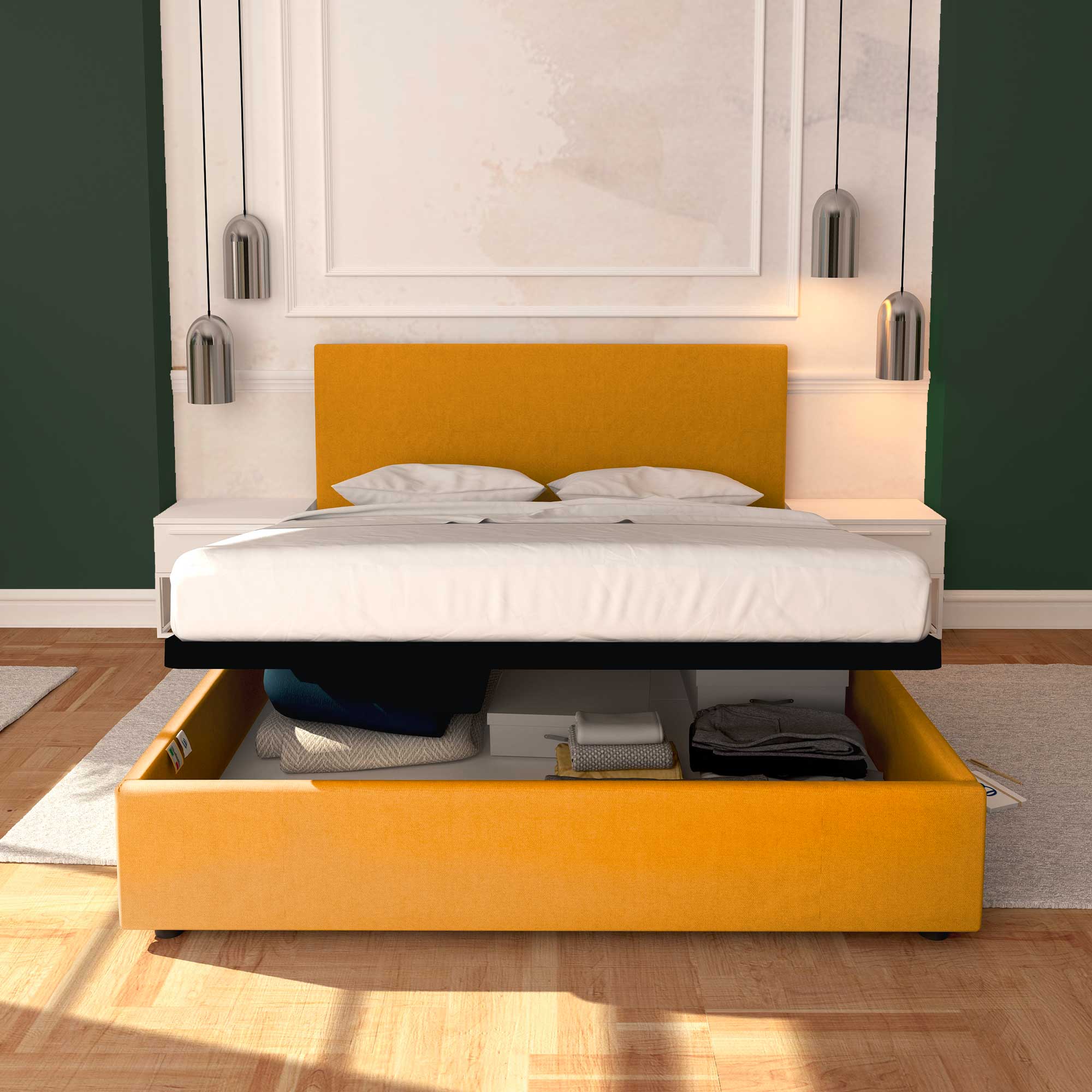Letto contenitore matrimoniale in tessuto sfoderabile Rossano