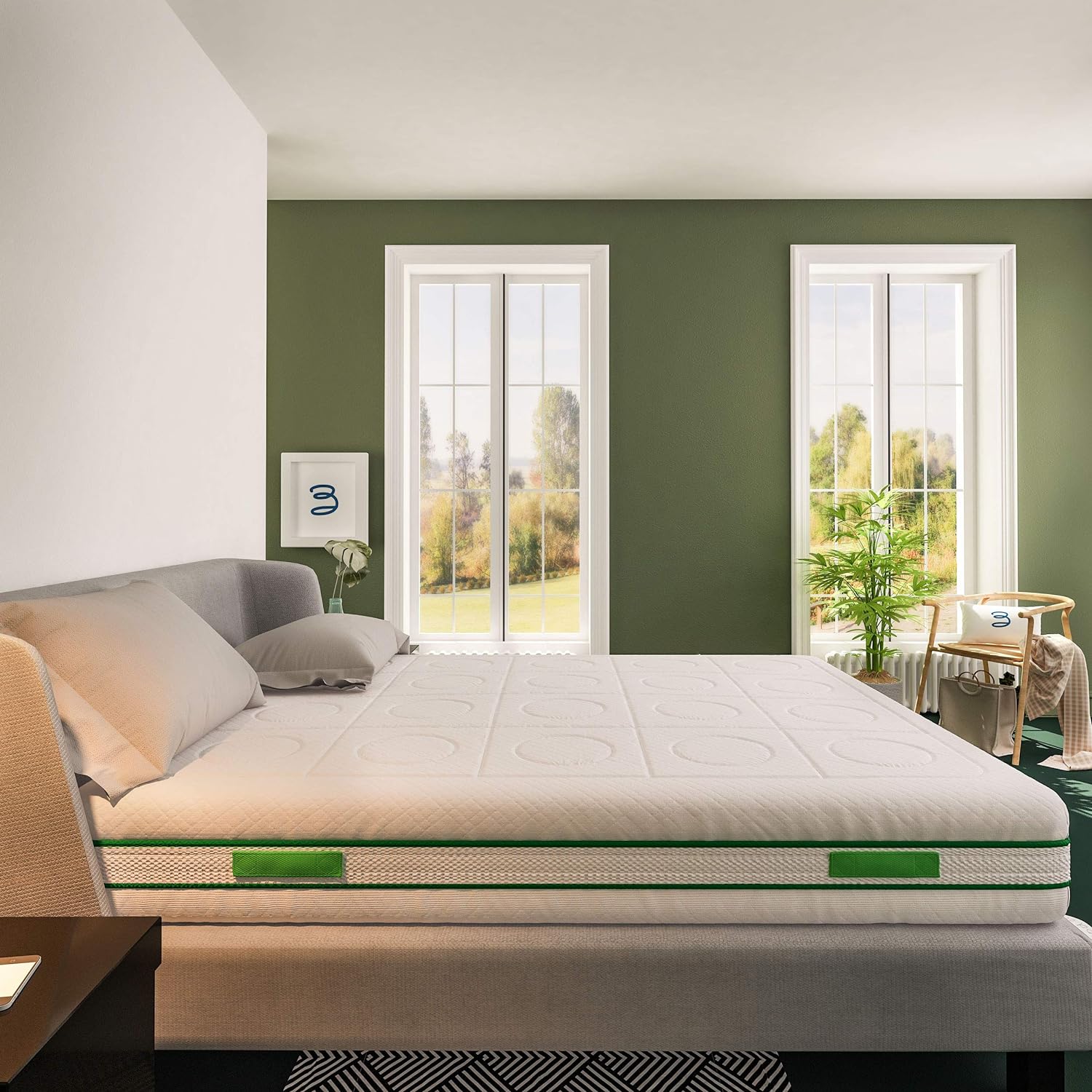 Il materasso in memory e 800 molle Green Spring è alto 25 cm e ha una rigidità medio alta. Lo strato in memory foam da 3 cm nella parte superiore dona un tocco di morbidezza aggiuntiva sul piano molle. Le 800 molle (nella versione matrimoniale) dal diametro di 5,5 cm ciascuna, sono insacchettate singolarmente e garantiscono un'ottima personalizzazione del sostegno e grande resistenza. Il sostegno elevato delle molle si unisce al comfort del memory.