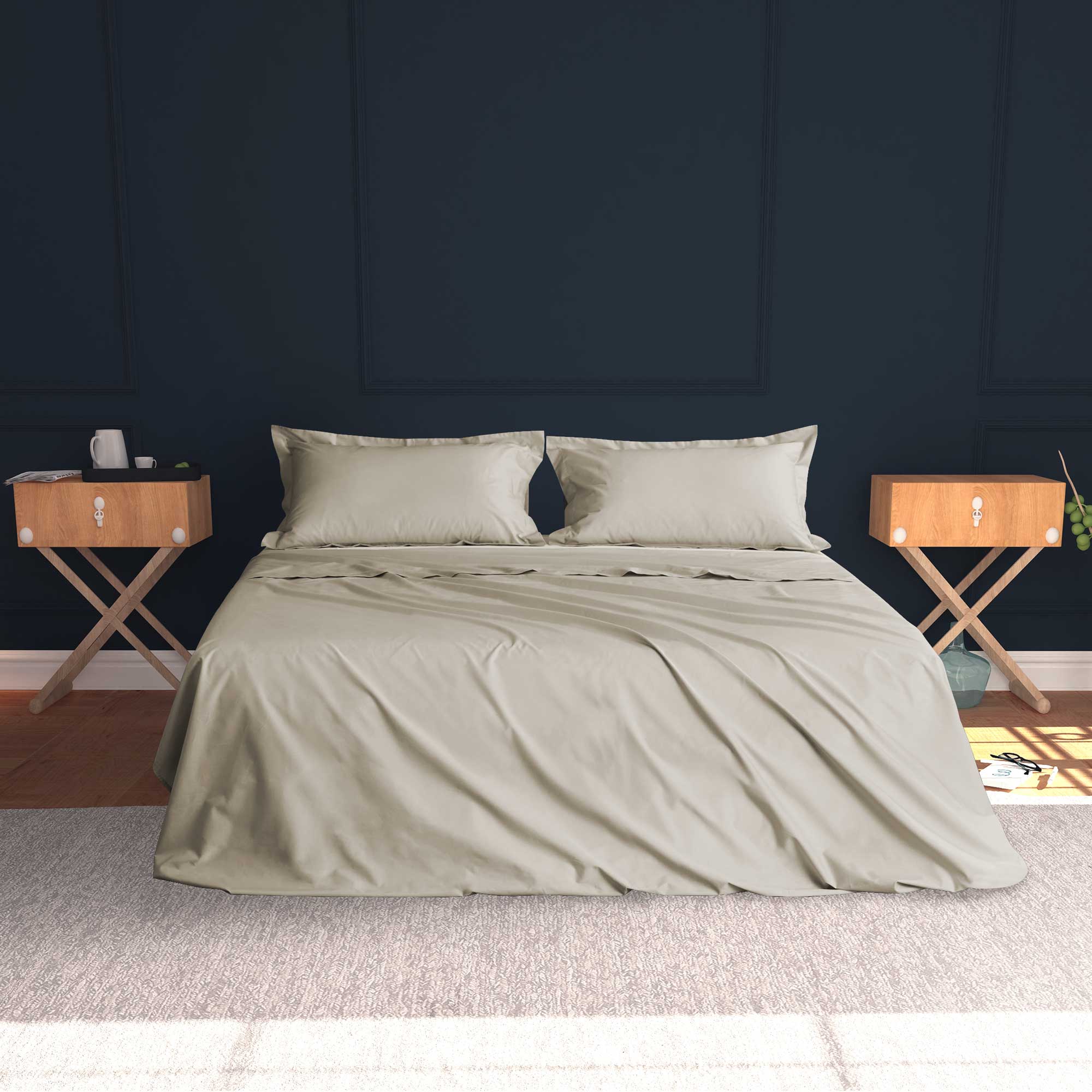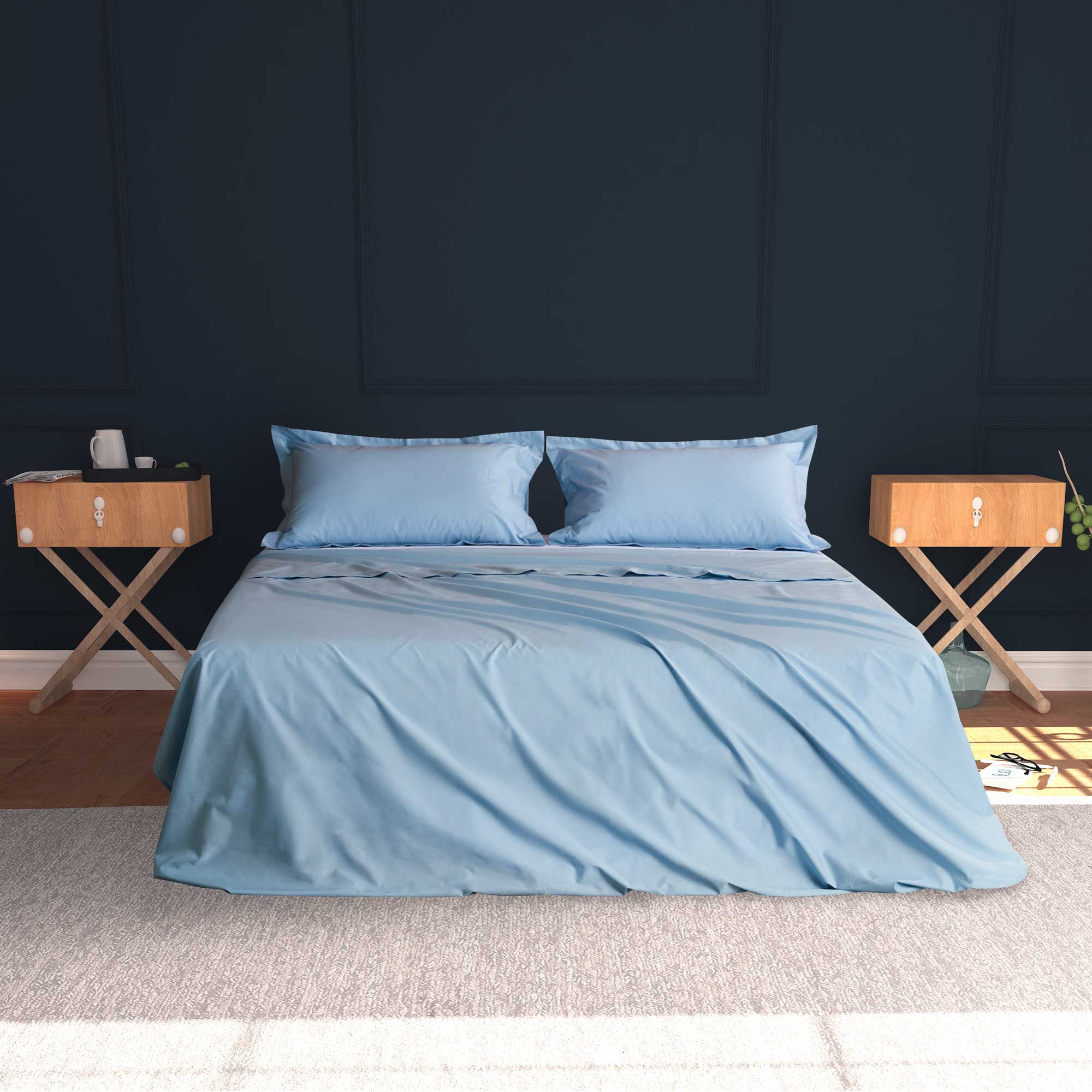 • Solid color top sheet with hemmed finish for a mattress up to 25 cm high and 190/200 cm long
