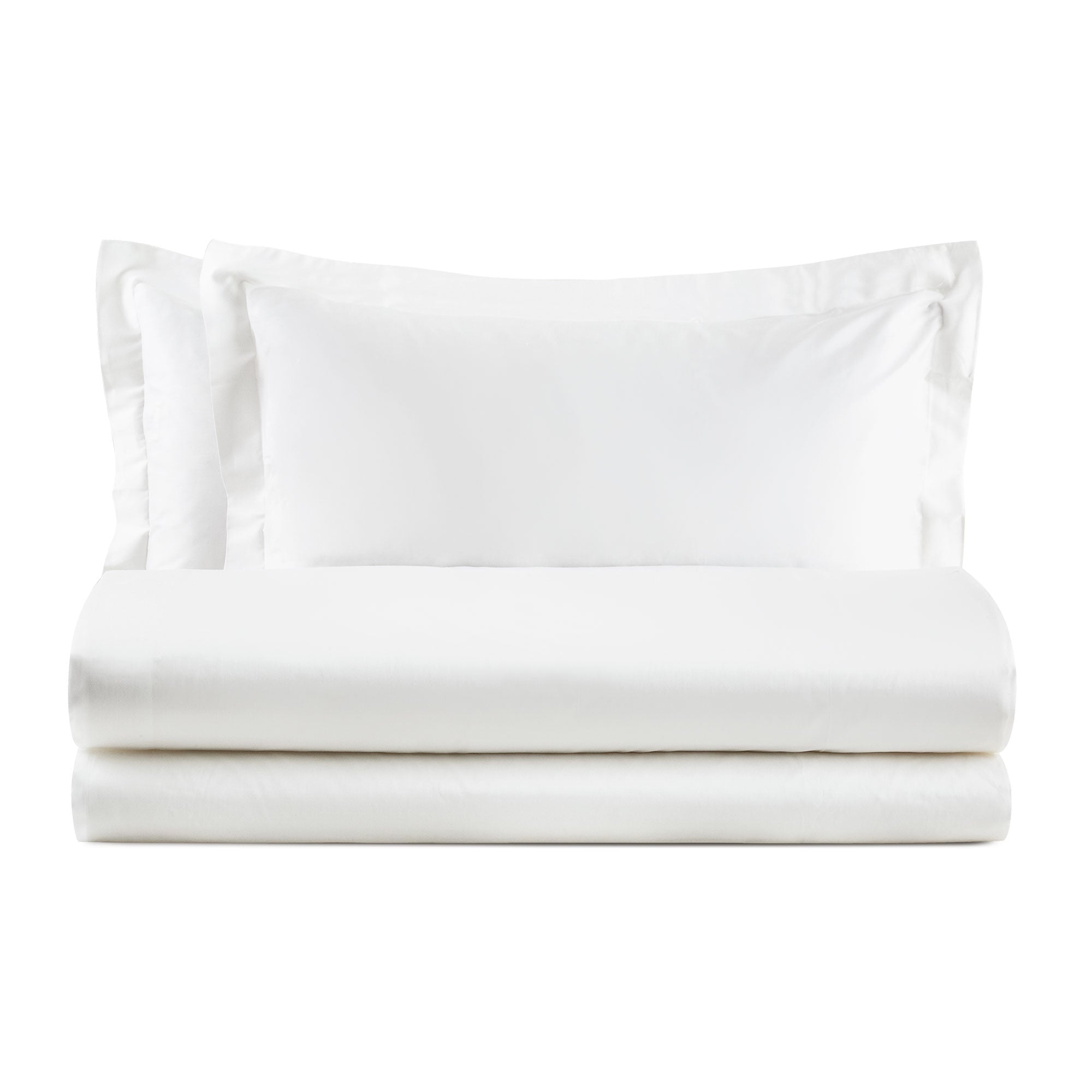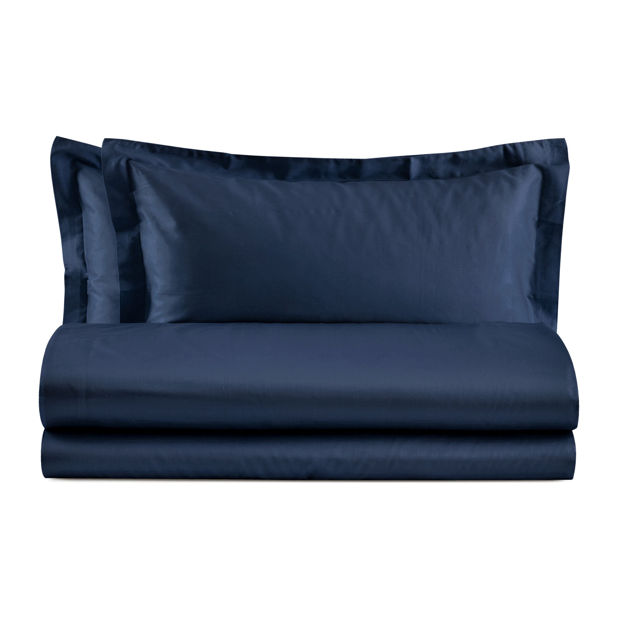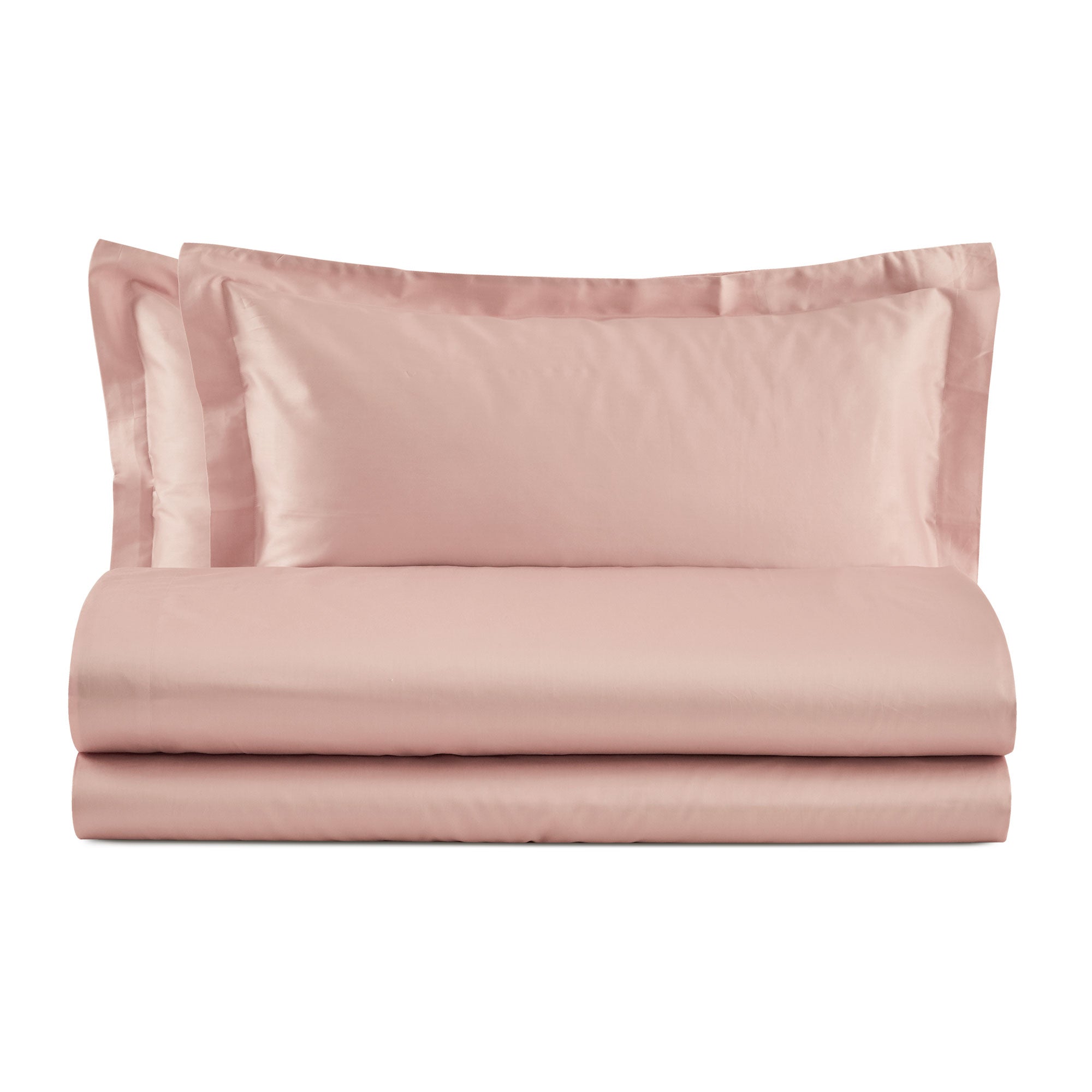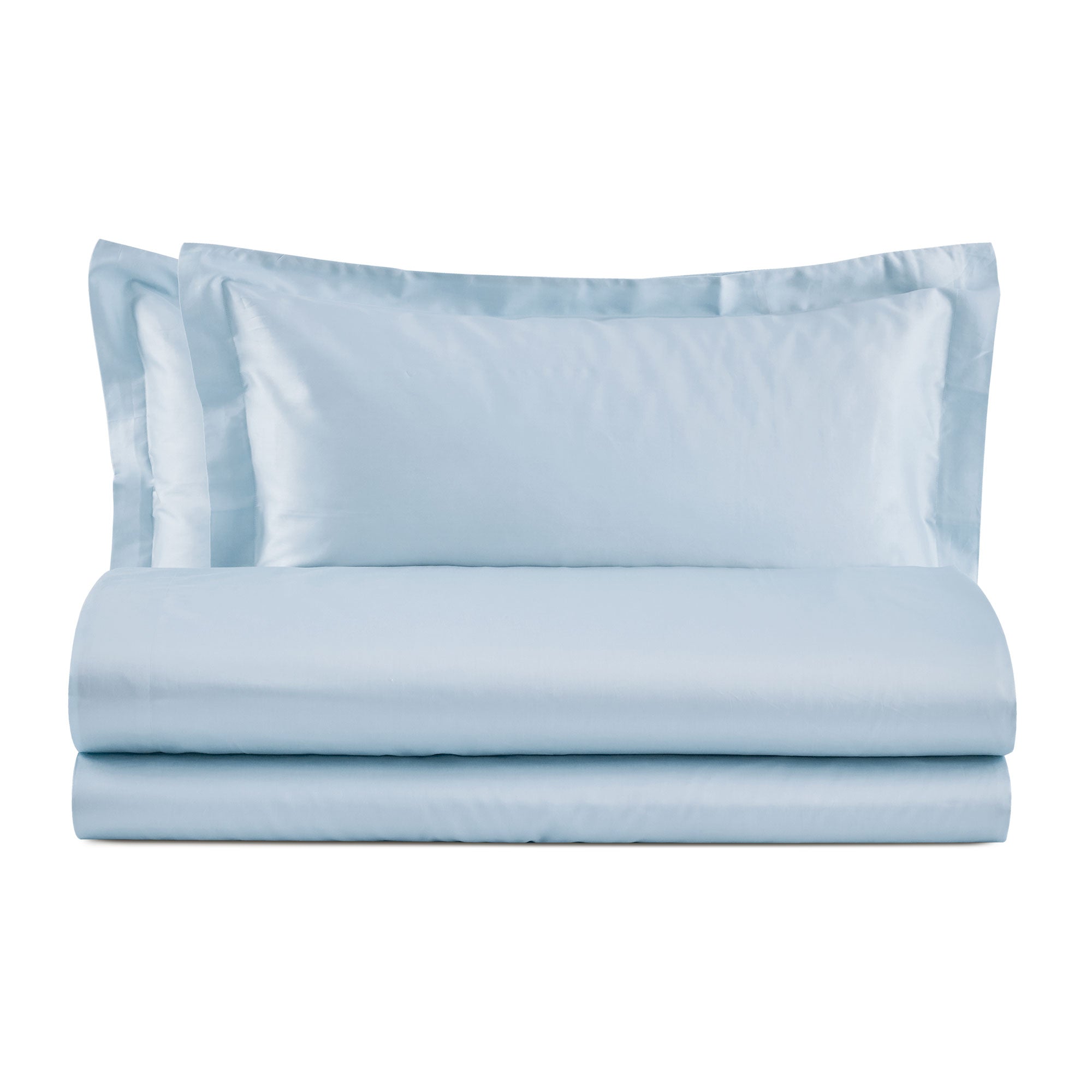 The bed set consists of a top sheet, a fitted sheet with corners, and one pillowcase per bed size. The refined set is made of pure cotton satin 300 T.C. and features meticulous finishes. The sheets are designed for a mattress up to 22 cm high. The bright colors are tested to withstand long washes.
