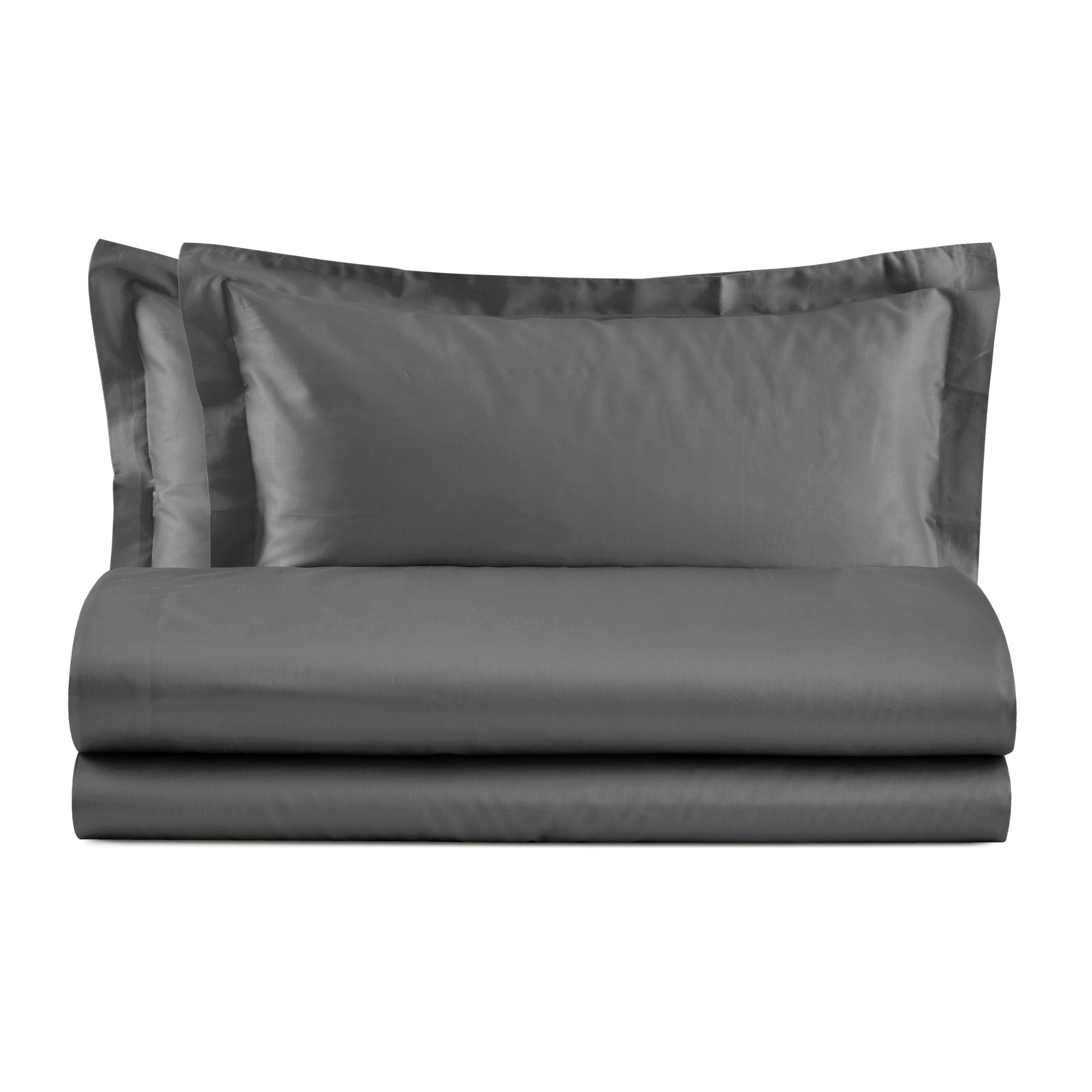 • Baldiflex completo letto in raso con lenzuola e federe grigio scuro