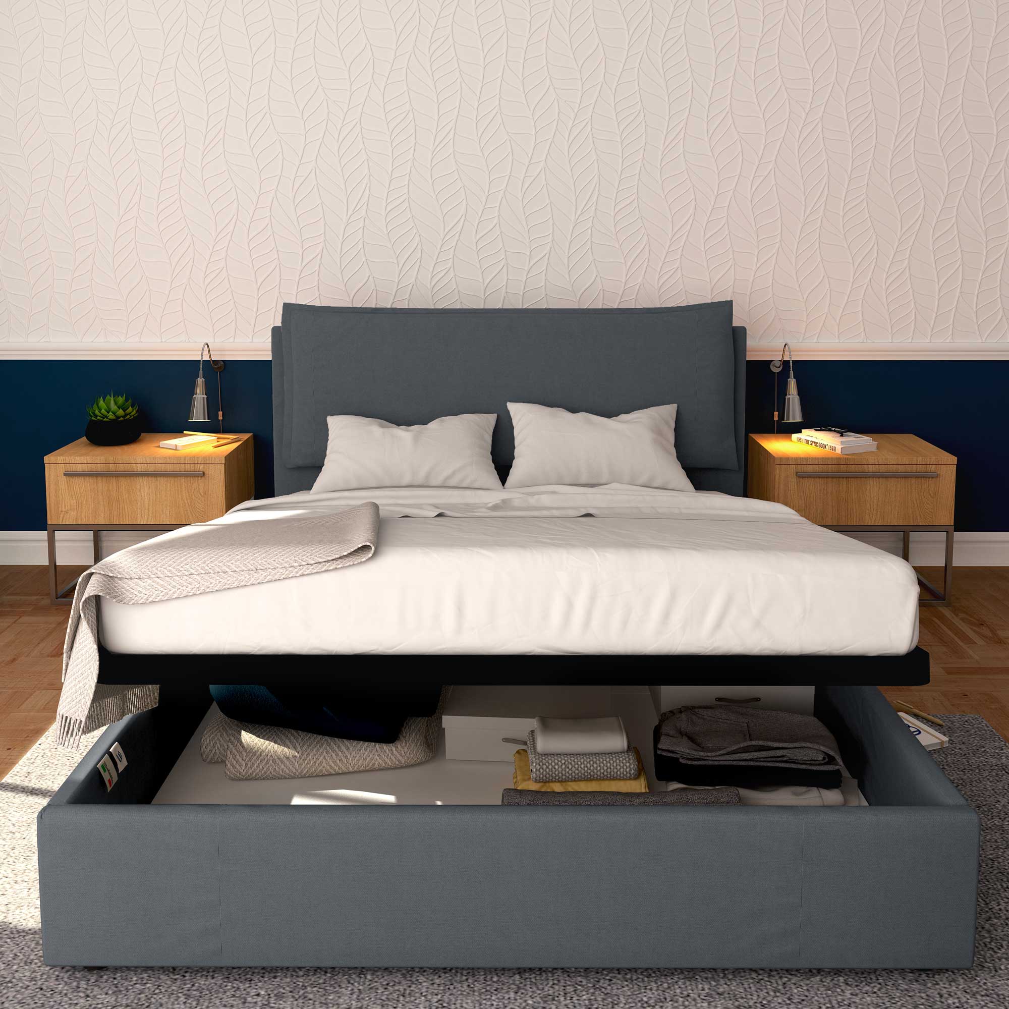 • Baldiflex letto contenitore matrimoniale in tessuto sfoderabile Giuliano grigio grafite