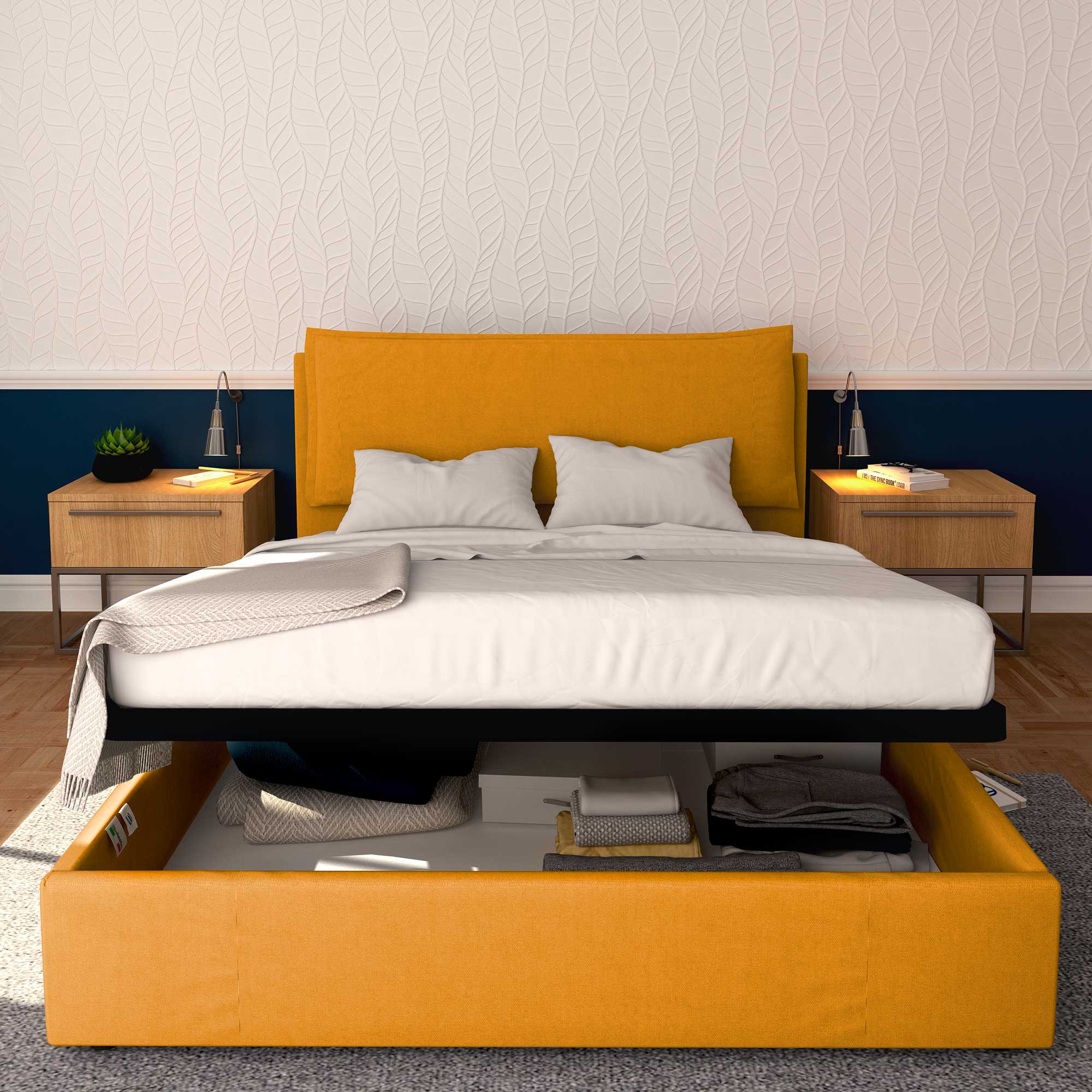 • Baldiflex letto contenitore matrimoniale in tessuto sfoderabile Giuliano mango