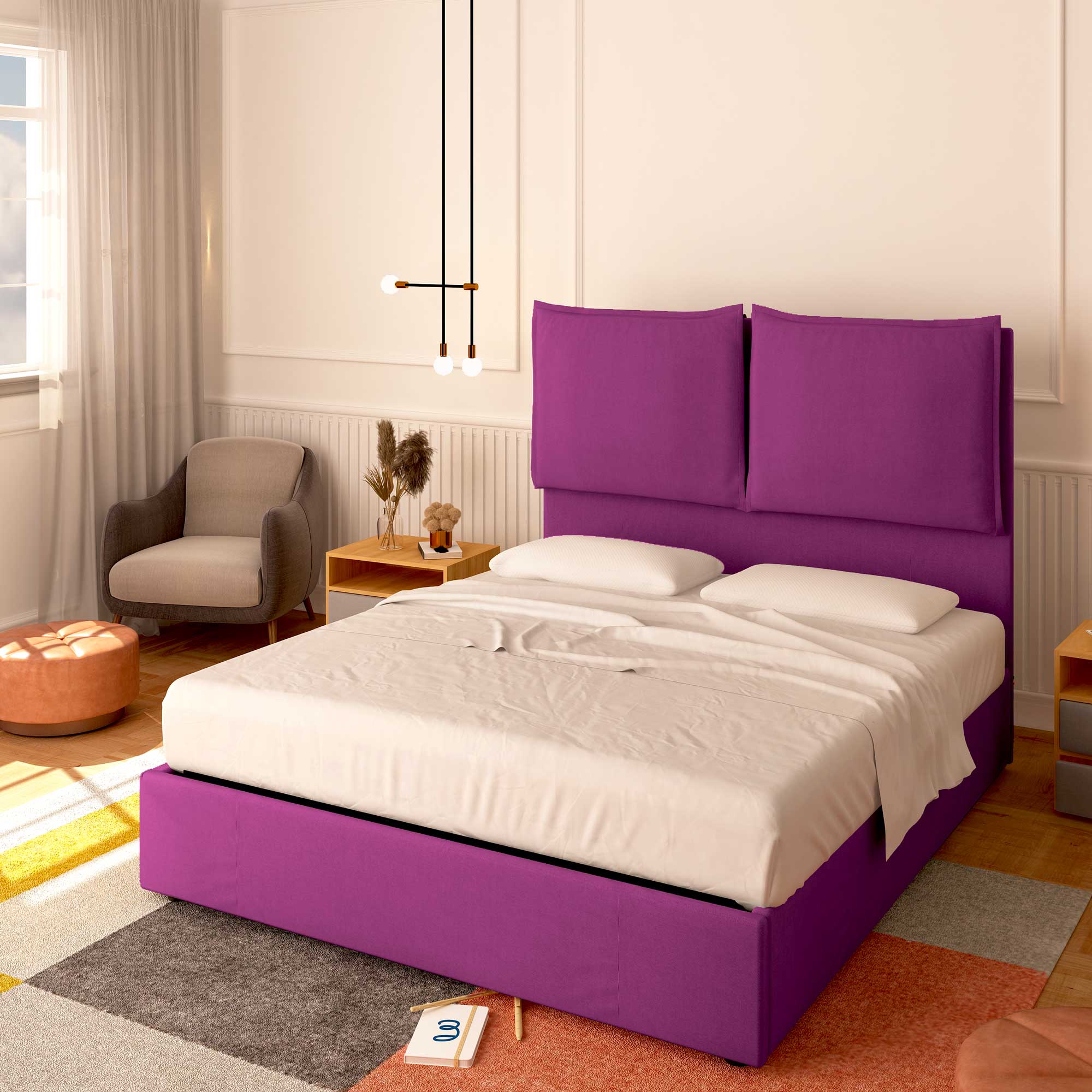 • Baldiflex letto contenitore king size in tessuto Licia XL viola