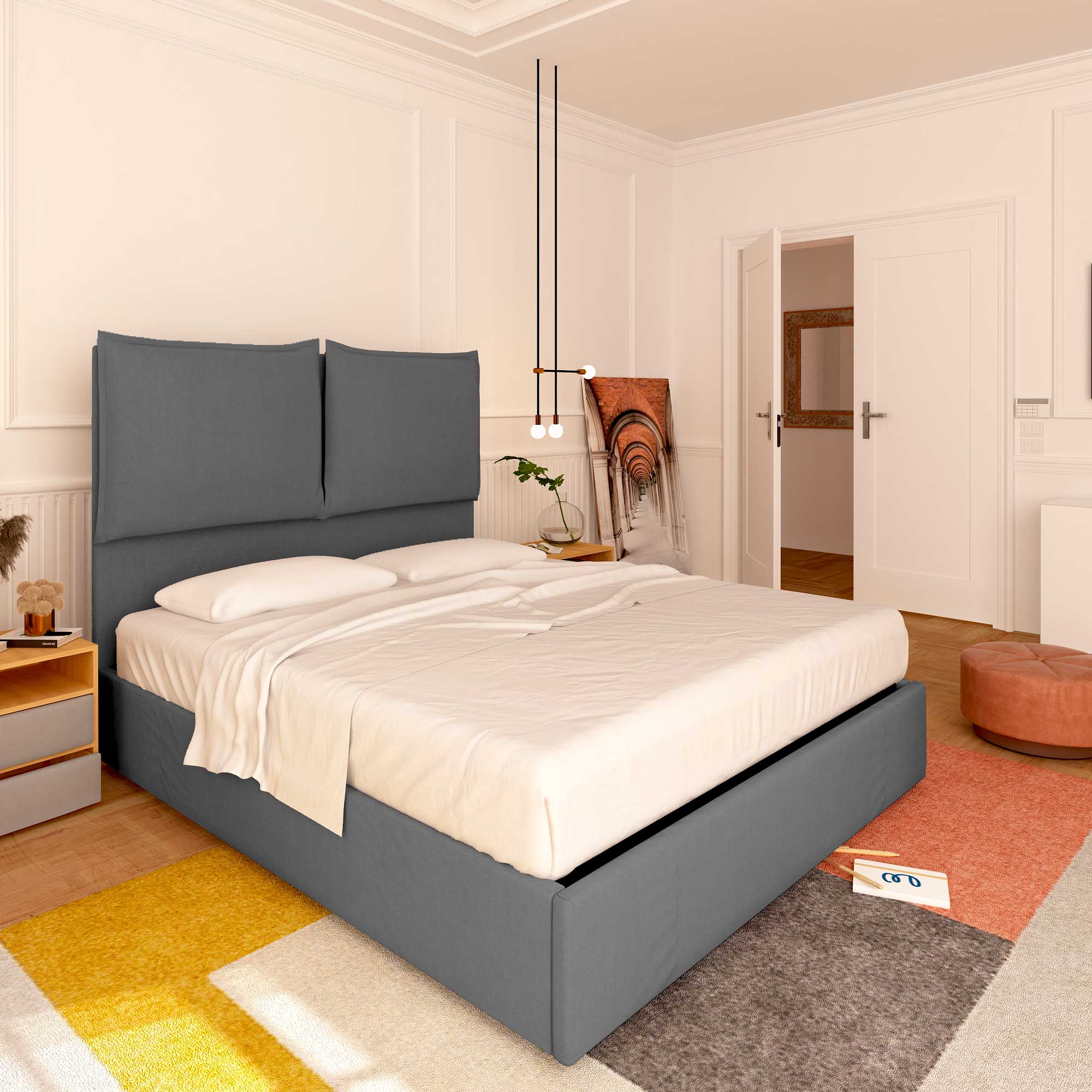 King size / queen size storage bed in Licia XL fabric
