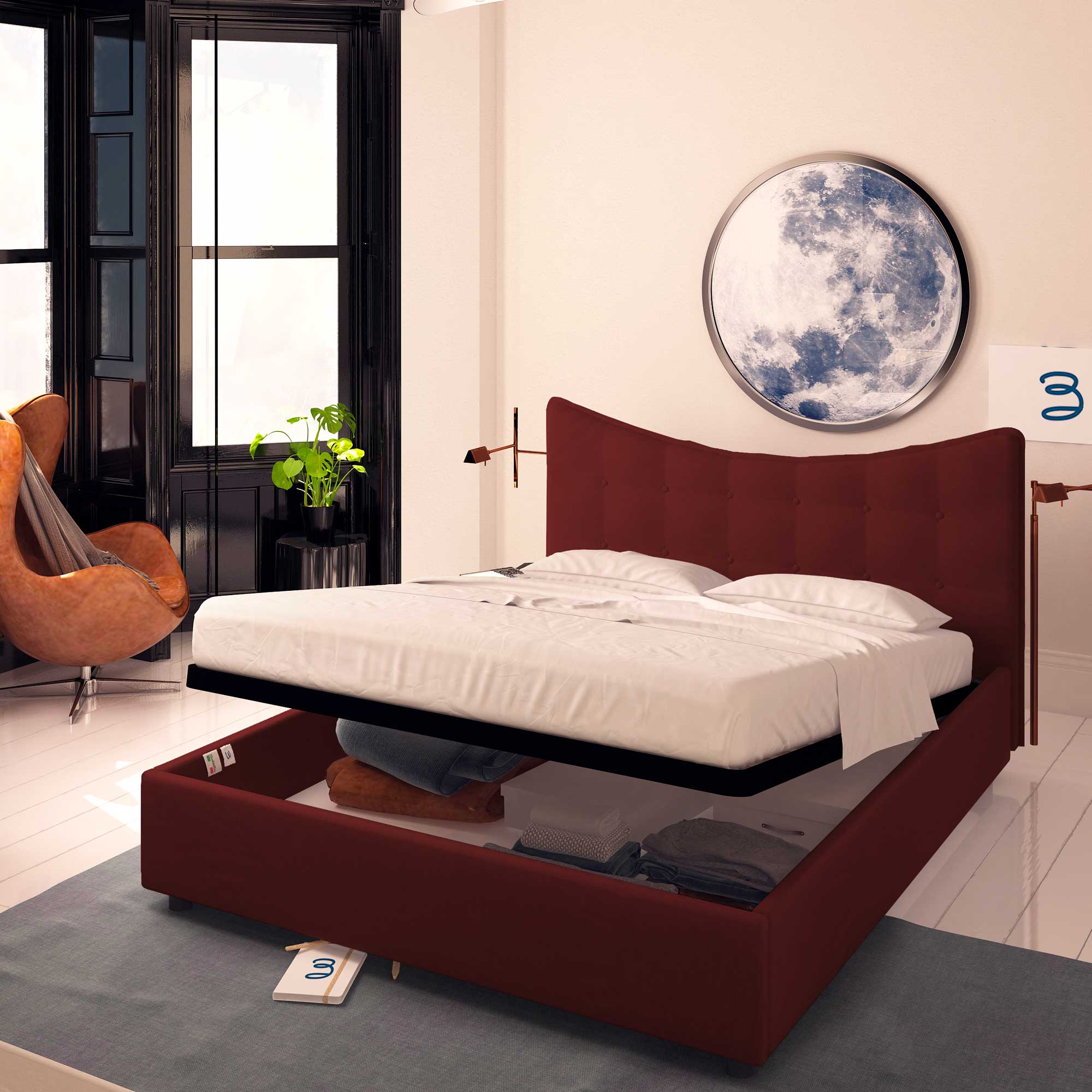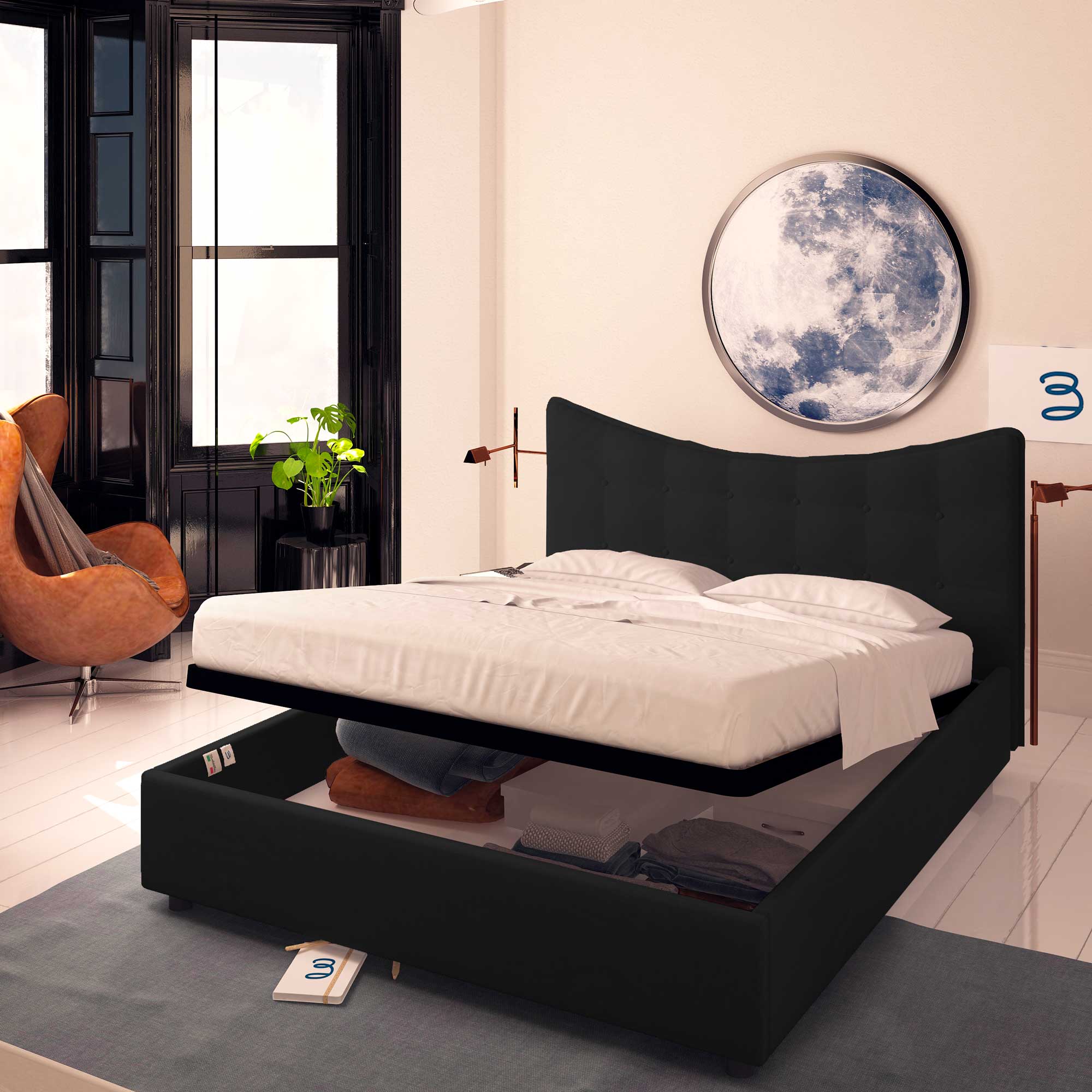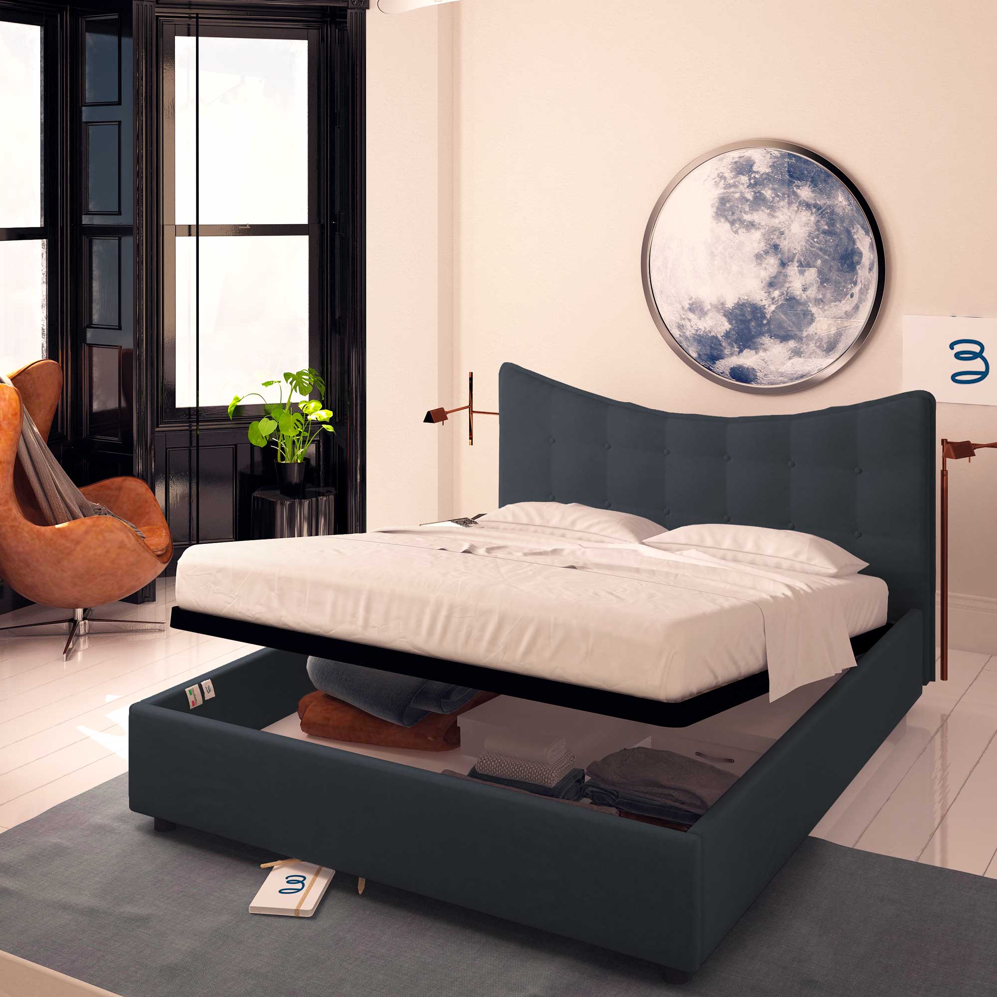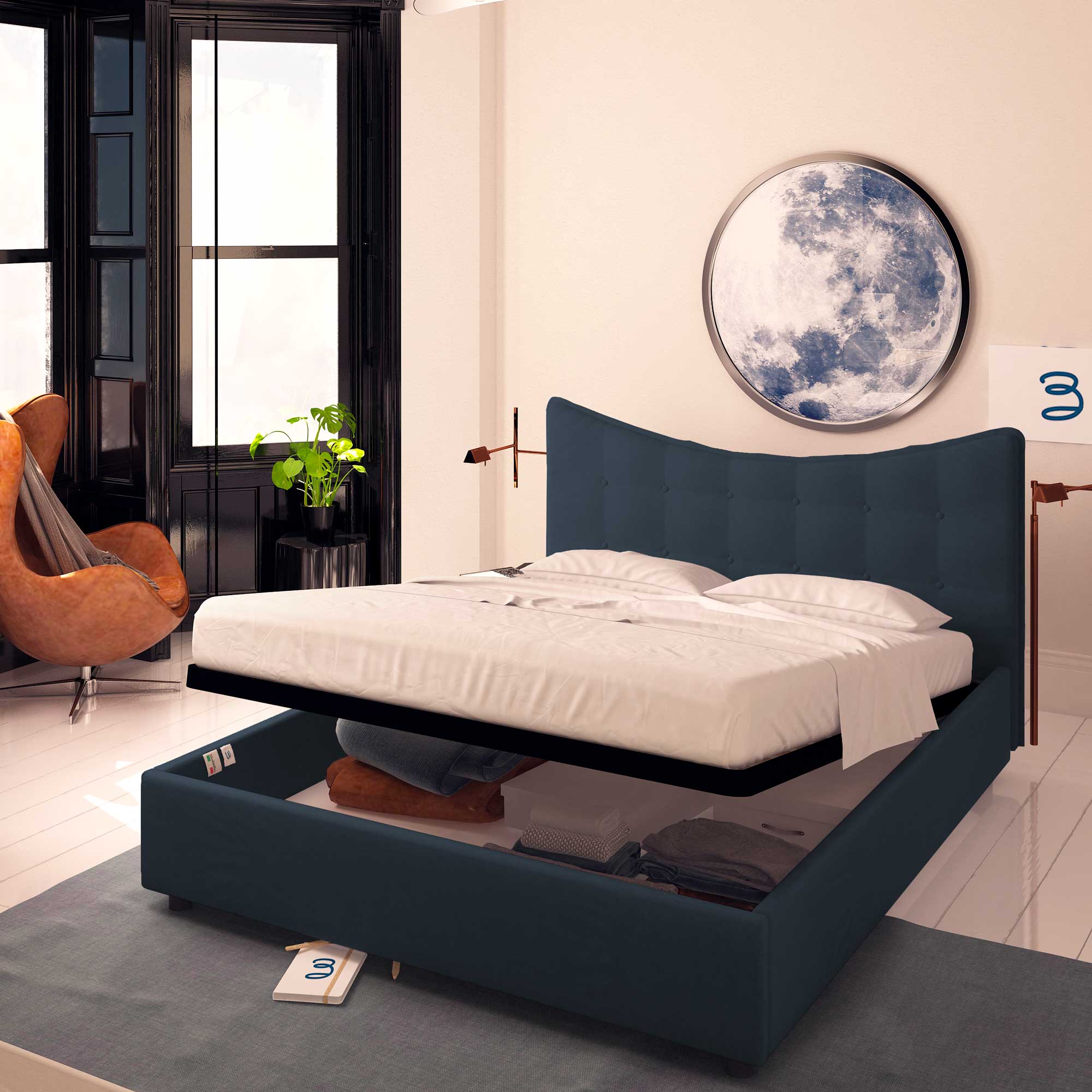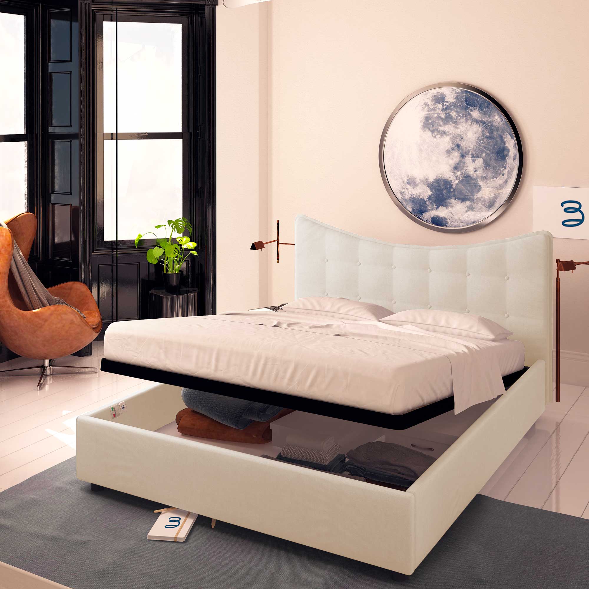 The Moon faux leather double storage bed allows you to utilize the space under the bed to store blankets, sheets, duvets, clothes, and boxes. The bed base and mattress lift easily via the handle. The storage bed arrives at home to be assembled, accompanied by simple instructions to follow.
