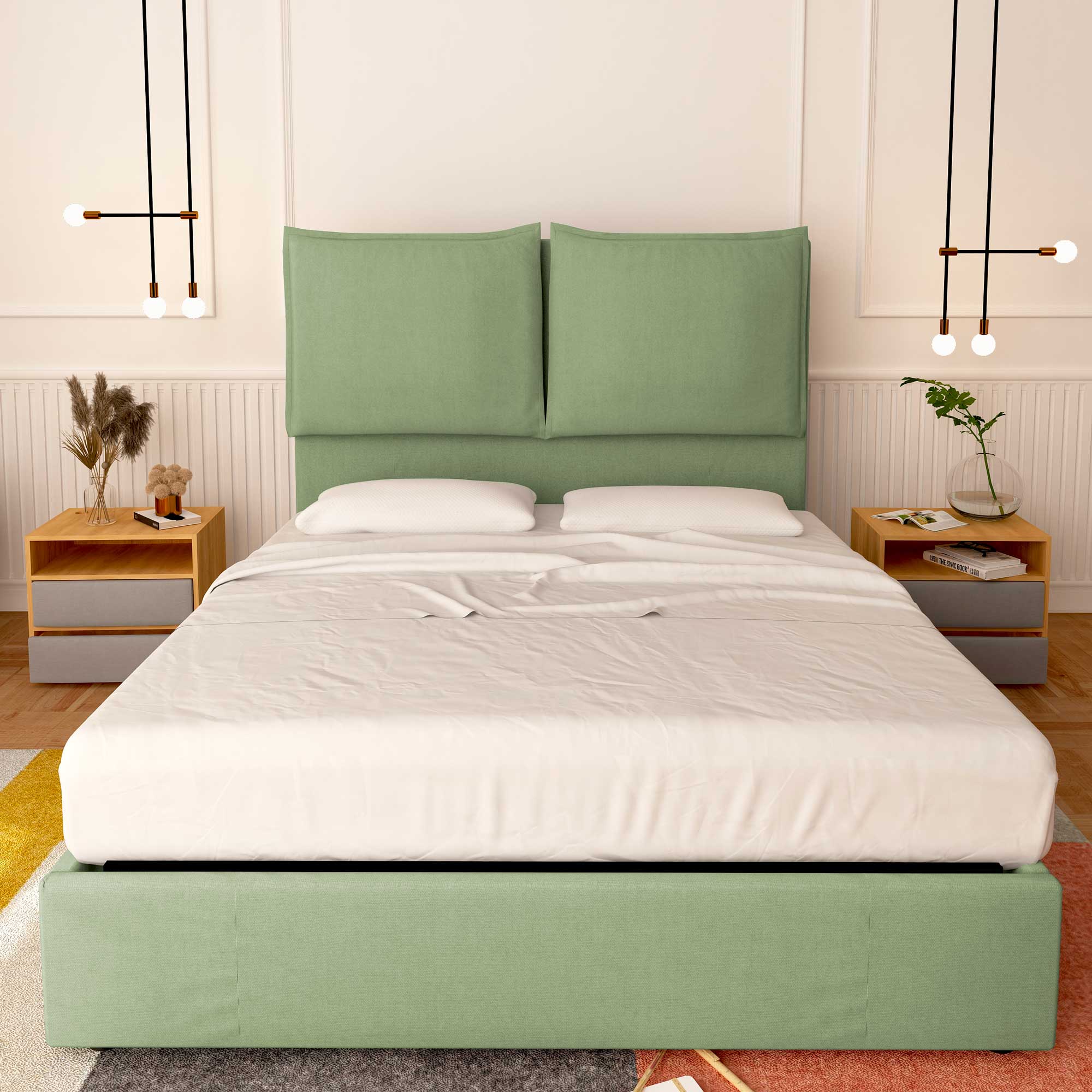 • Baldiflex letto contenitore matrimoniale in tessuto Licia XL verde menta da destra