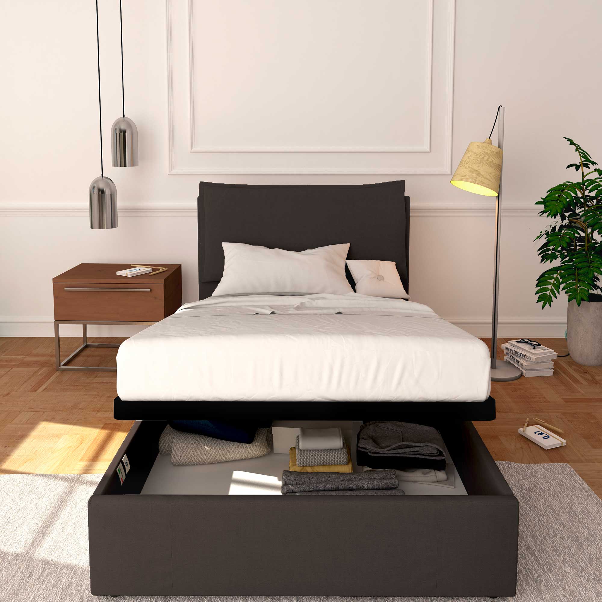 • Baldiflex letto contenitore a una piazza e mezzo in tessuto sfoderabile Licia grigio antracite