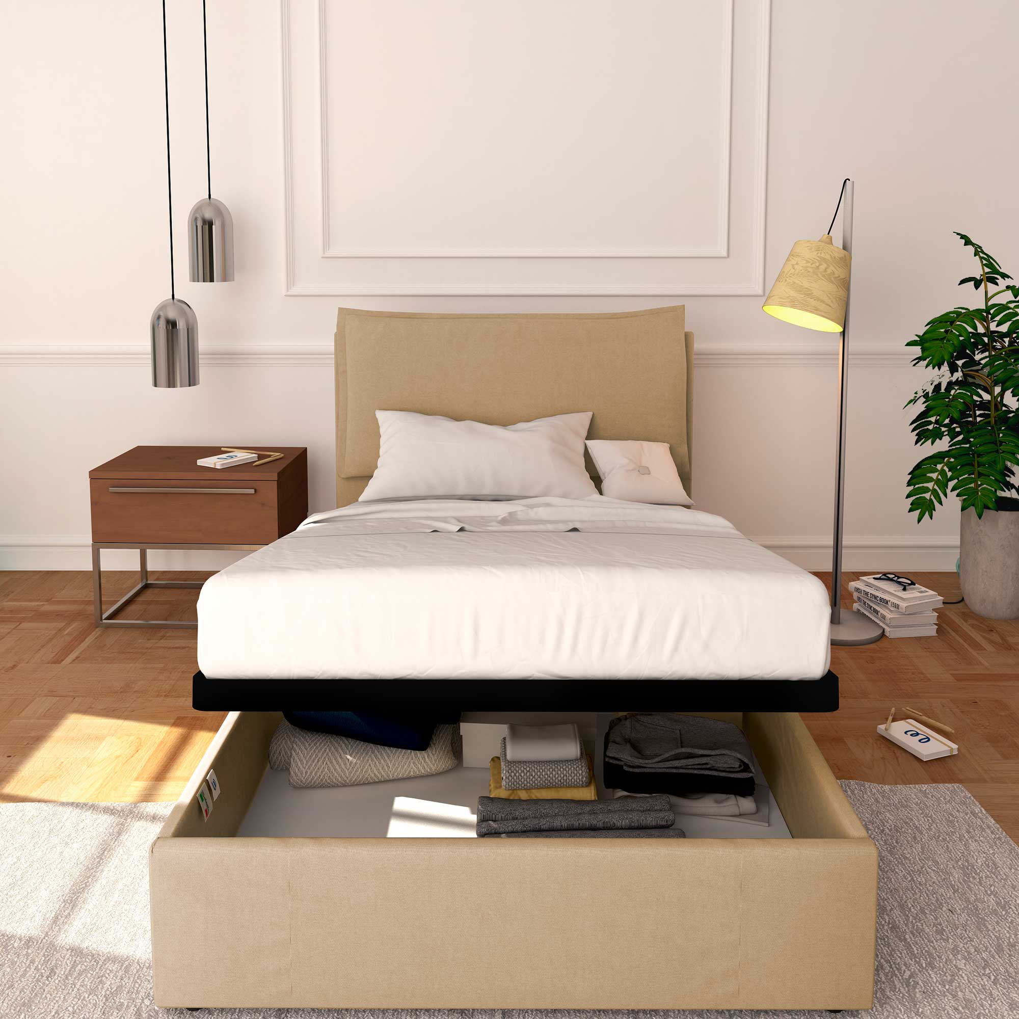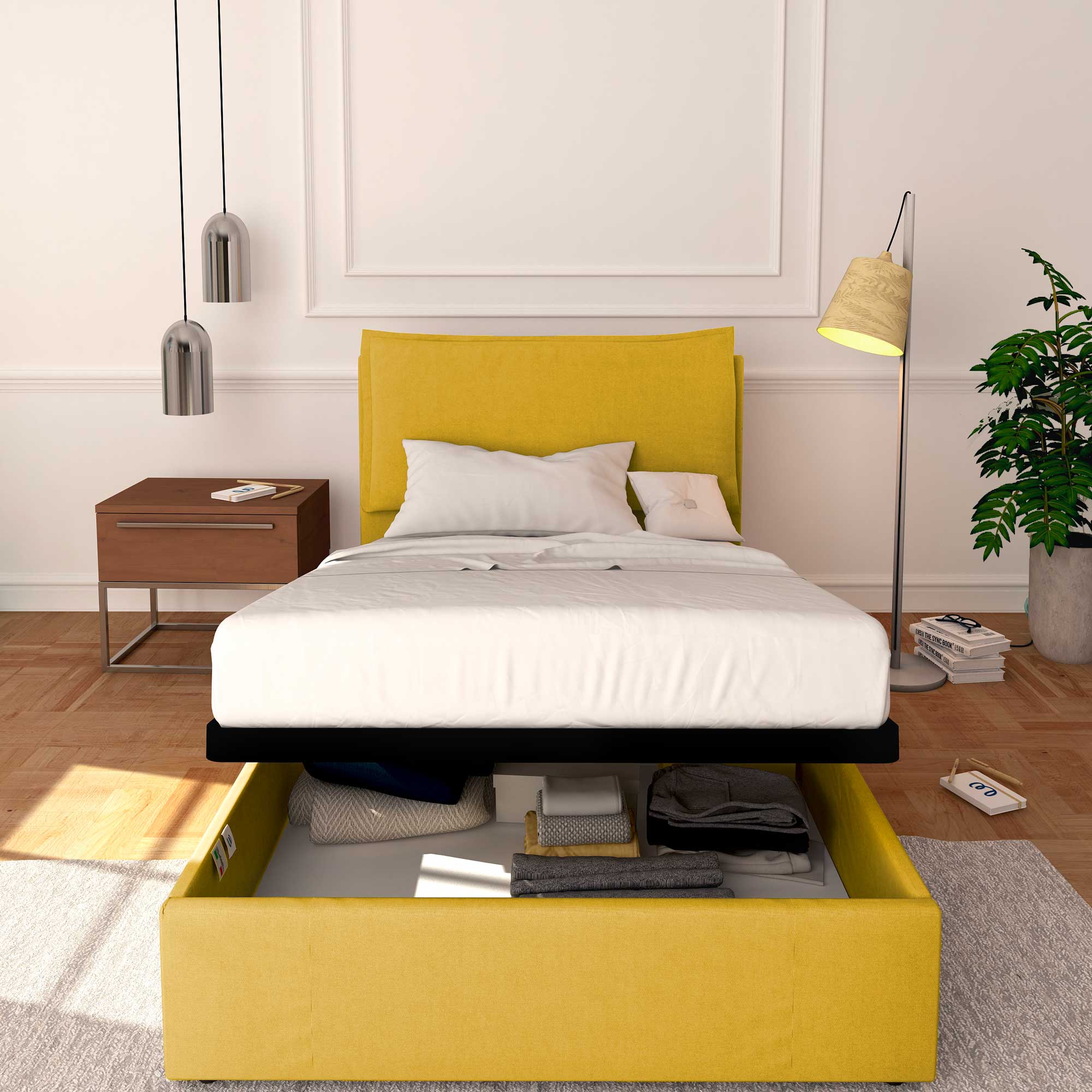 • Baldiflex letto contenitore a una piazza e mezzo in tessuto sfoderabile Licia mango