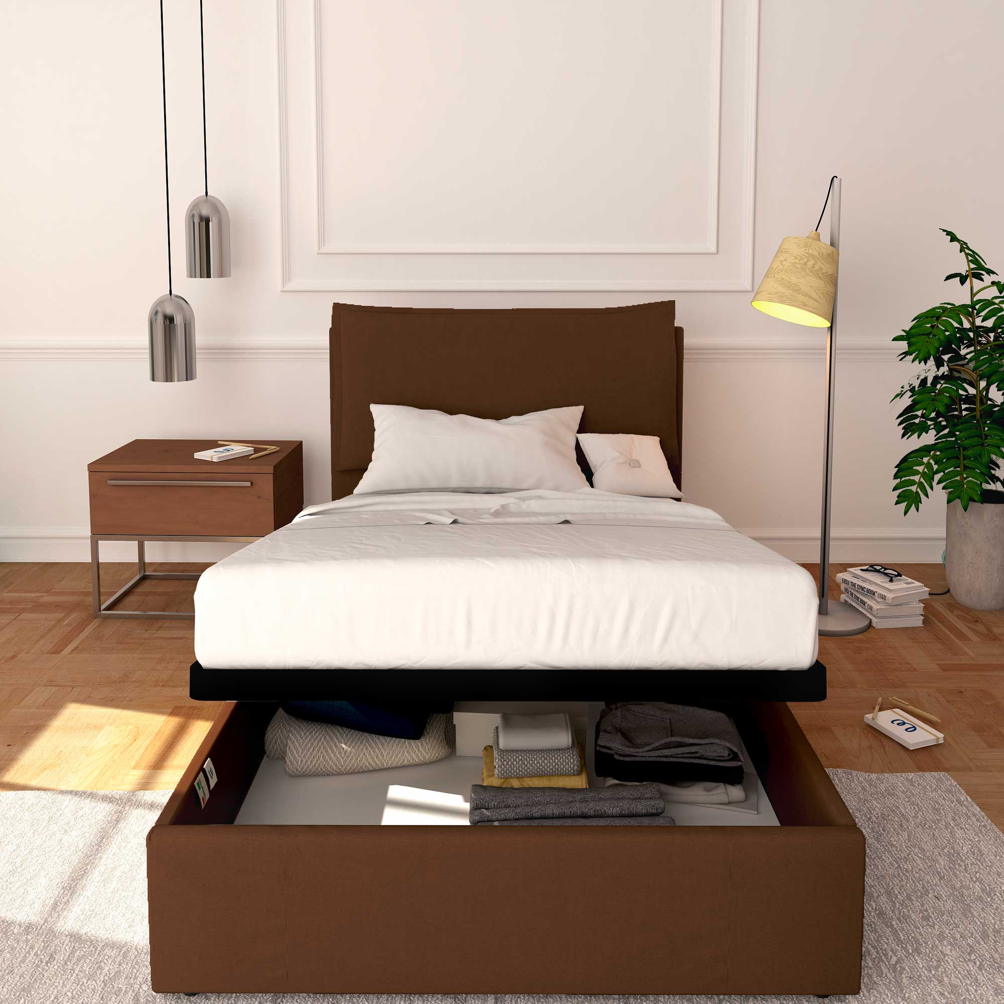 • Baldiflex letto contenitore a una piazza e mezzo in tessuto sfoderabile Licia marrone