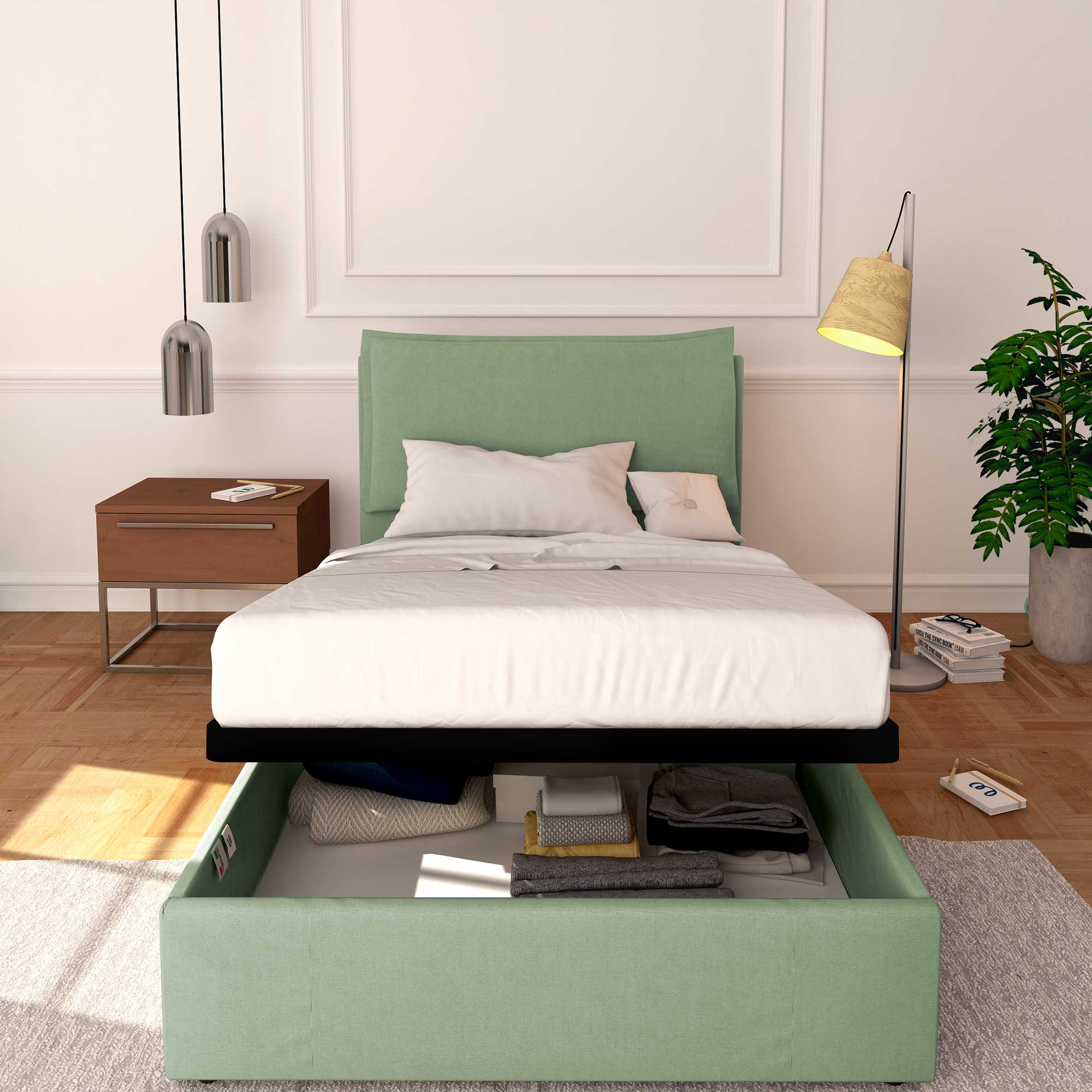 • Baldiflex letto contenitore a una piazza e mezzo in tessuto sfoderabile Licia verde menta