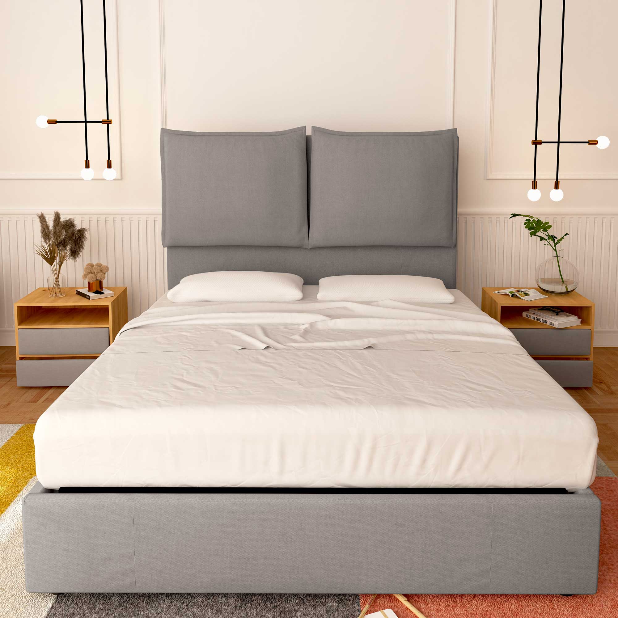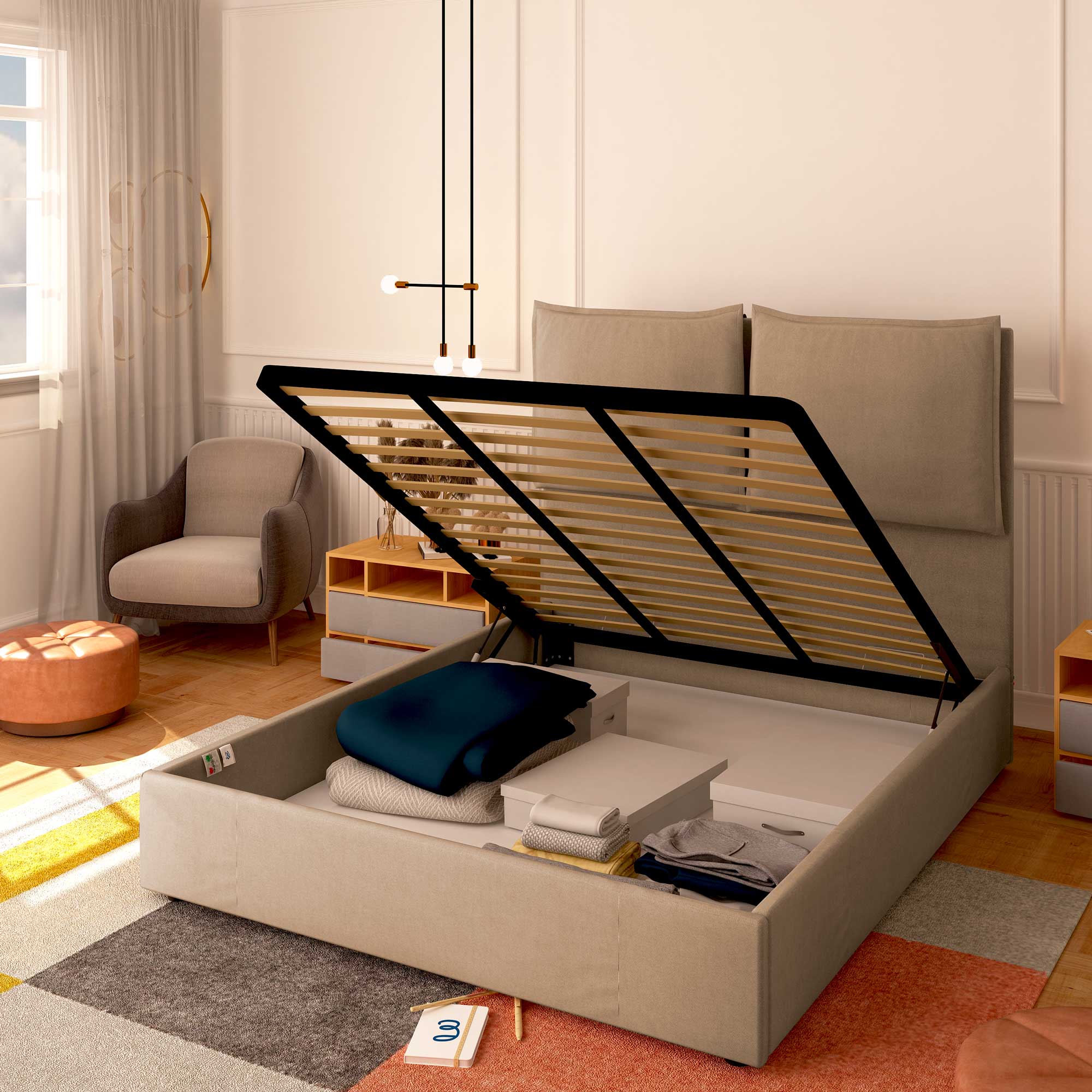 The Licia XL single storage bed with removable fabric cover allows you to use the space under the bed to store blankets, sheets, duvets, clothes, and boxes. The bed base and mattress lift easily using the handle. The storage bed arrives at home to be assembled, accompanied by simple instructions to follow.
