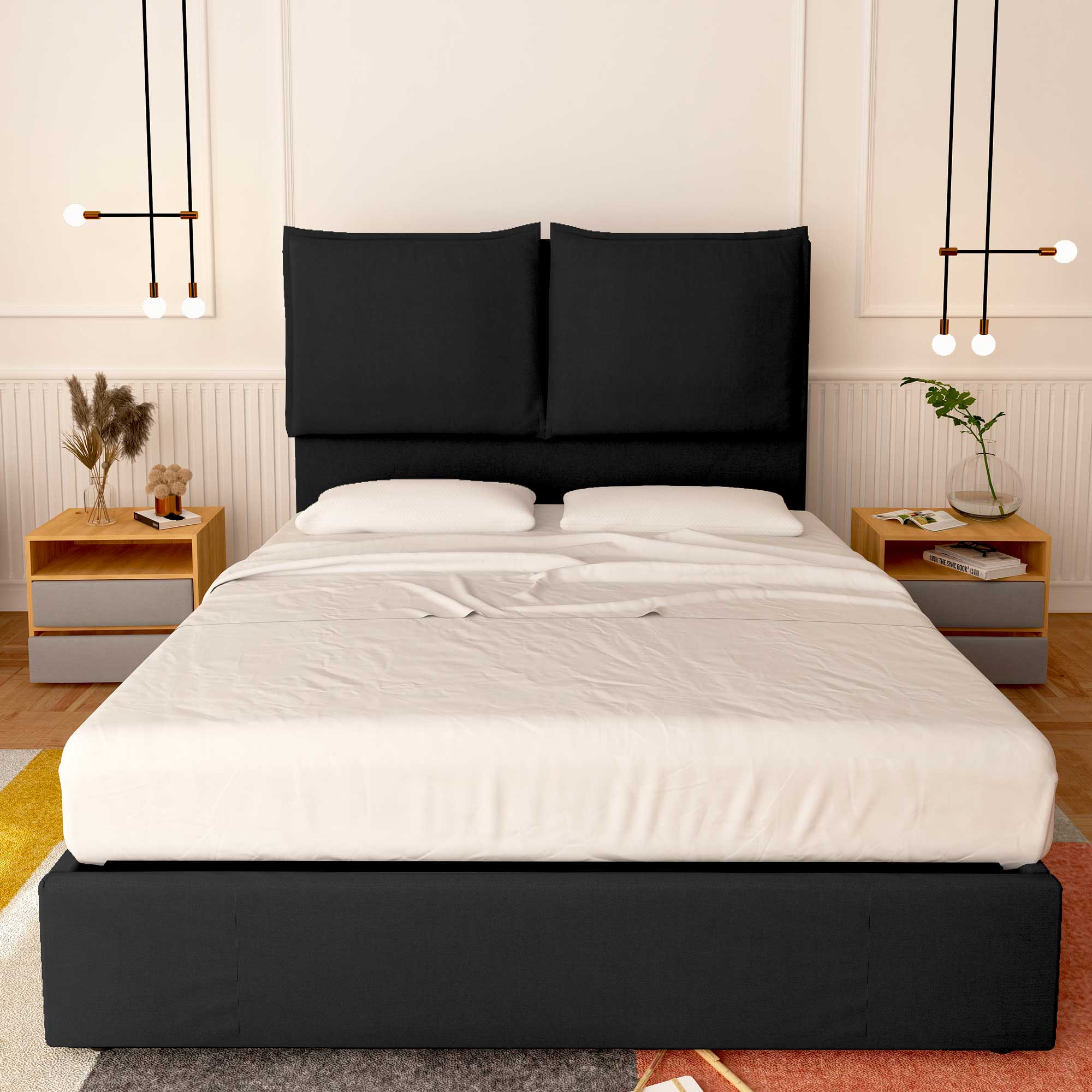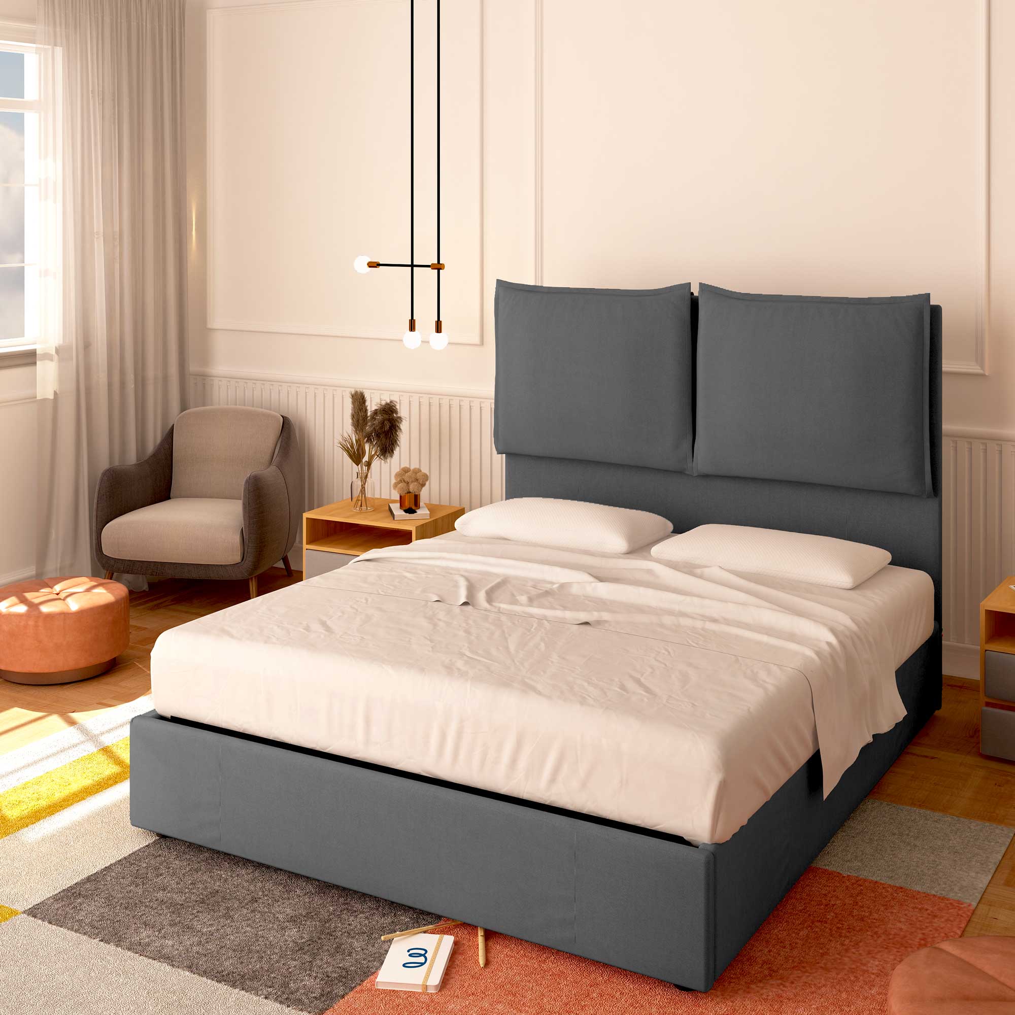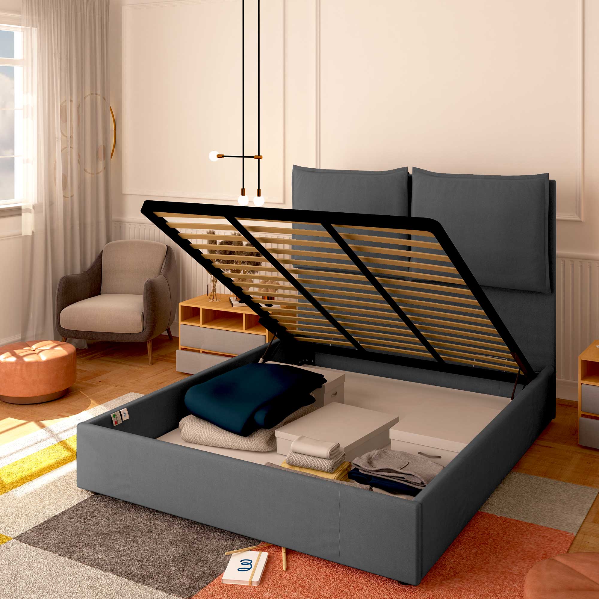 The Licia XL removable fabric one-and-a-half bed with storage allows you to use the space under the bed to store blankets, sheets, duvets, clothes, and boxes. The bed base and mattress lift easily via the handle. The storage bed arrives at home to be assembled, accompanied by simple instructions to follow.