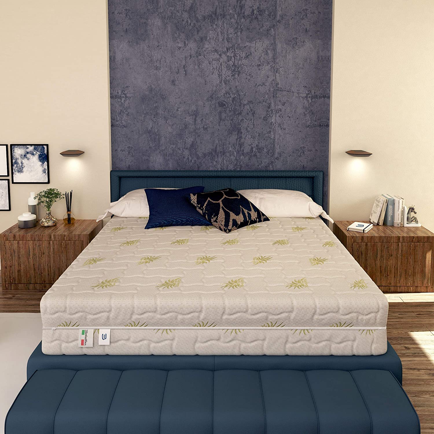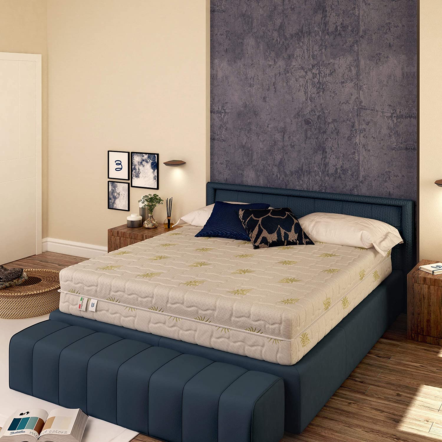 The Dream mattress provides adequate support and improves sleep quality. This particular model features a top layer with an automatic massaging effect thanks to the special convoluted memory foam processing. The underlying polyurethane layer is made by mixing two components, with water as the expanding agent, making it breathable. The mattress cover is removable with a convenient zipper. The treatment is regenerating and anti-inflammatory Aloe Vera.
