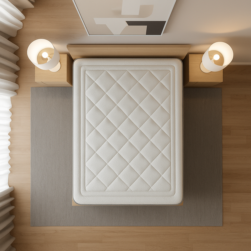 Structure with 4000 ergonomic pocketed microcoils with 7 differentiated zones for perfect rest. Boxing with supporting, breathable, and elastic materials. Above the springs, a breathable memory foam topper is placed to provide the body with ergonomics and ensure high blood circulation. Cover with excellent fabrics, 600 grams per square meter, and elegant and soft placed quilting. Removable cover washable at 40°.