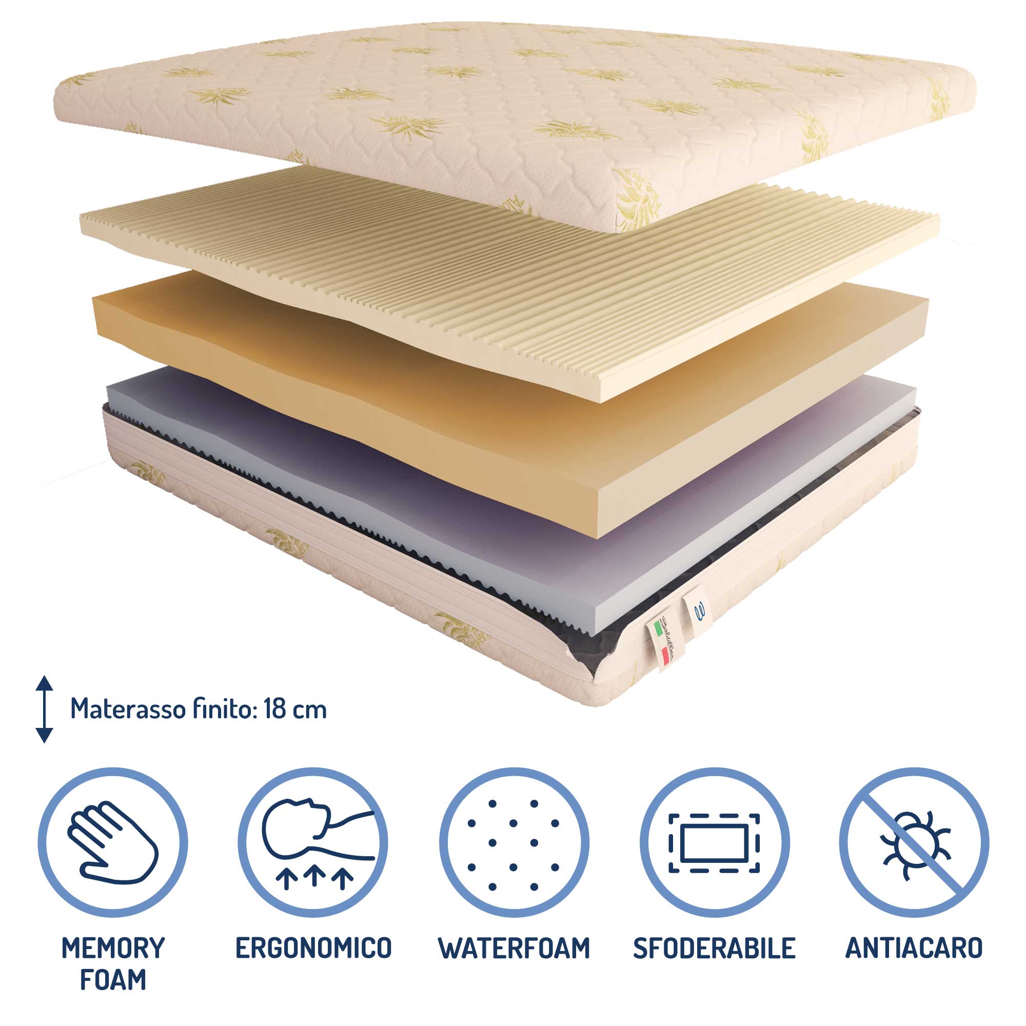 • Materasso in memory e poliuretano Baldiflex Arcobaleno Low composizione