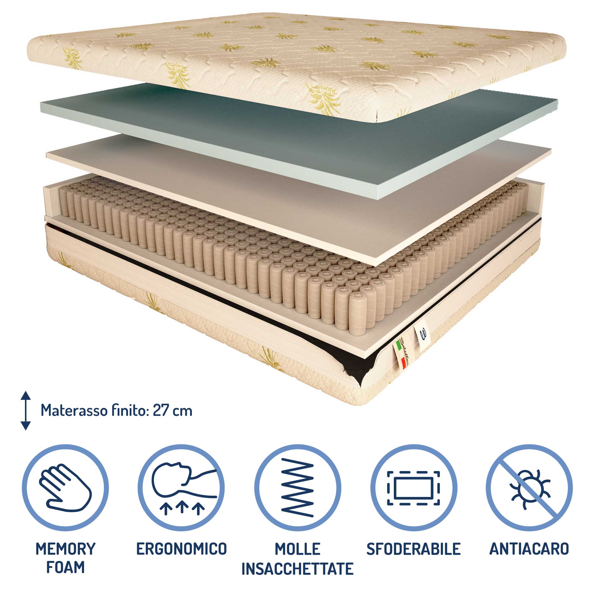 • Materasso a 700 molle insacchettate in memory Baldiflex alto 27 cm composizione
