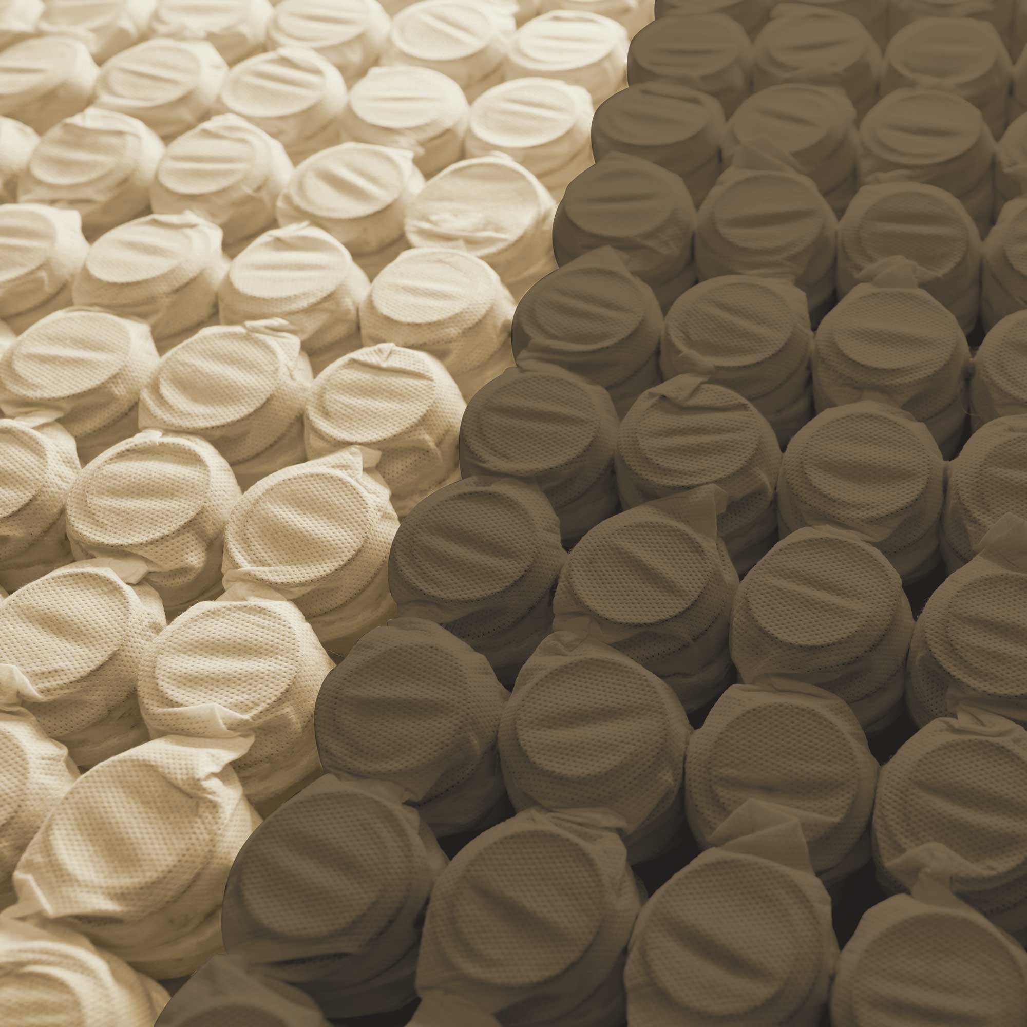 The mattress is made up of 800 pocket springs each with a diameter of 5.5 cm (which obviously vary in quantity depending on the mattress size) and a polyurethane box or casing that contains them. The reason they are called pocket springs is that each spring is actually inserted inside a TNT bag, giving them a characteristic different from the old springs we used to know, and moreover, which is absolutely not trivial, they are protected from dust and moisture, giving this type of mattress, now far from traditional, a much more innovative value both in structure and in freshness and breathability.The mattress consists of 800 springs each 5.5 cm in diameter and a 3 cm memory foam layer. It is 25 cm high and has medium firmness. It offers the support of traditional springs and the comfort of 3 cm memory foam and although this may seem little, the latter has a fundamental role which is to slightly take the shape of the body when assuming various sleeping positions during rest. We especially recommend it to those who want a supportive mattress but at the same time performant for those who sleep on their stomach.