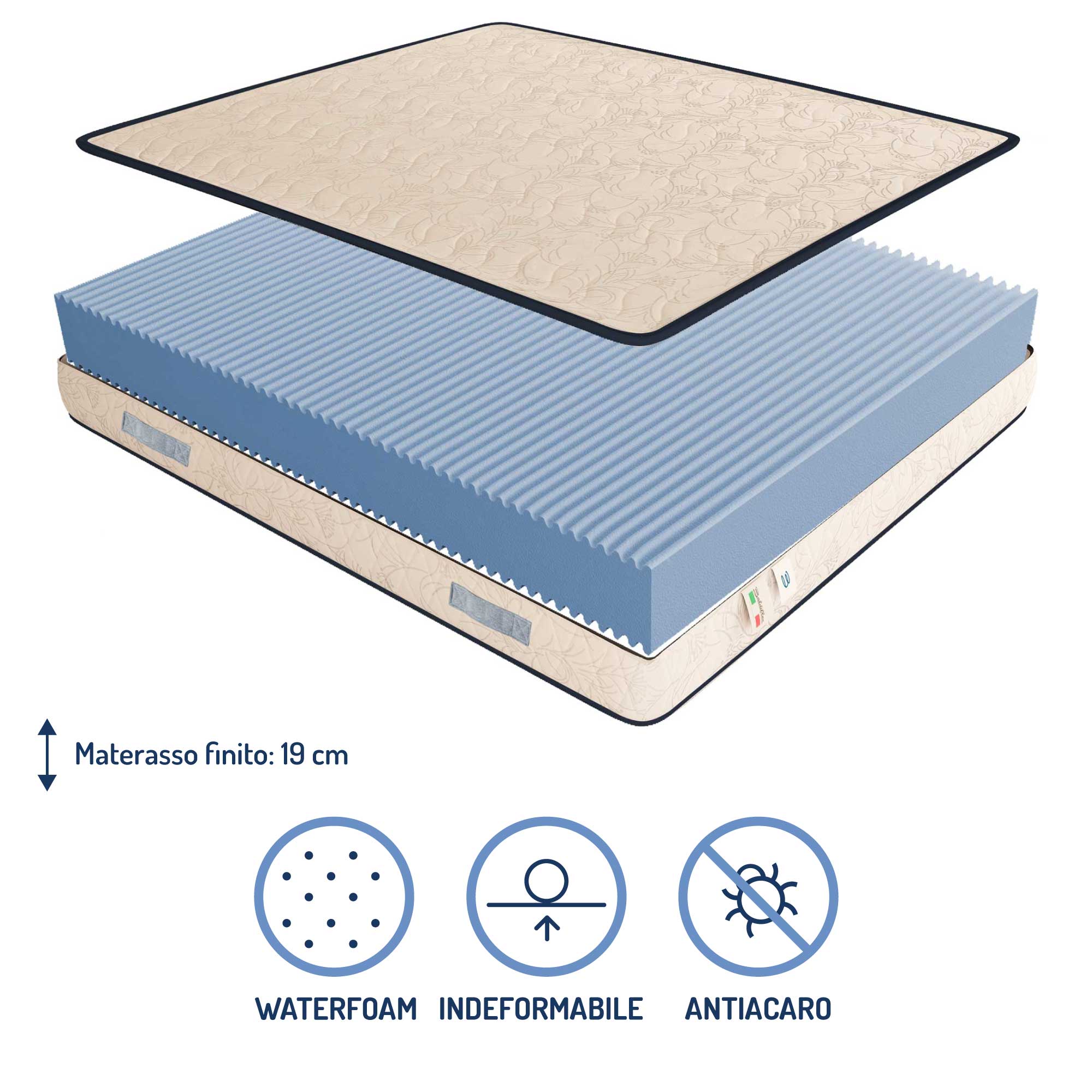 - Finished mattress height: 19 cm