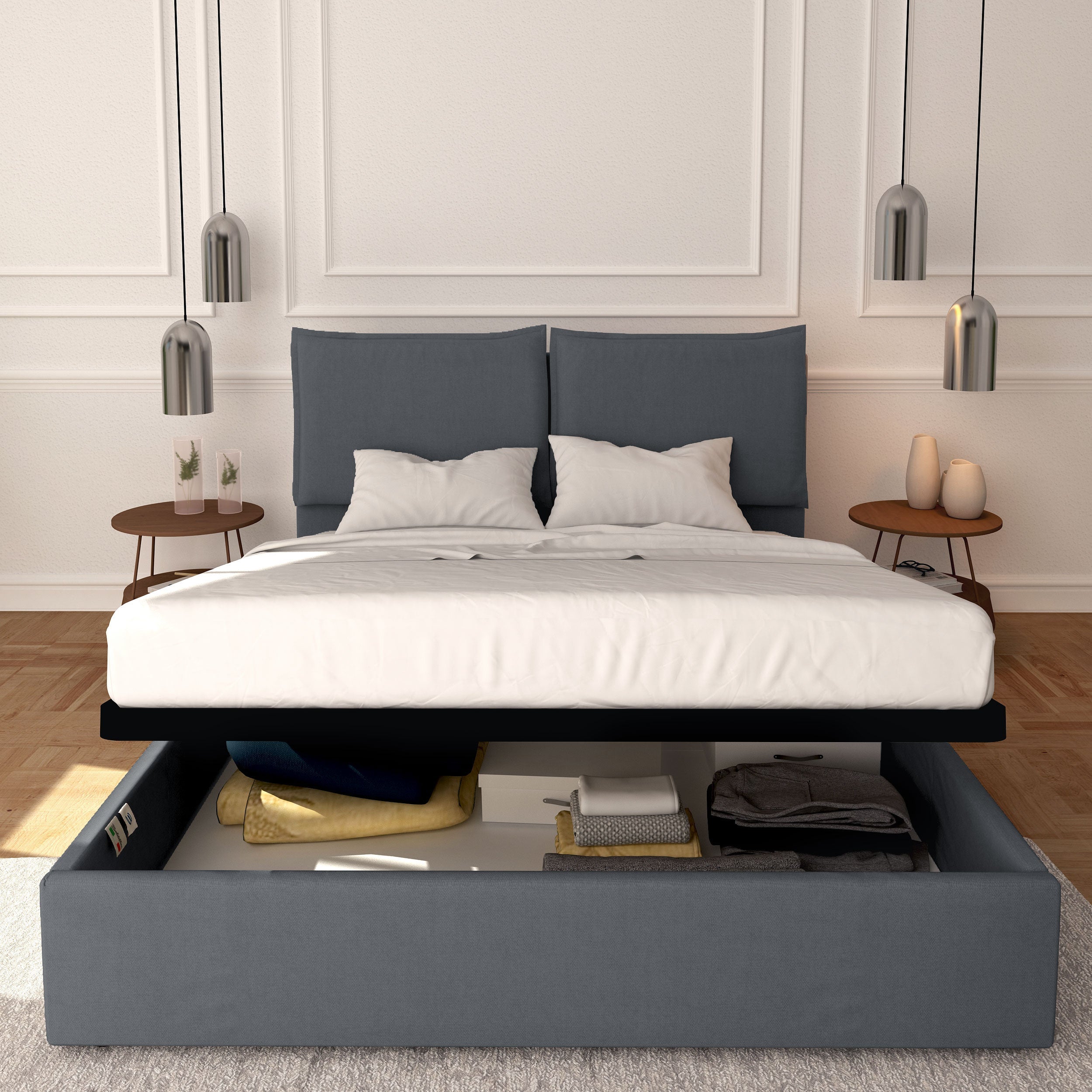 Features of the Licia removable fabric double storage bed