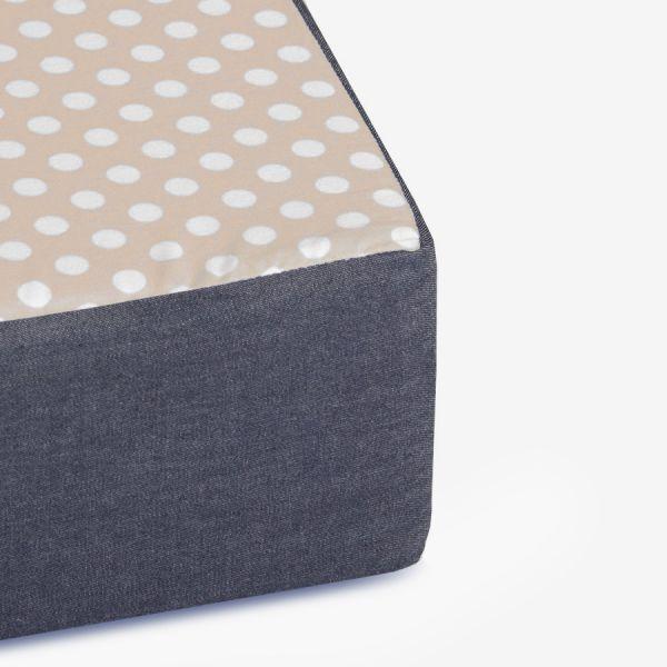 - Rectangular dog and cat sofa, beige and gray with white polka dots