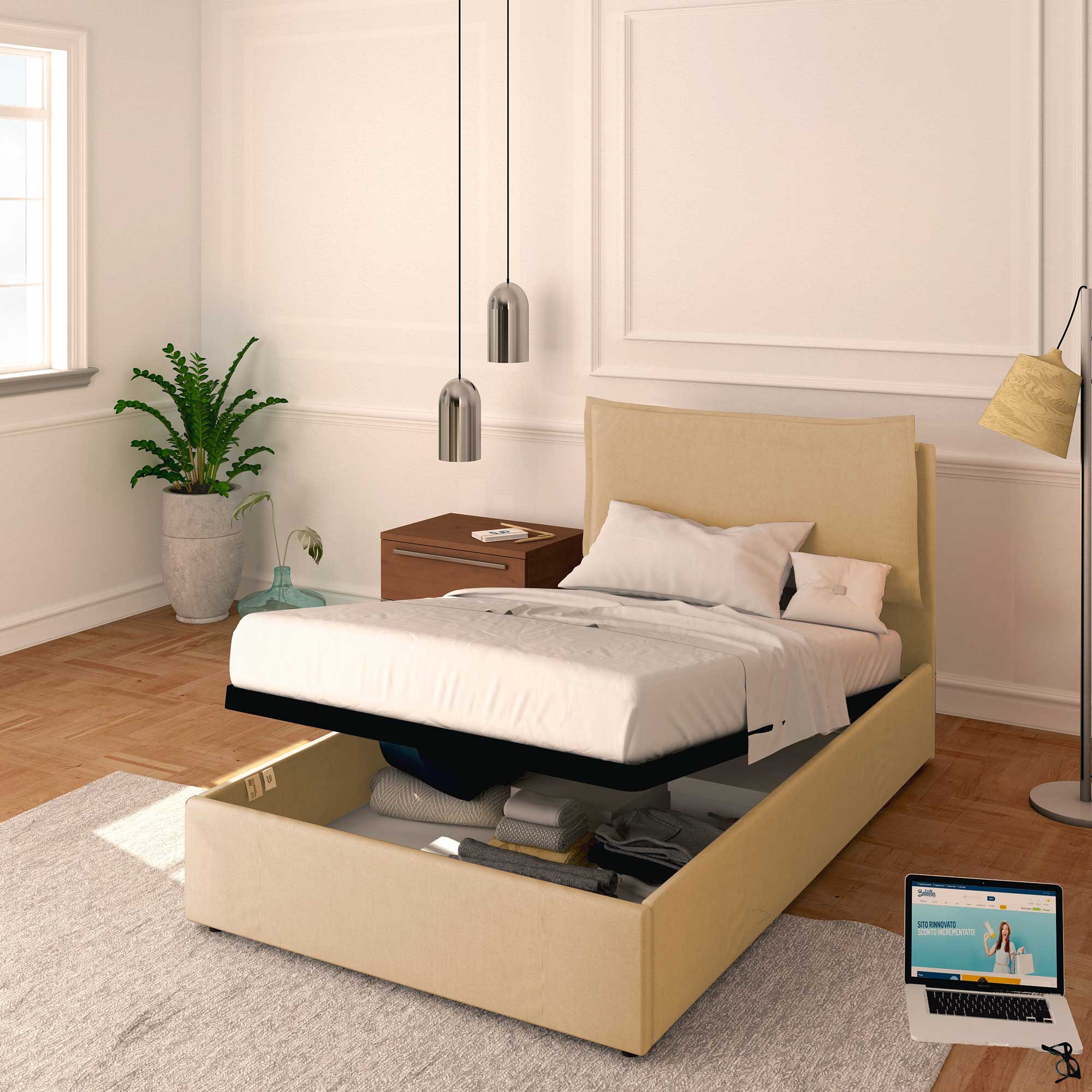 Lit coffre une place et demie en simili cuir ignifuge déhoussable Monet