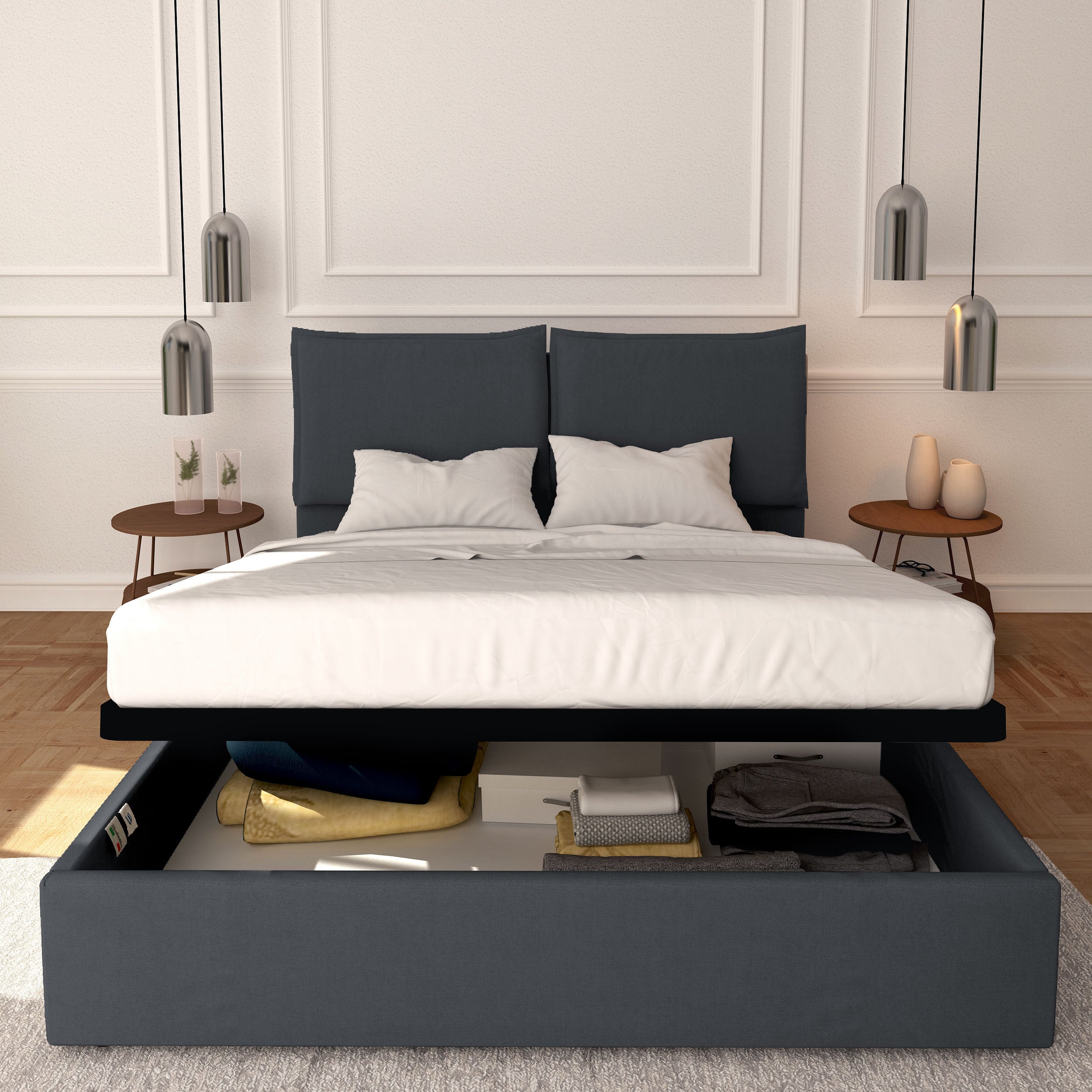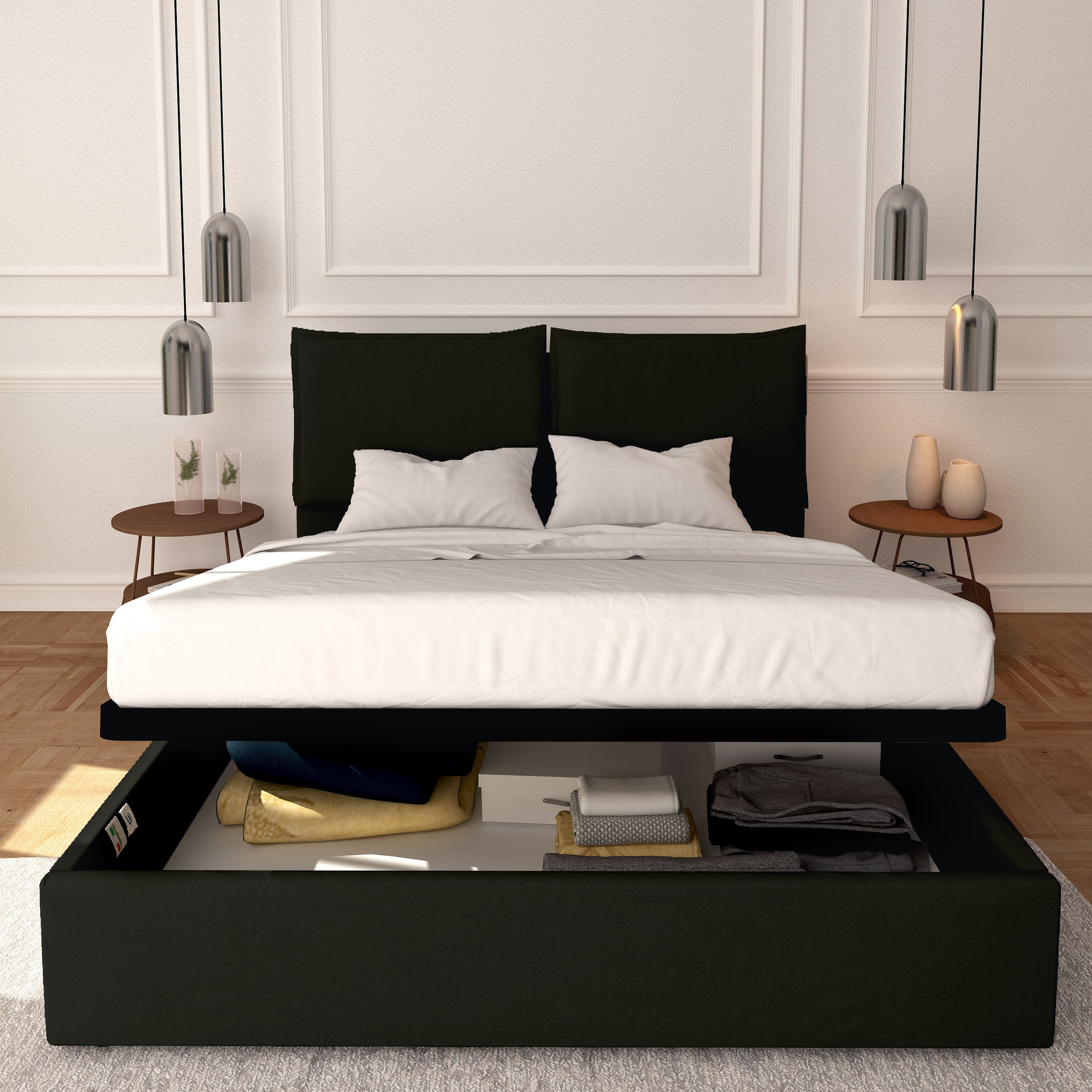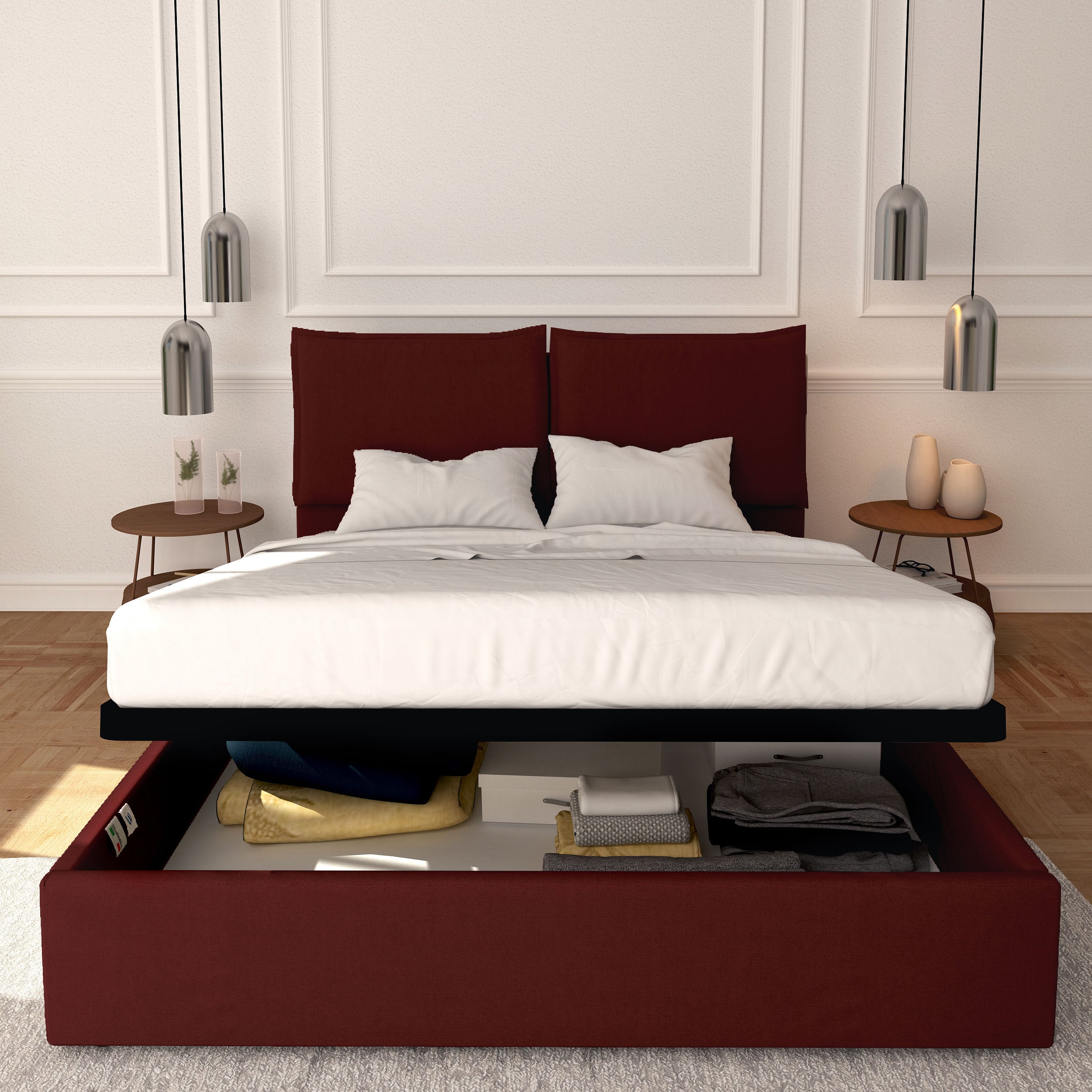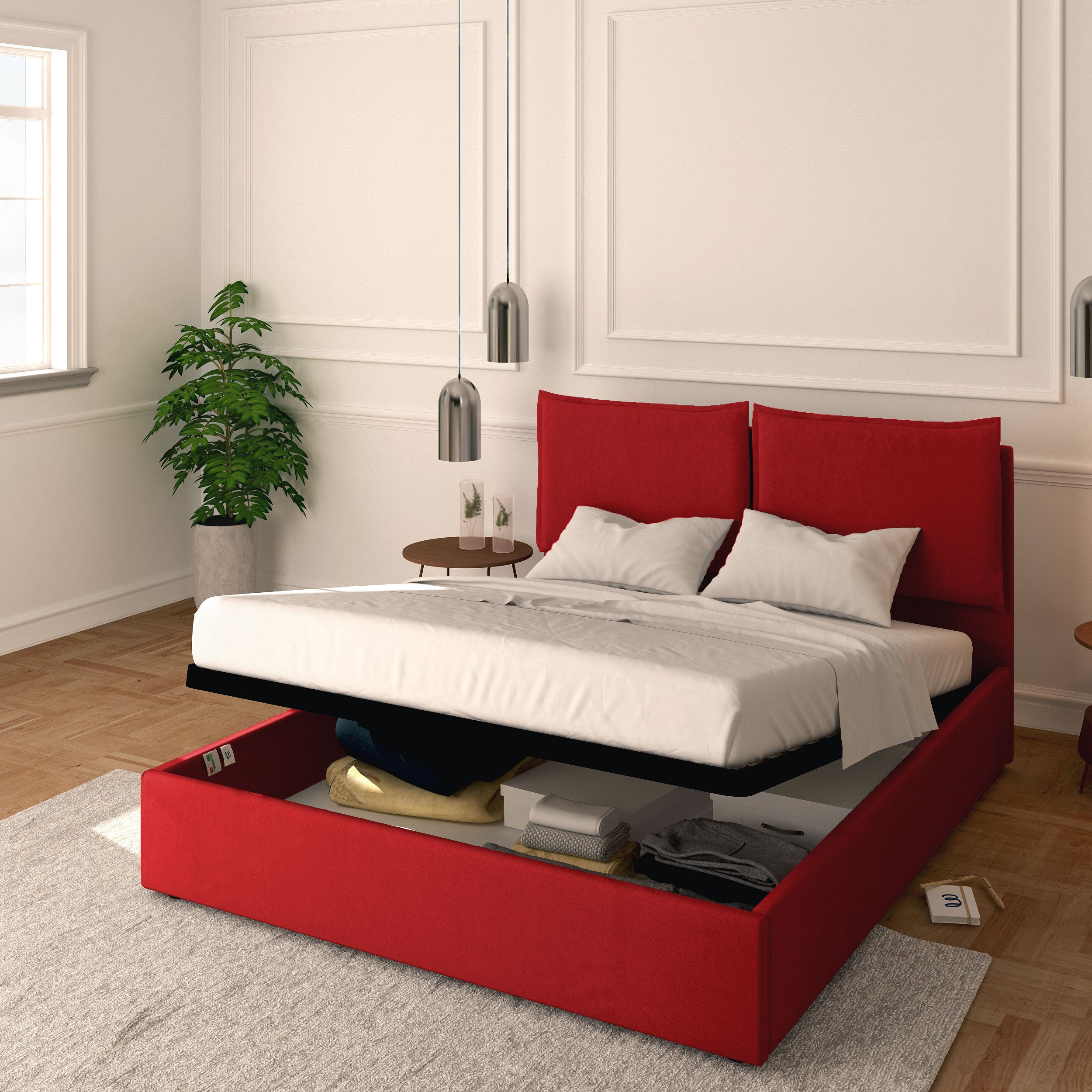 (n.b. Les puissances des systèmes de levage de nos lits coffres sont standardisées en fonction du poids de nos matelas.
