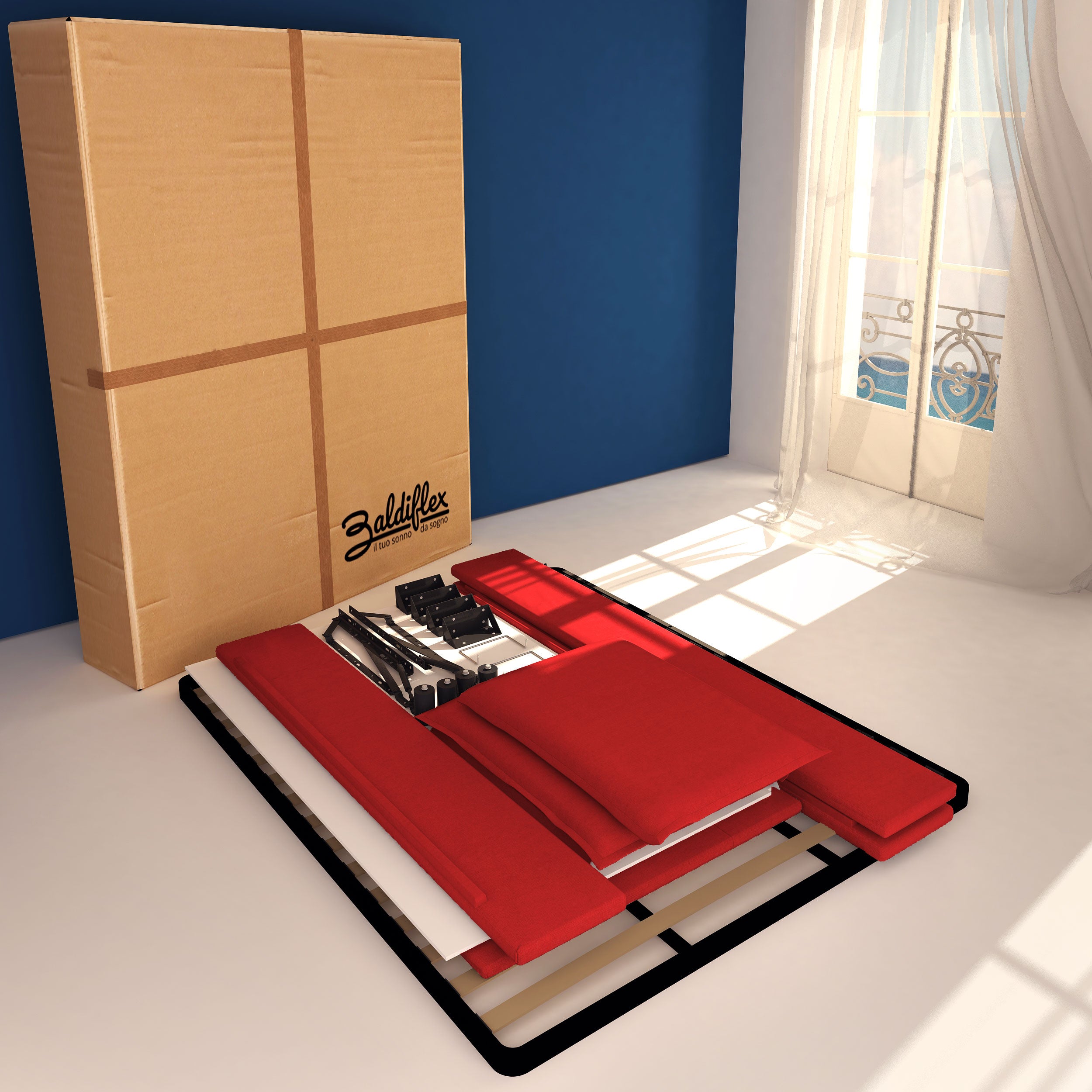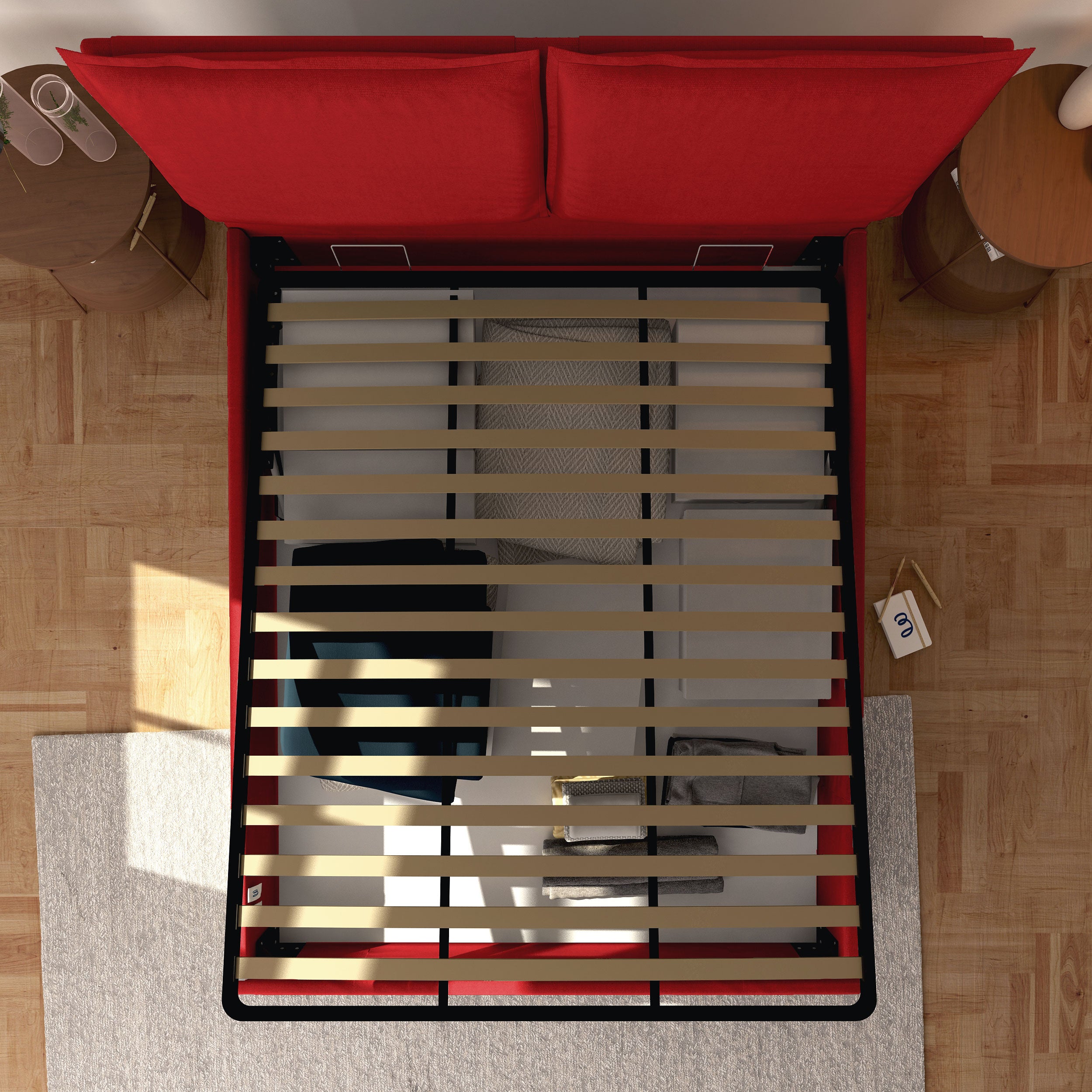 - Le cadre du sommier est équipé d'une ou deux barres centrales de renfort, selon la disponibilité