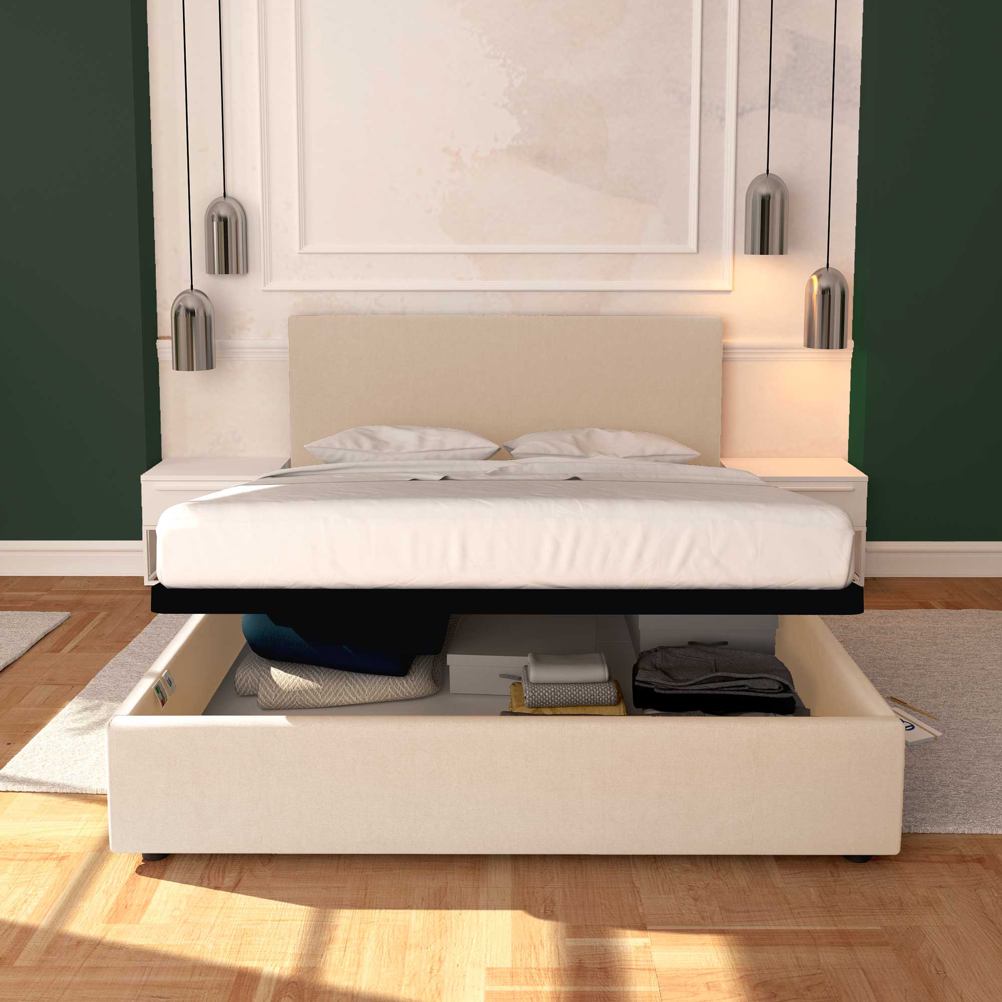 • Baldiflex letto contenitore matrimoniale in ecopelle sfoderabile Rossano crema