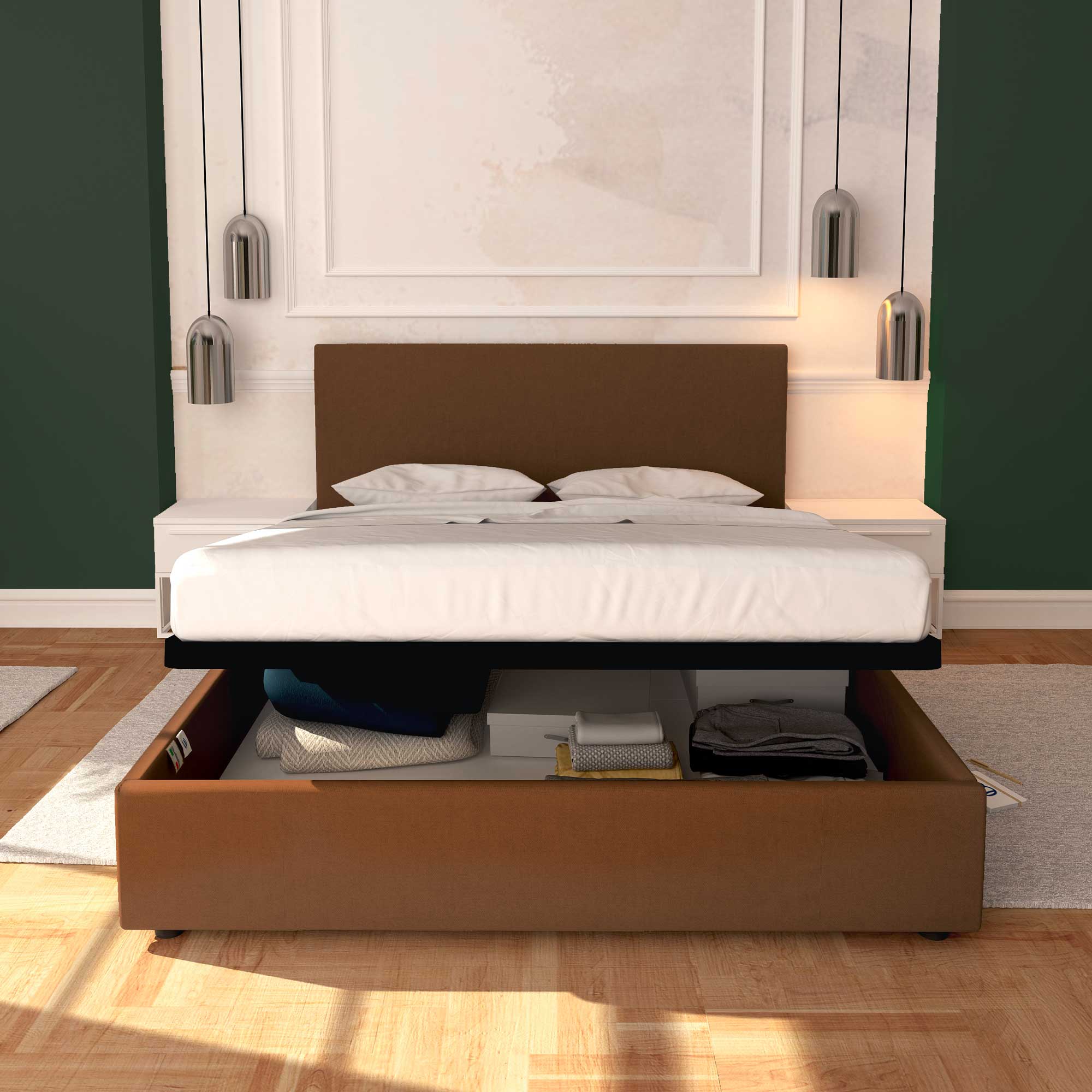 • Baldiflex letto contenitore matrimoniale in ecopelle sfoderabile Rossano caffe