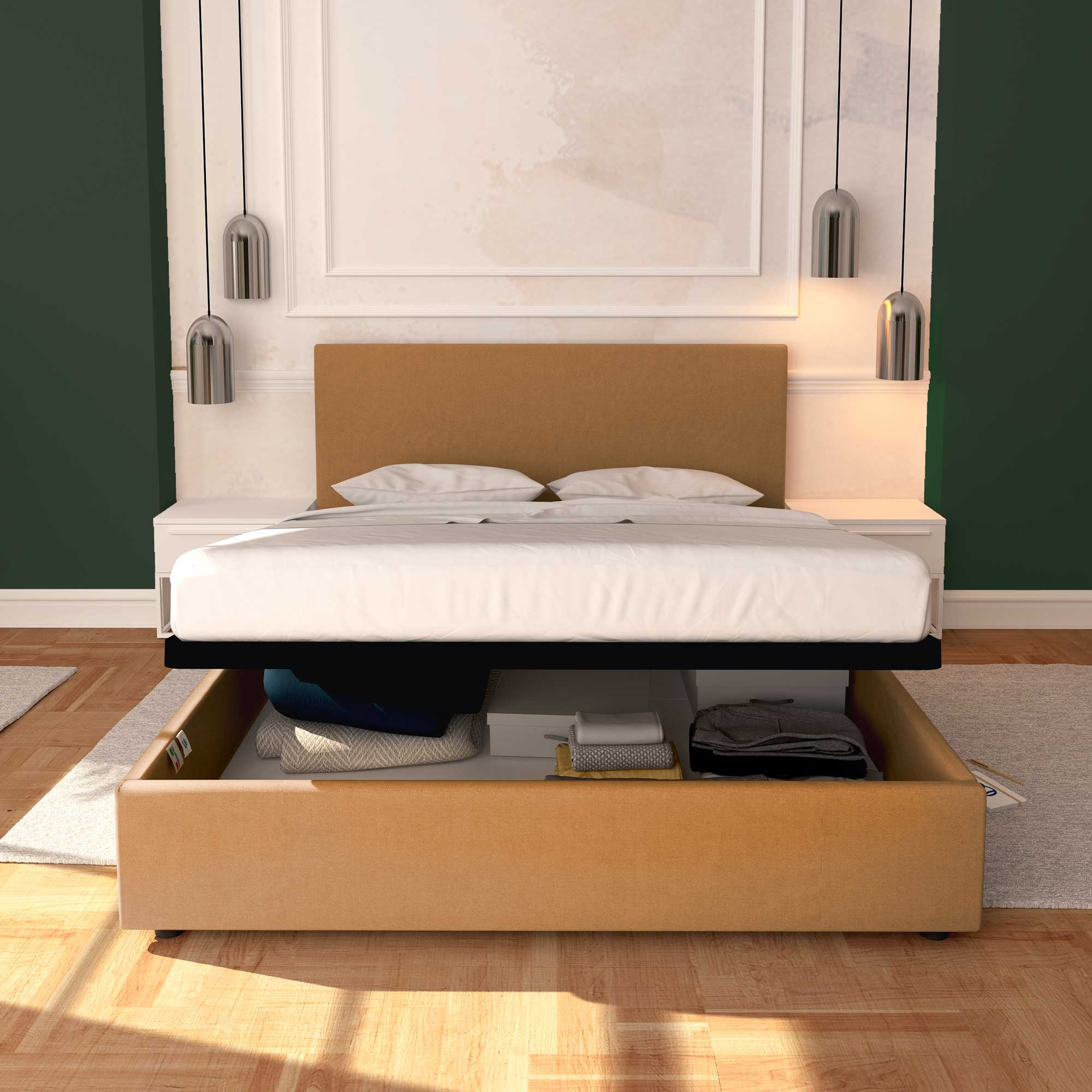 • Baldiflex letto contenitore matrimoniale in ecopelle sfoderabile Rossano nocciola