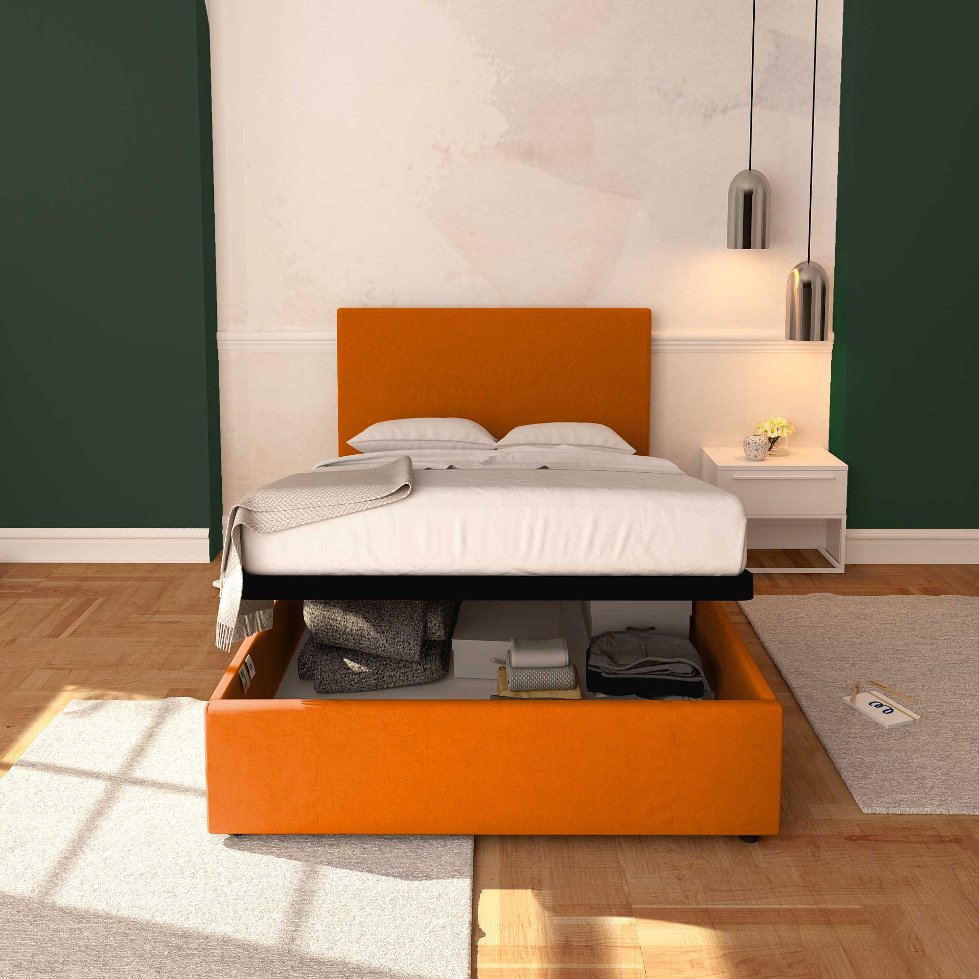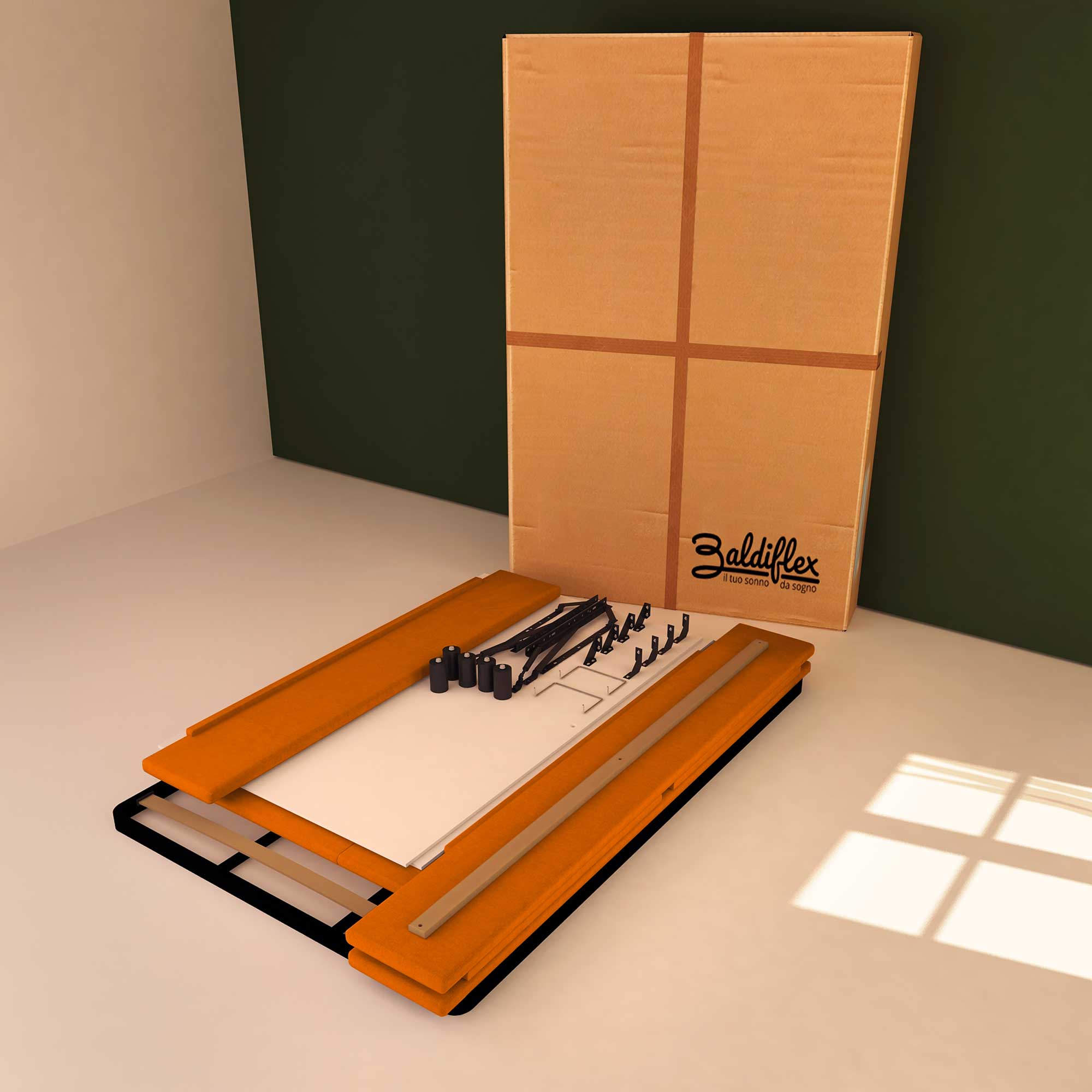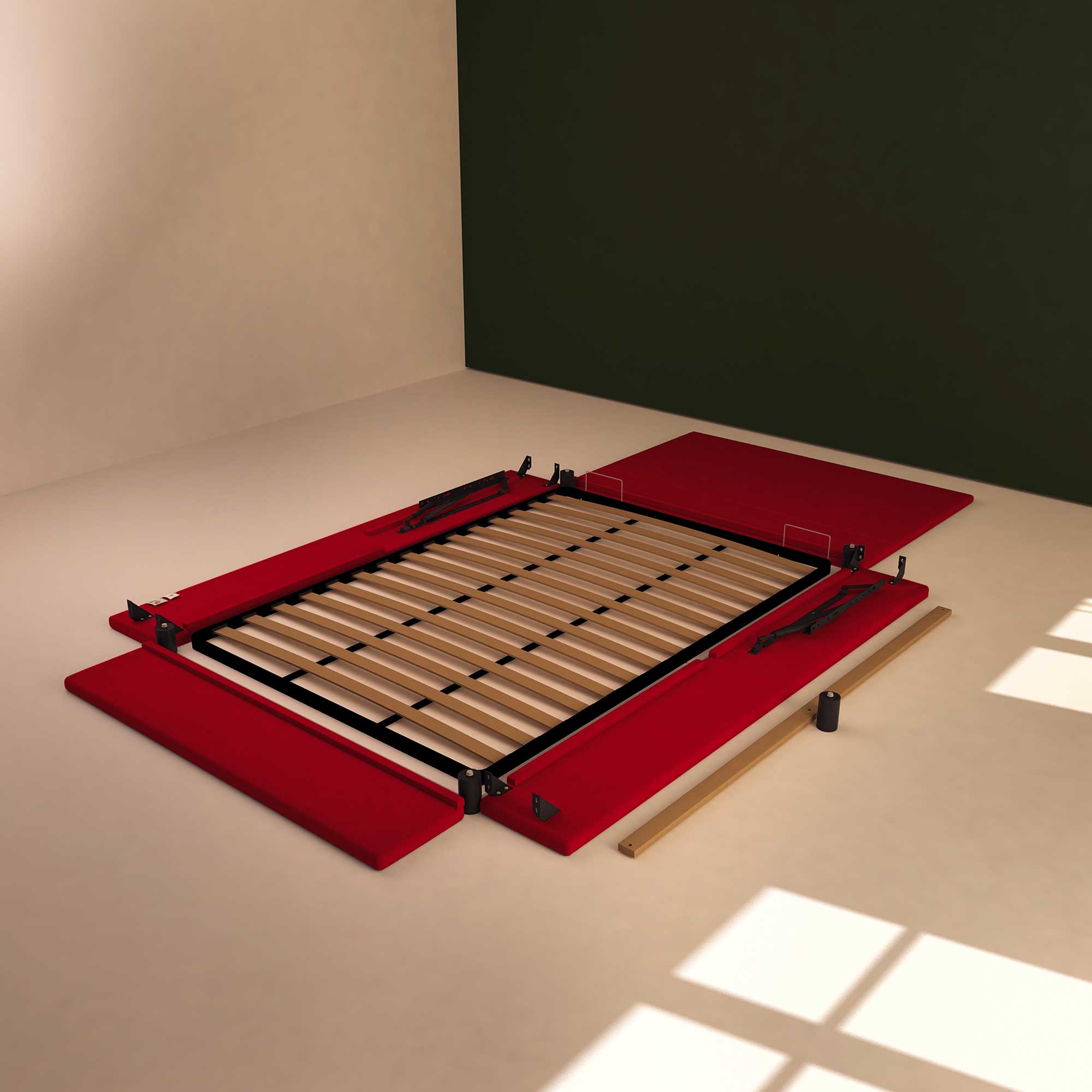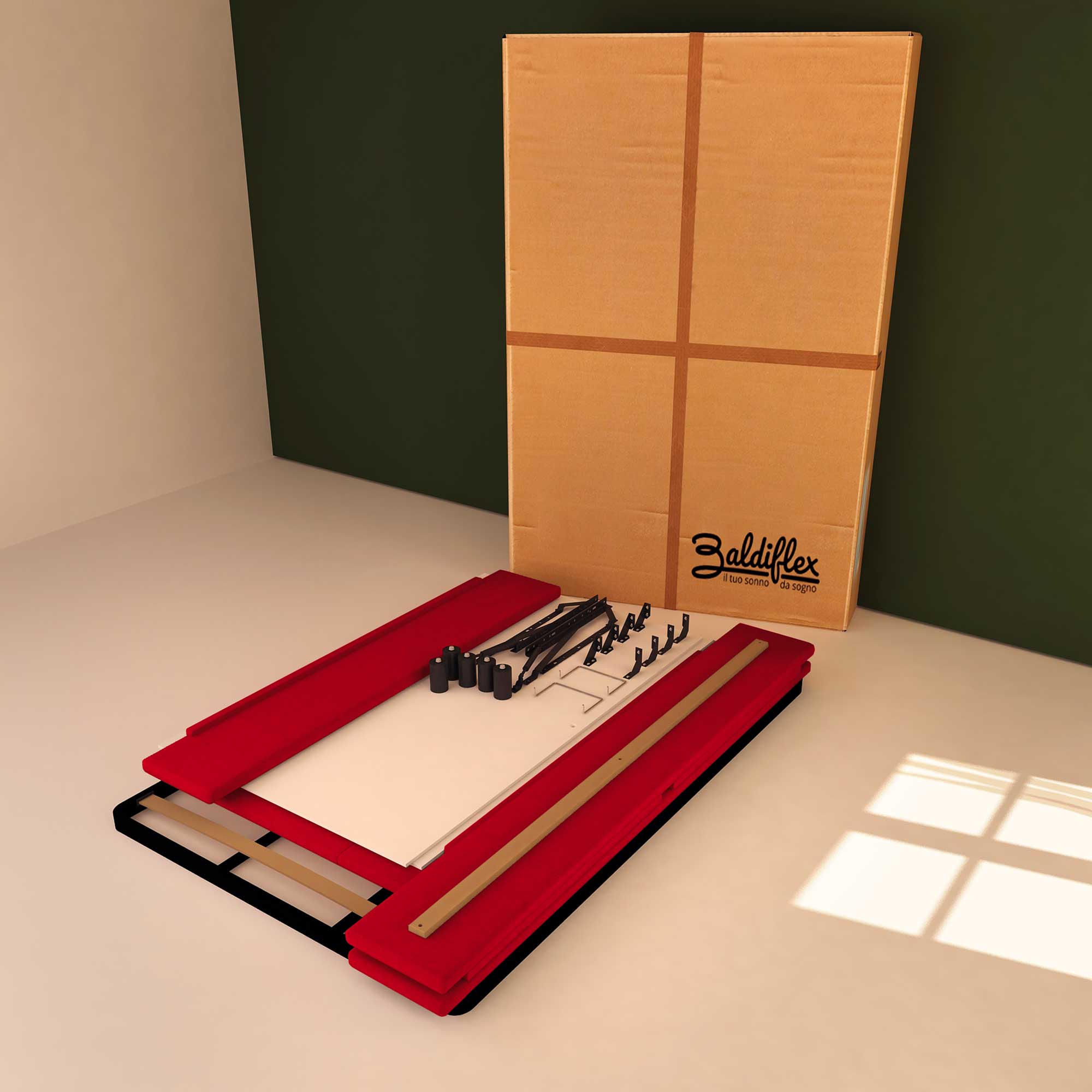 • Baldiflex letto contenitore piazza e mezza in ecopelle sfoderabile Rossano rosso smontato