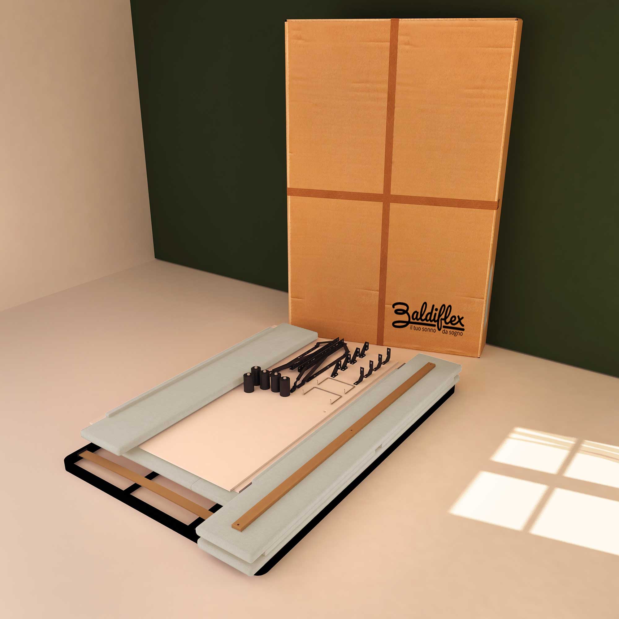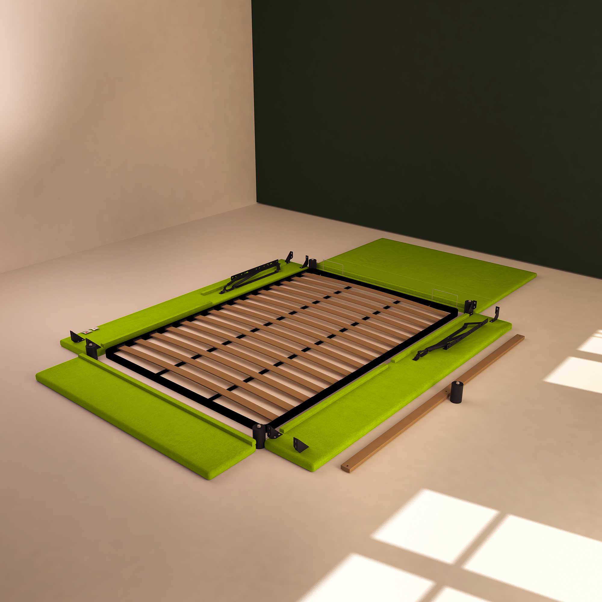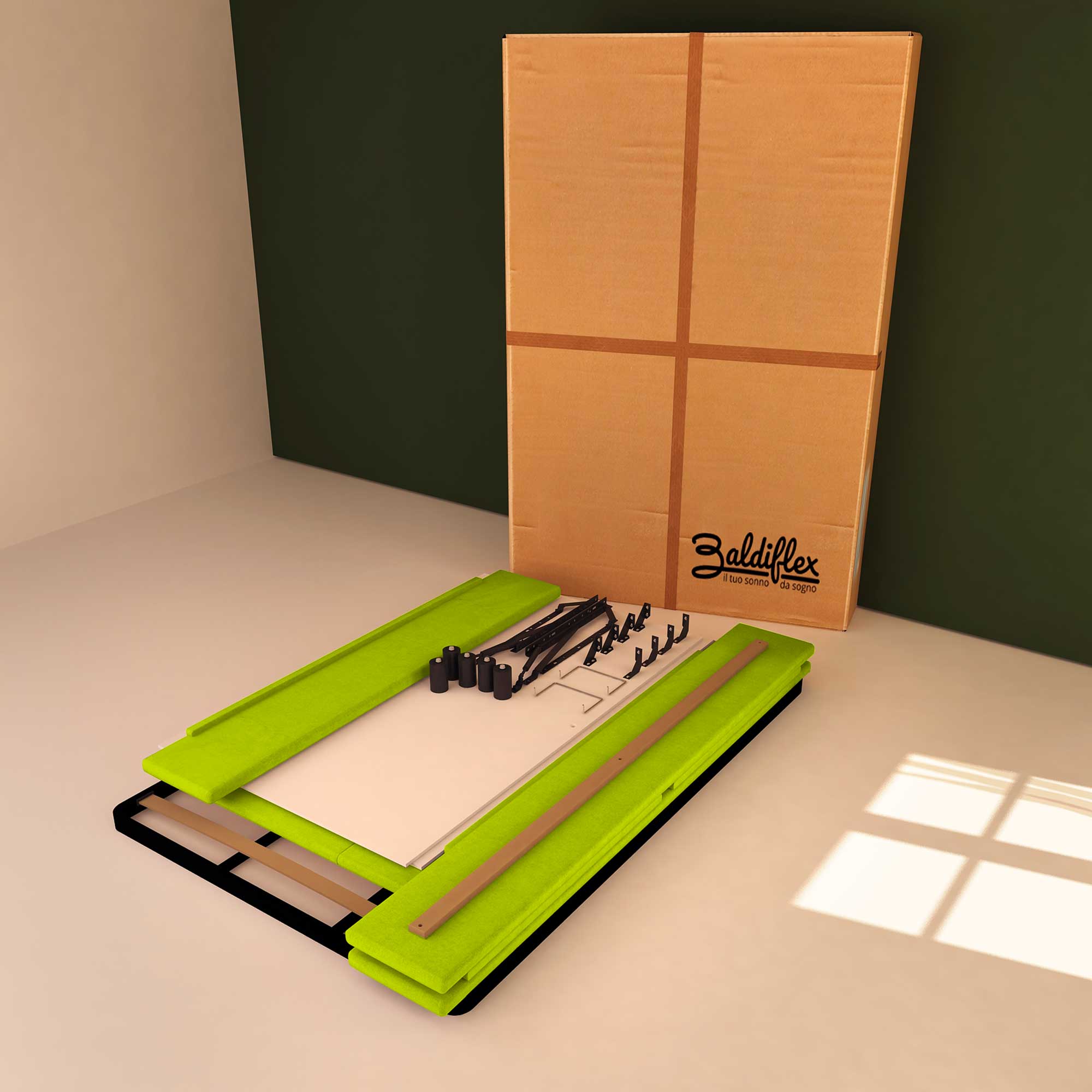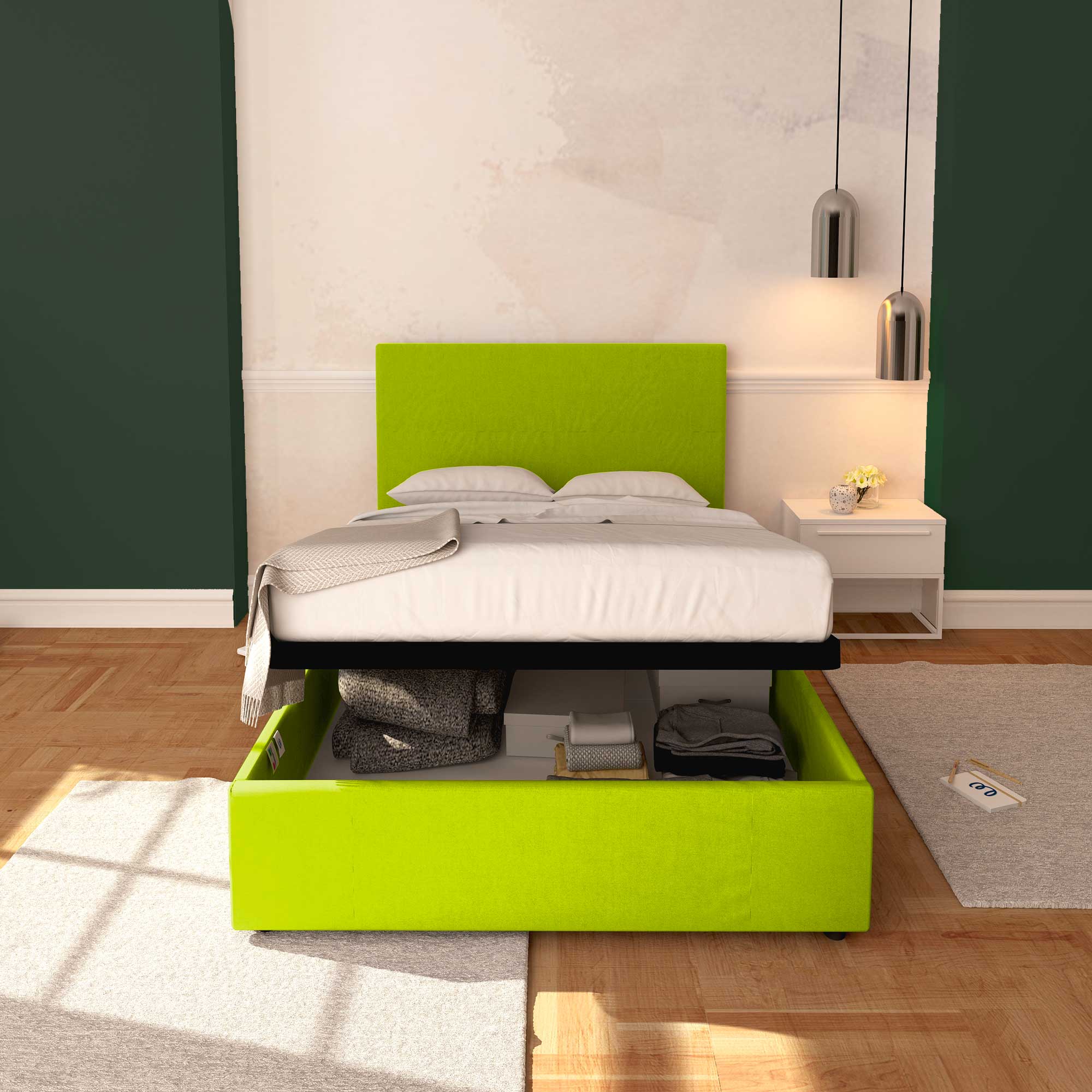 • Baldiflex letto contenitore piazza e mezza in ecopelle sfoderabile Rossano verde mela smontato