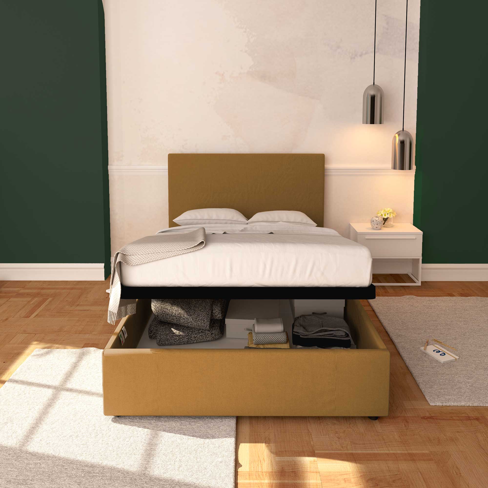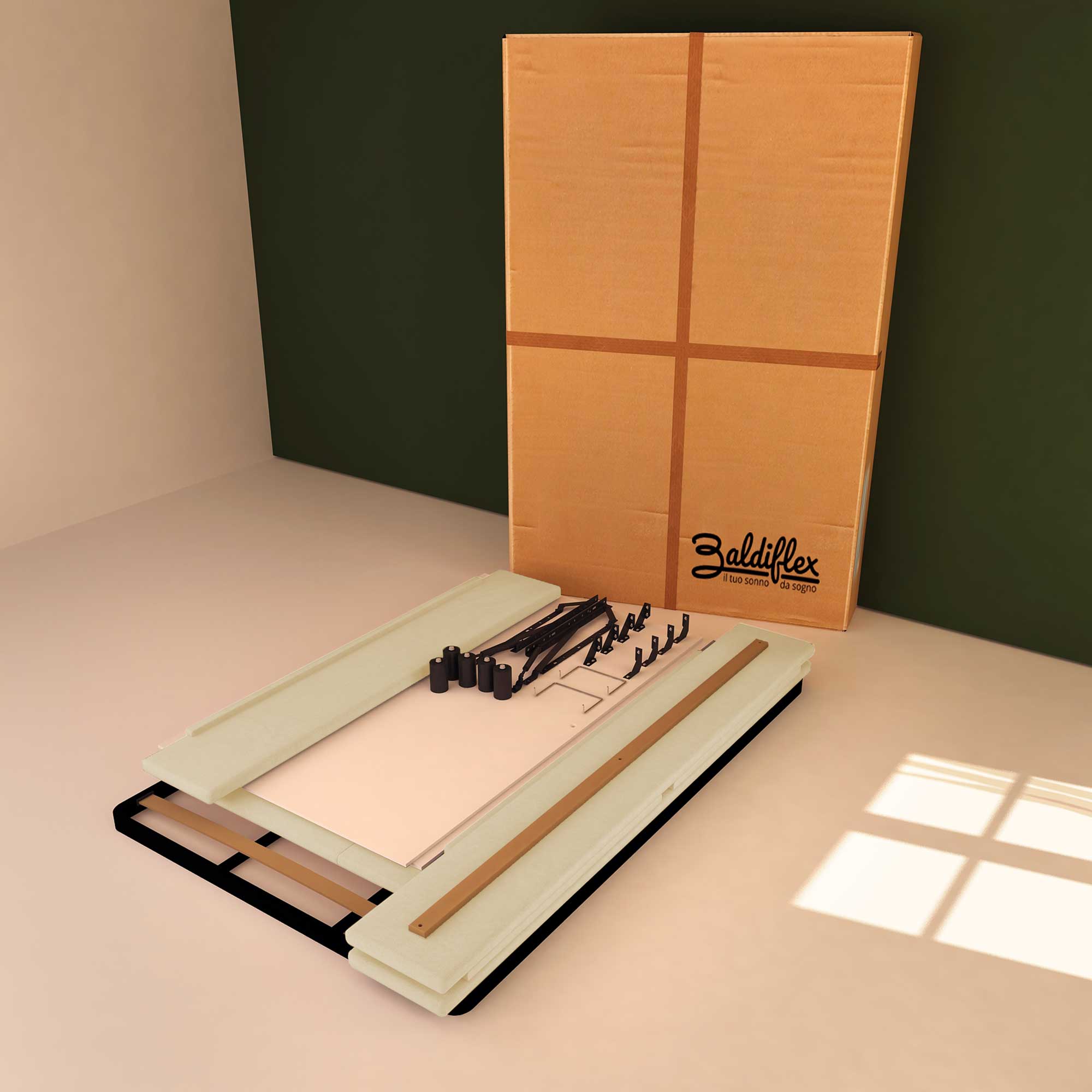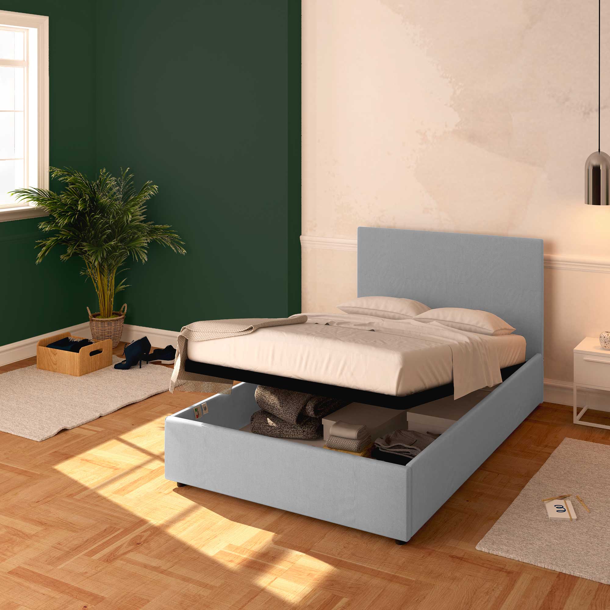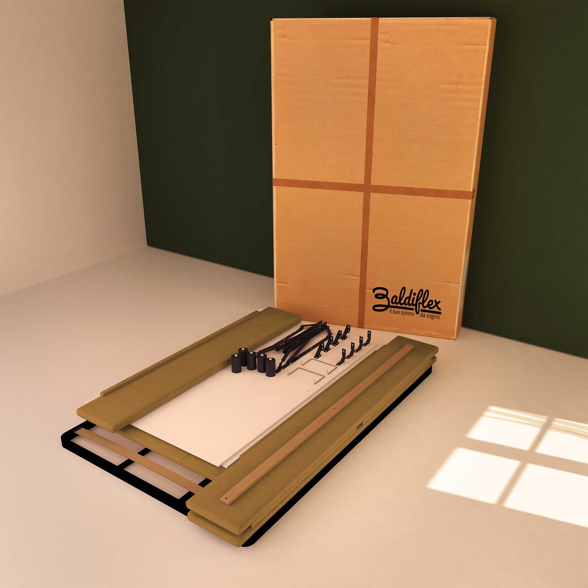 • Baldiflex letto contenitore piazza e mezza in ecopelle sfoderabile Rossano verde mela smontato