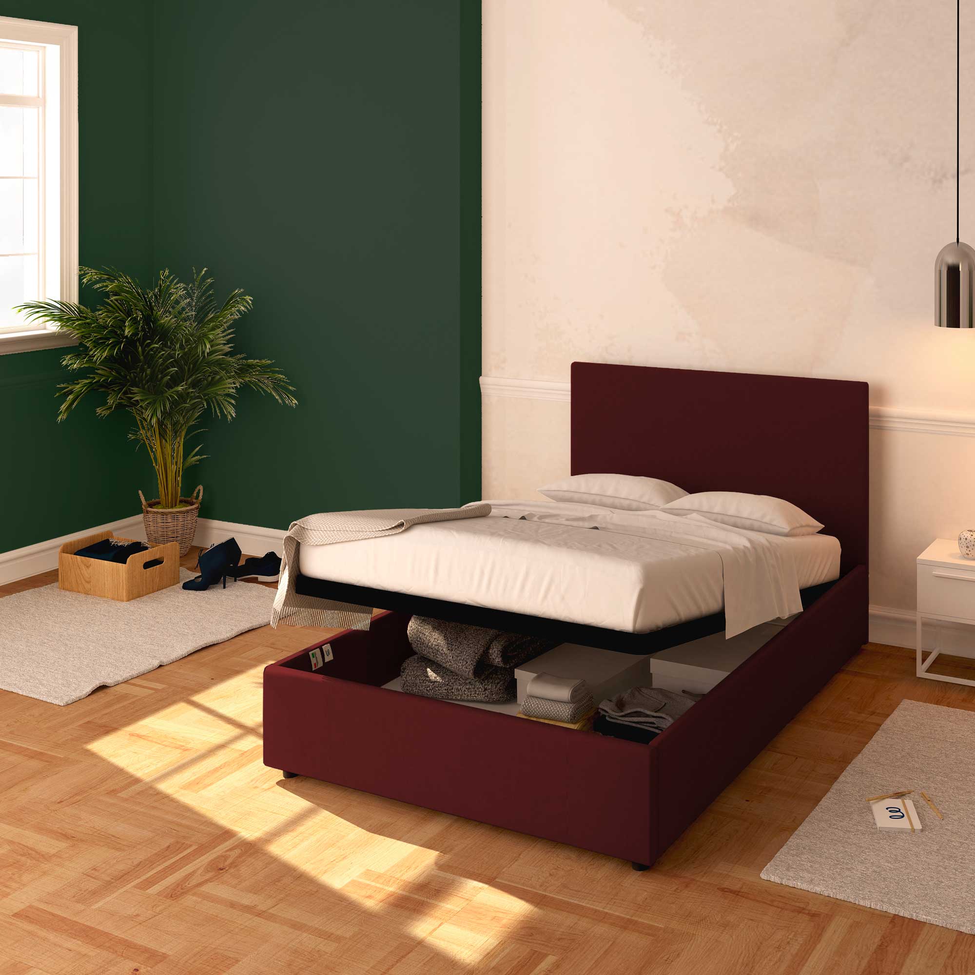 • Baldiflex letto contenitore piazza e mezza in ecopelle sfoderabile Rossano rosso da destra