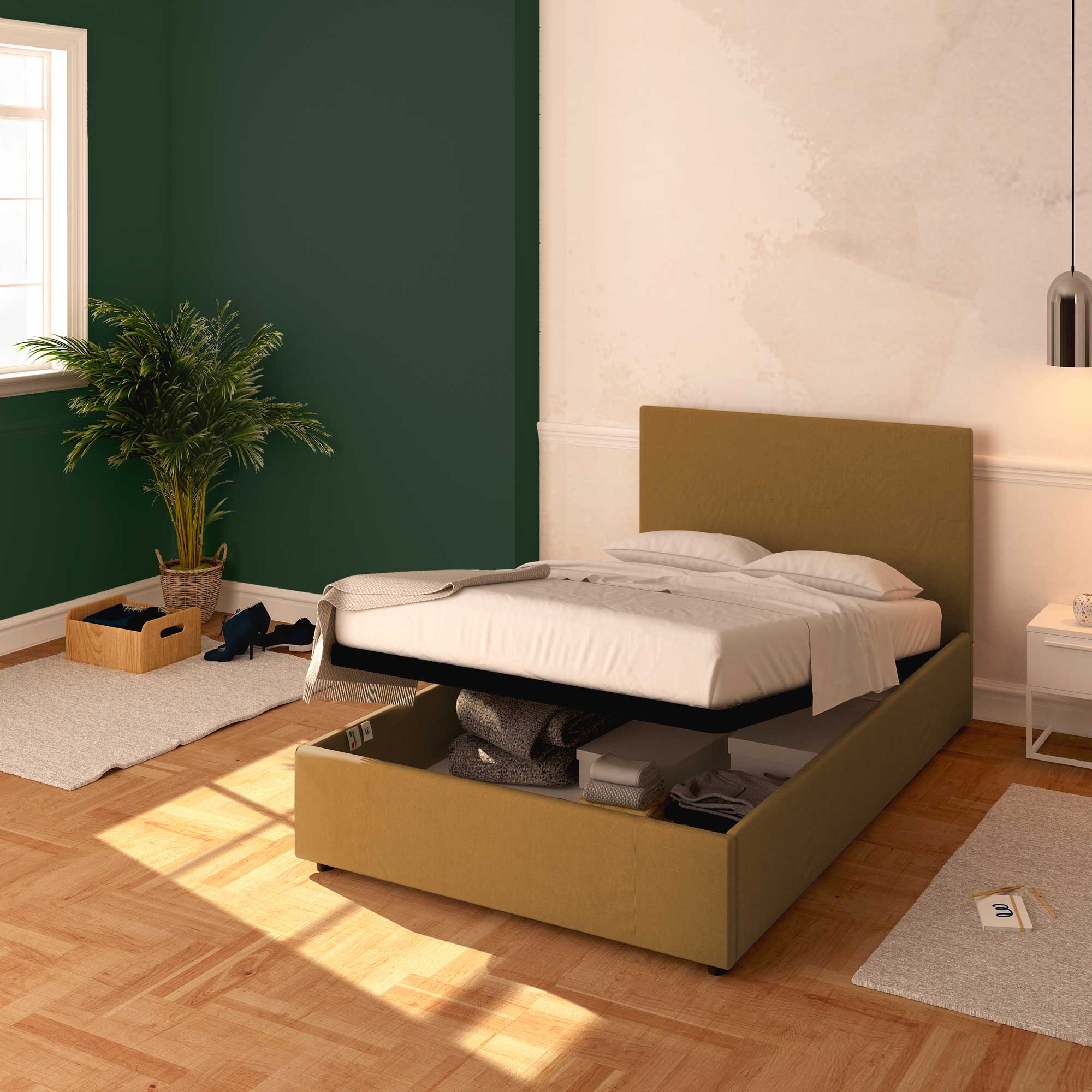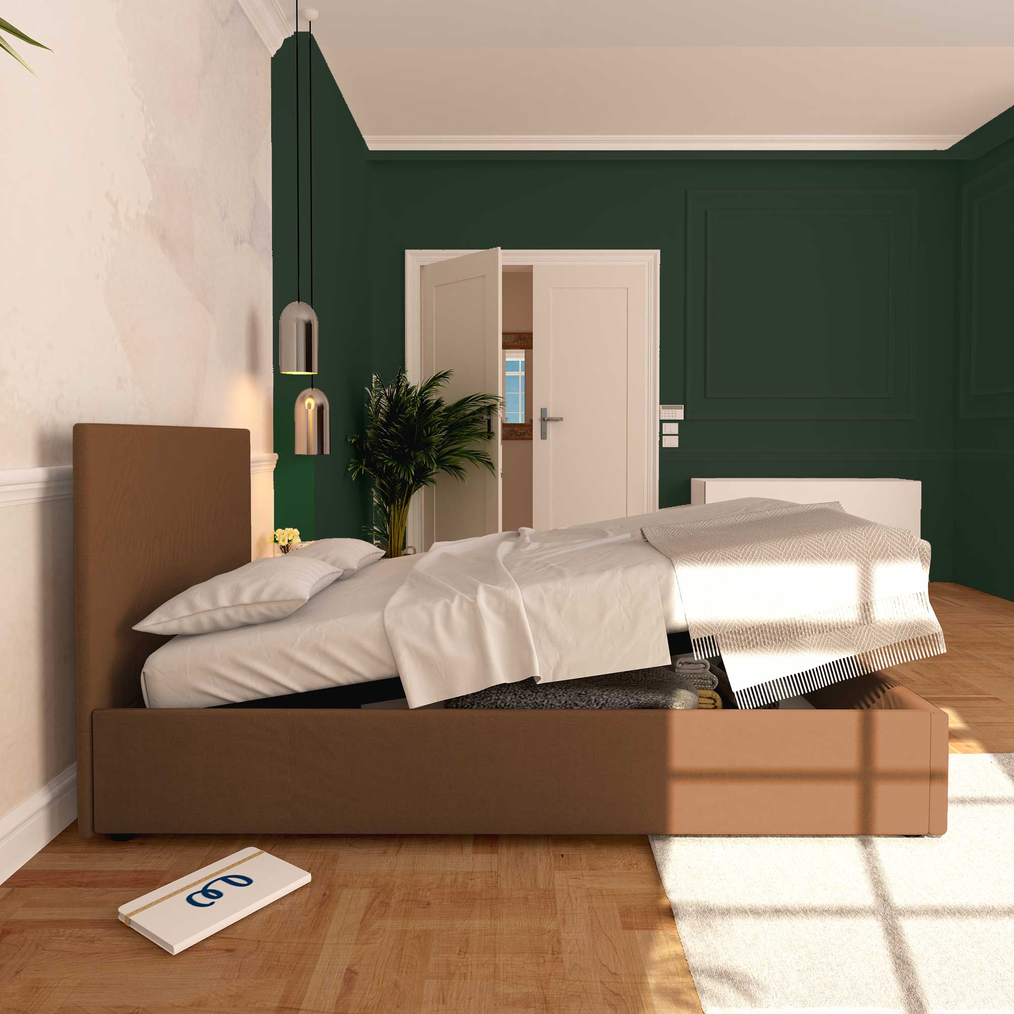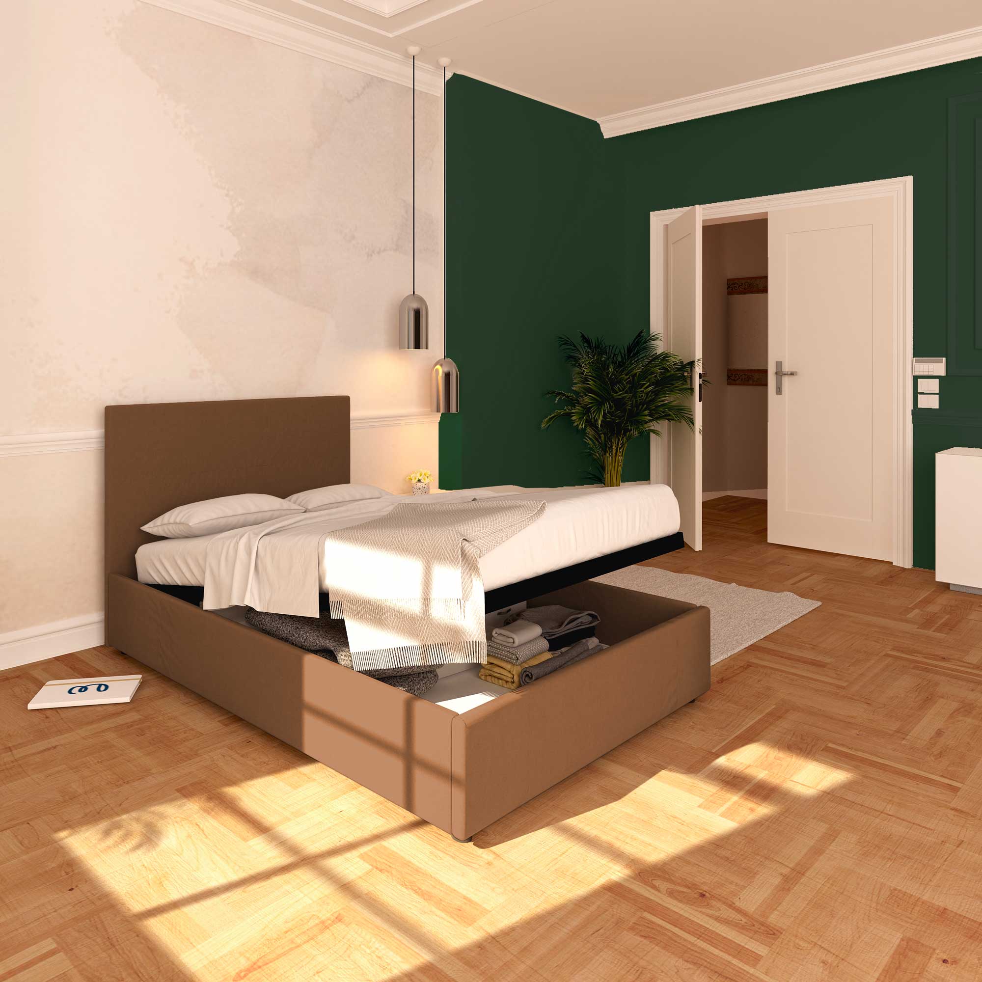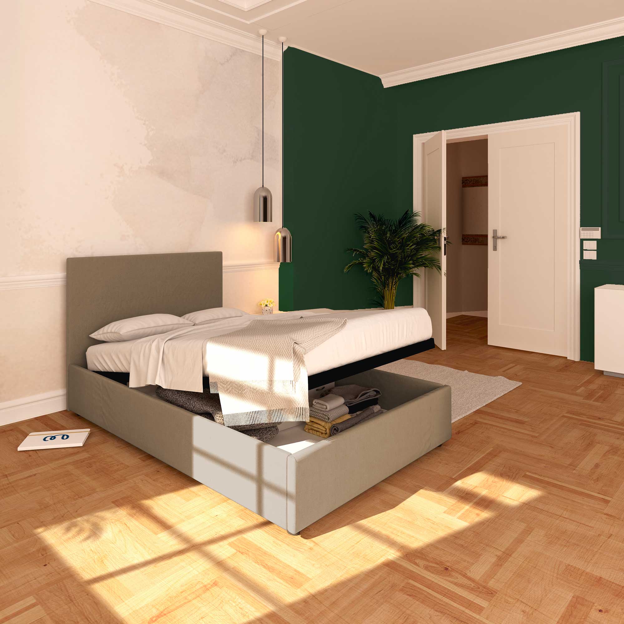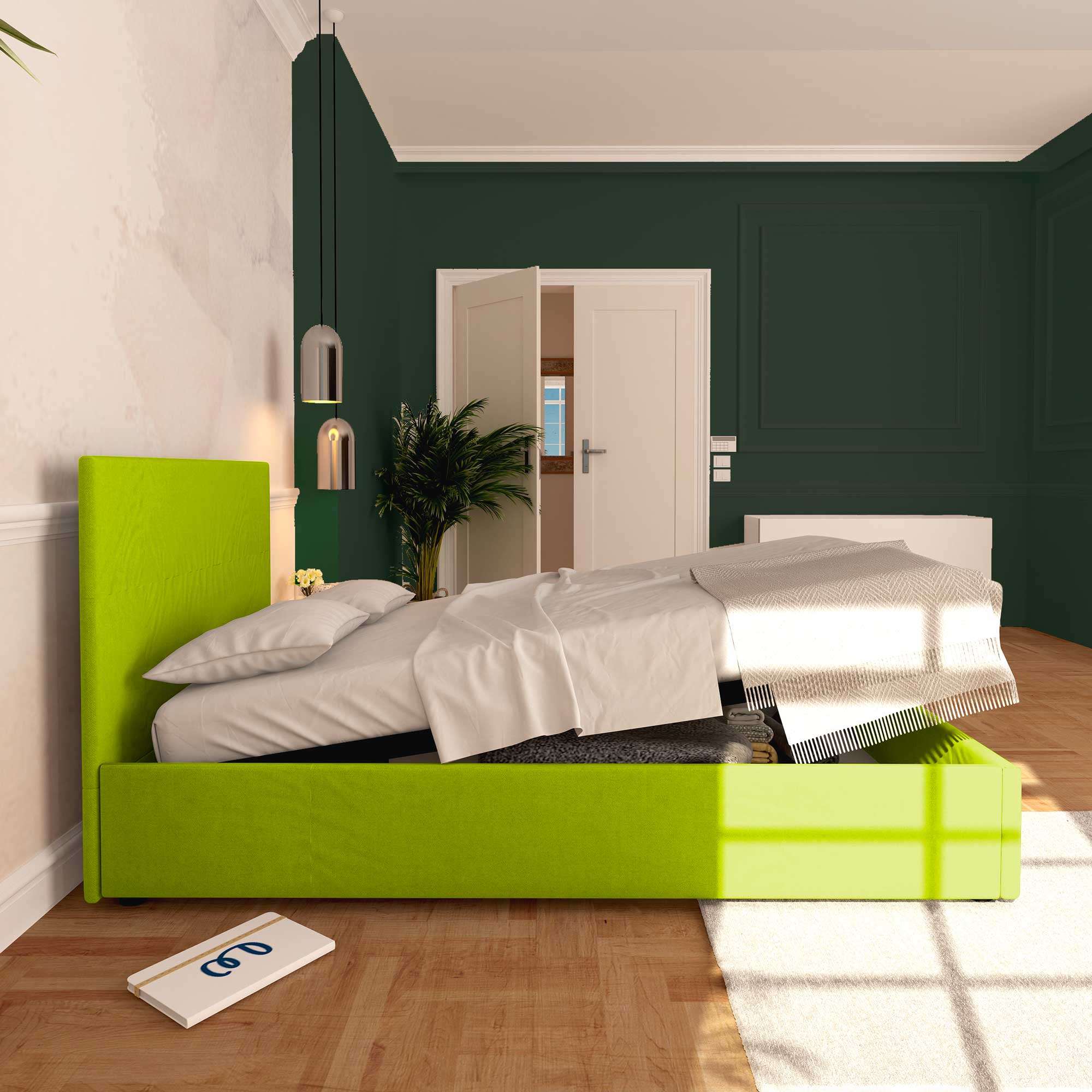 • Baldiflex letto contenitore piazza e mezza in ecopelle sfoderabile Rossano verde mela da destra