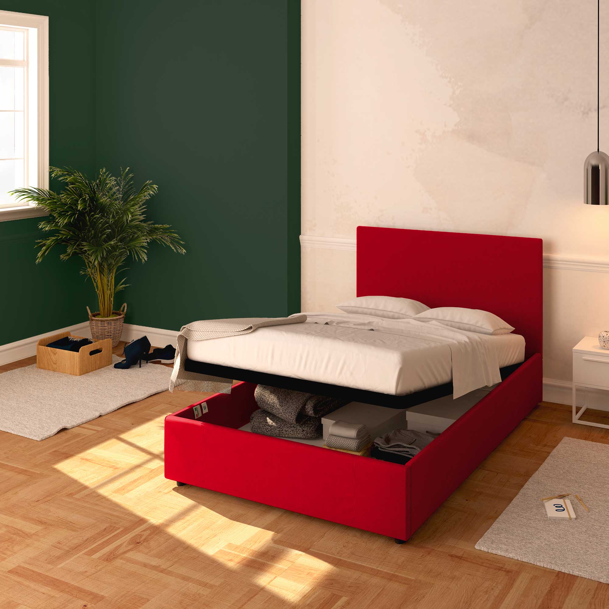 • Baldiflex letto contenitore piazza e mezza in ecopelle sfoderabile Rossano rosso da sinistra
