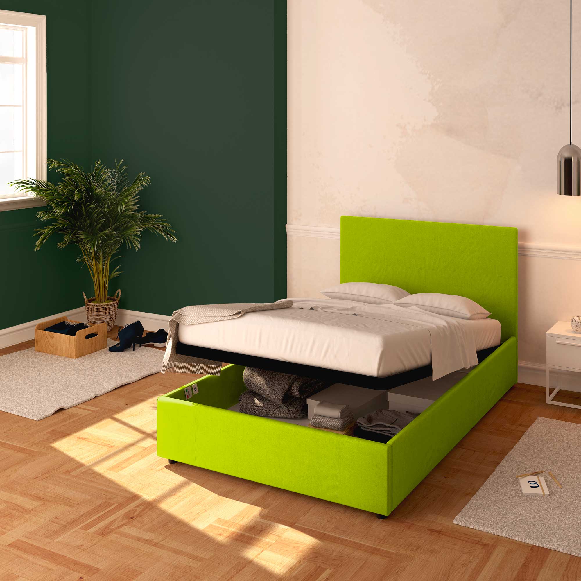 • Baldiflex letto contenitore piazza e mezza in ecopelle sfoderabile Rossano verde mela da sinistra