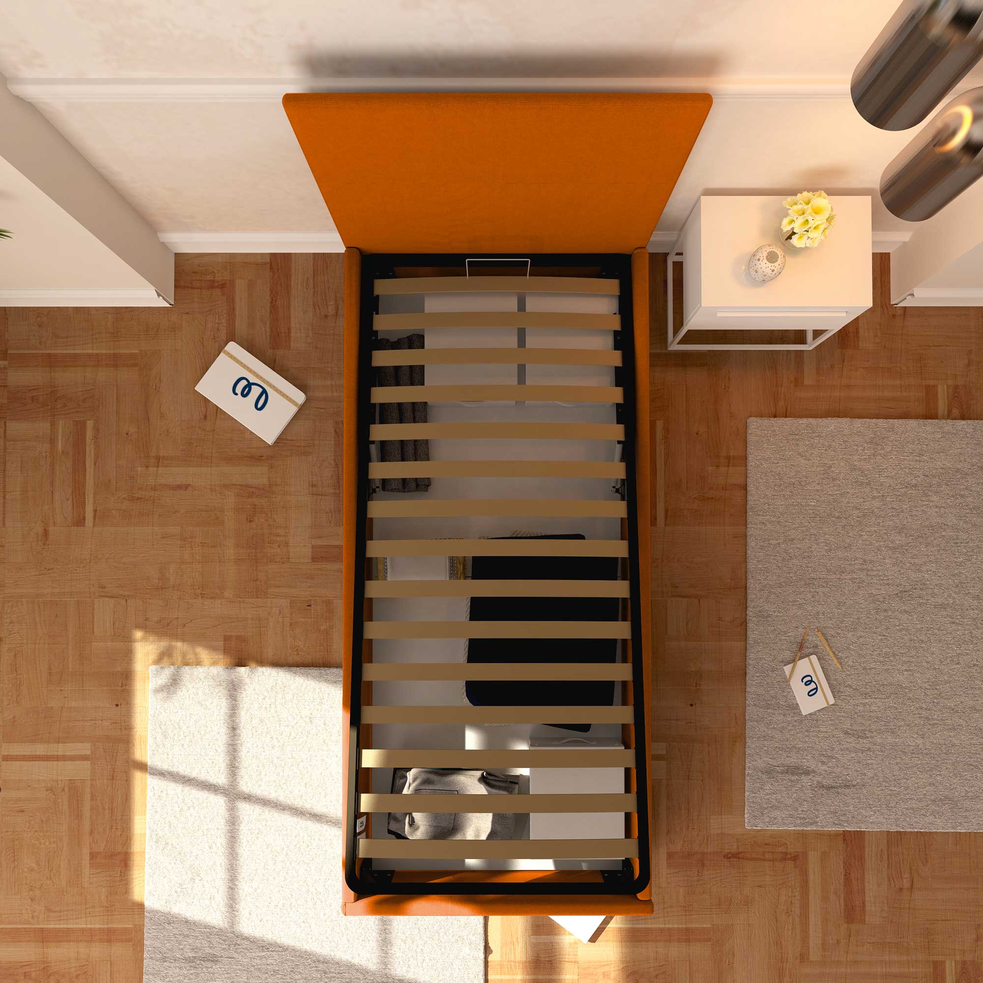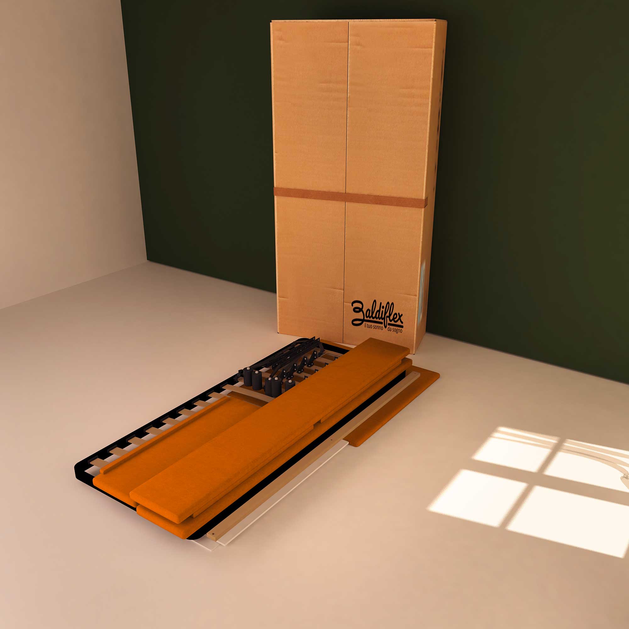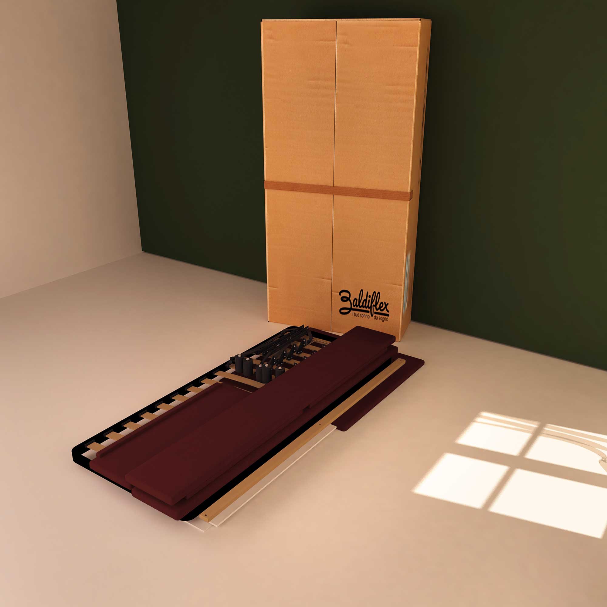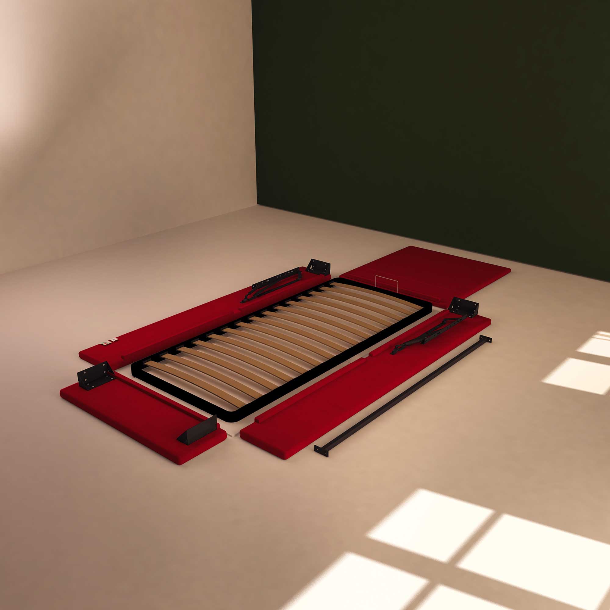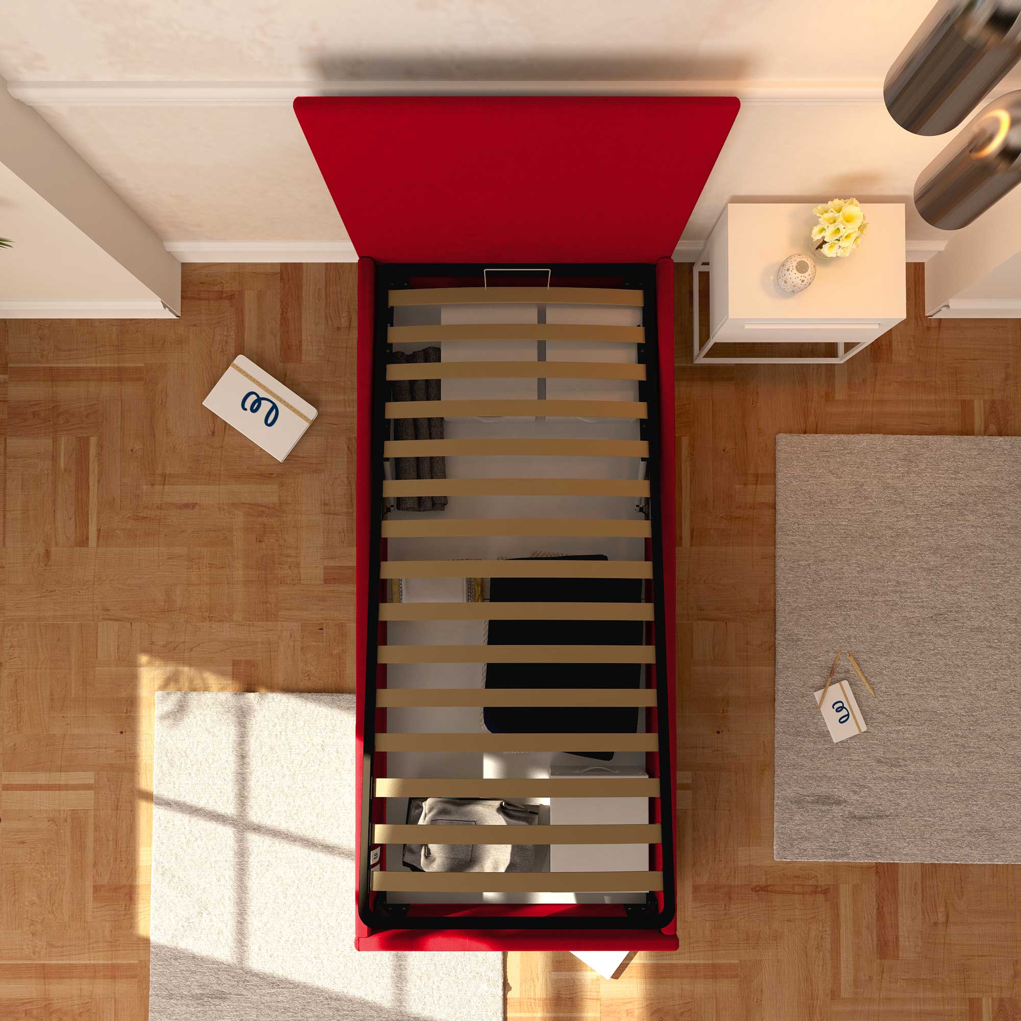 • Baldiflex letto contenitore singolo in ecopelle sfoderabile Rossano rosso smontato