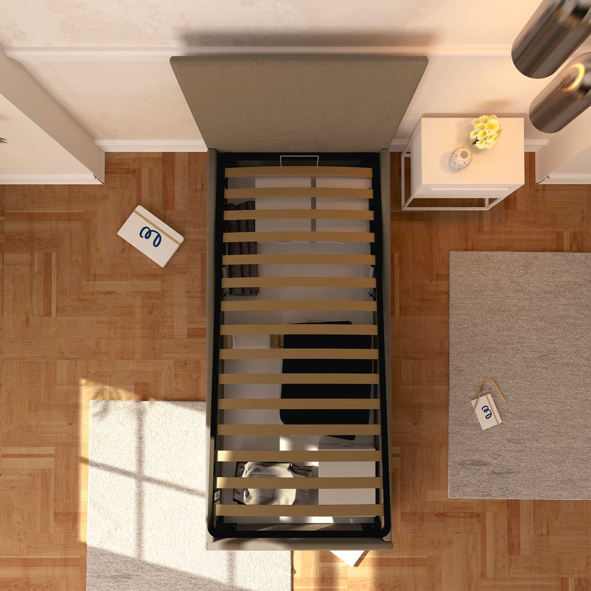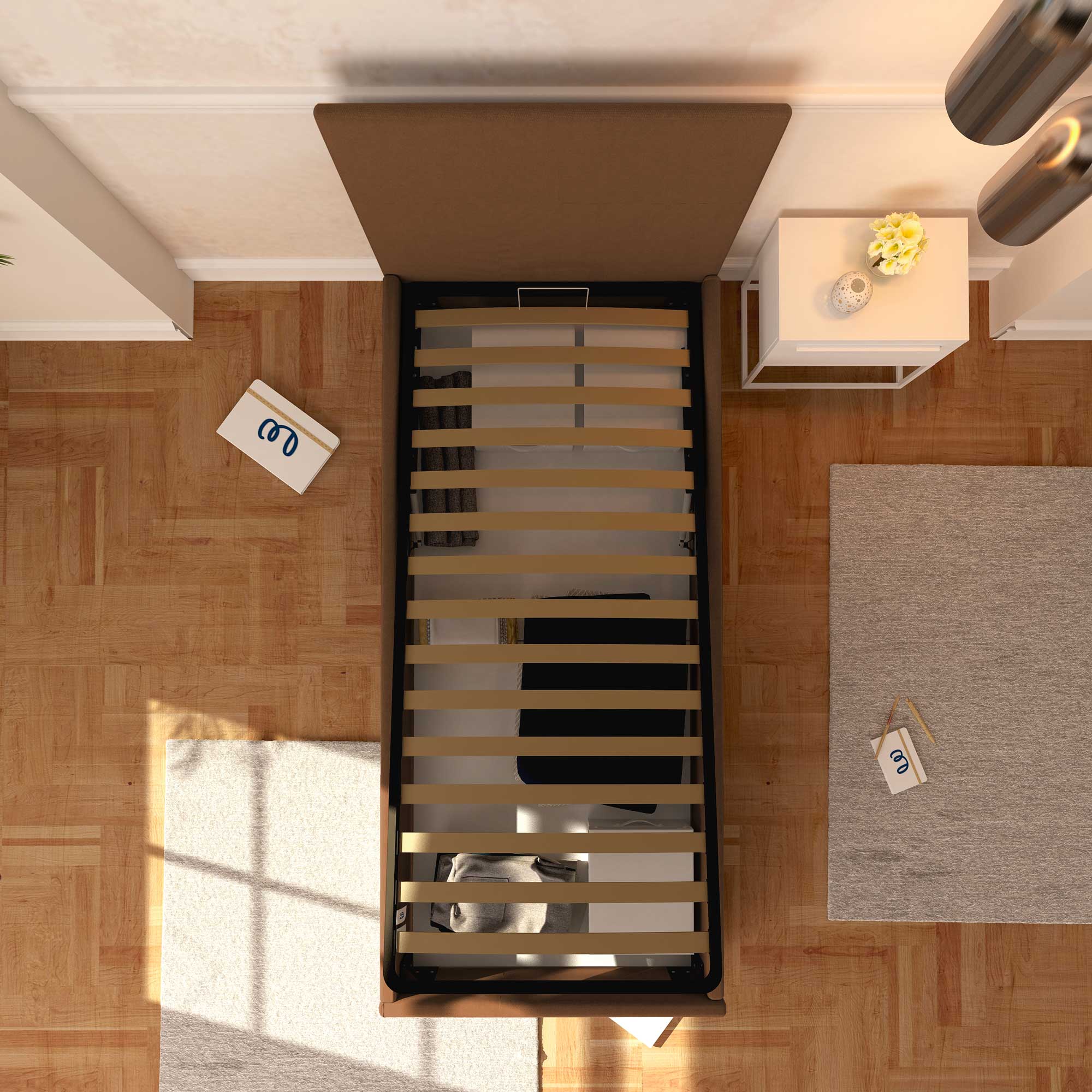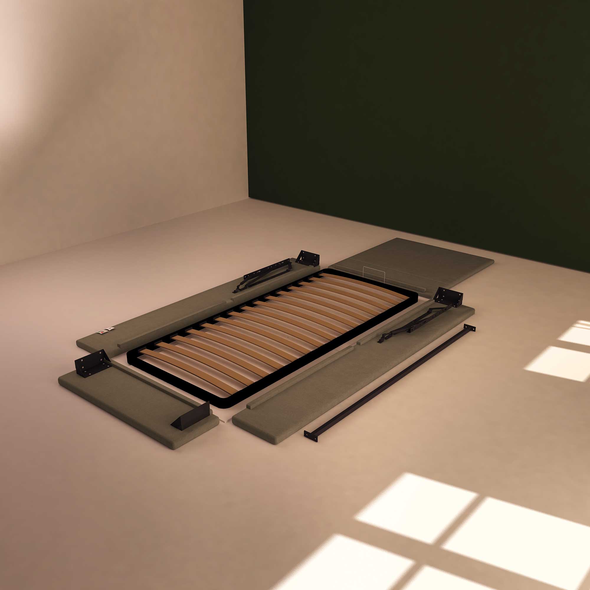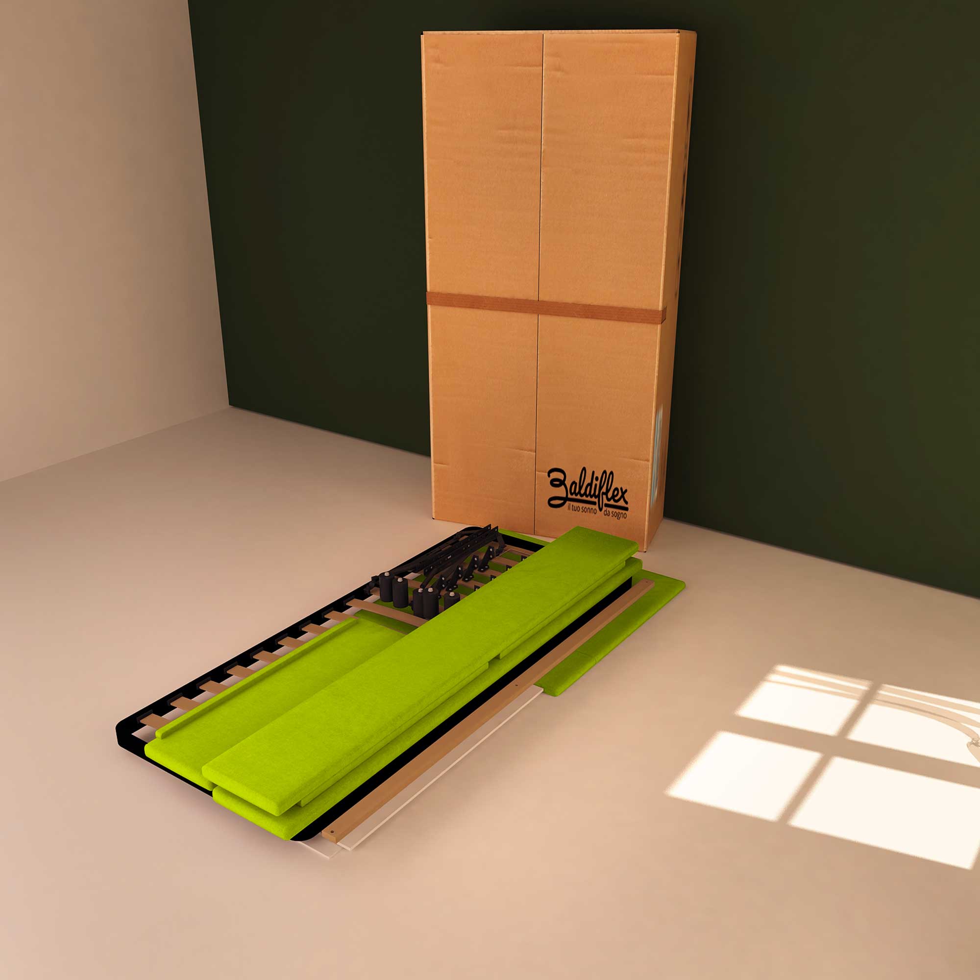 • Baldiflex letto contenitore singolo in ecopelle sfoderabile Rossano verde mela smontato