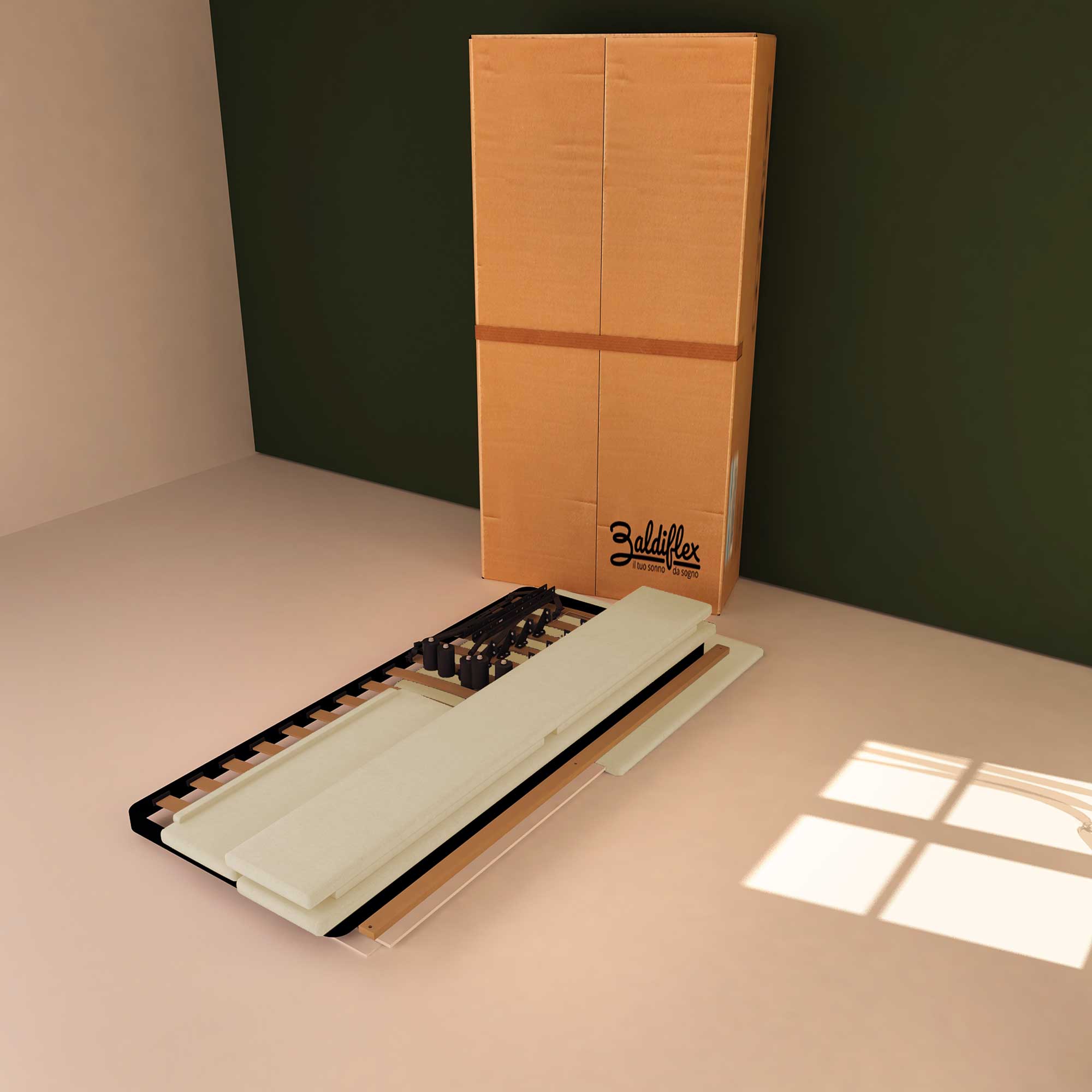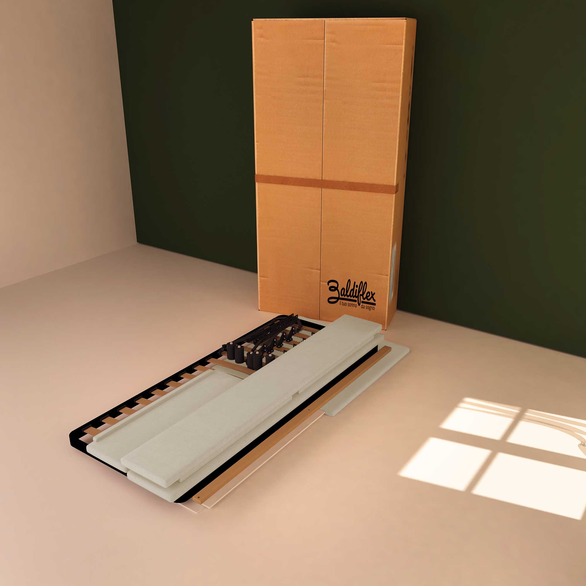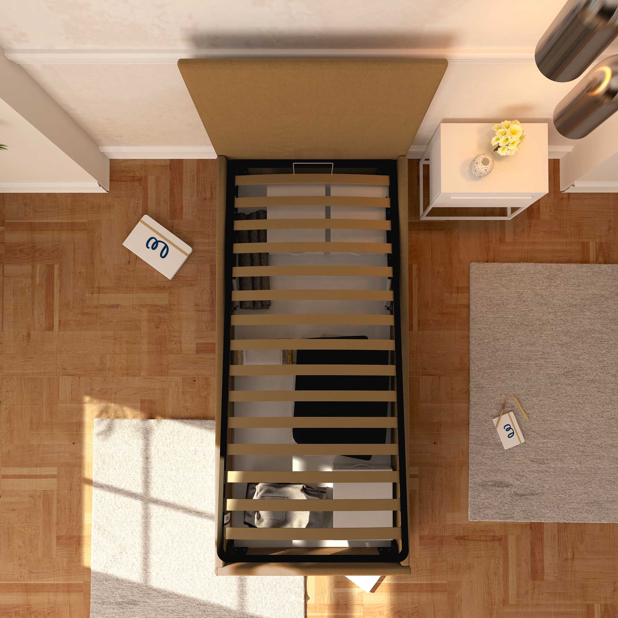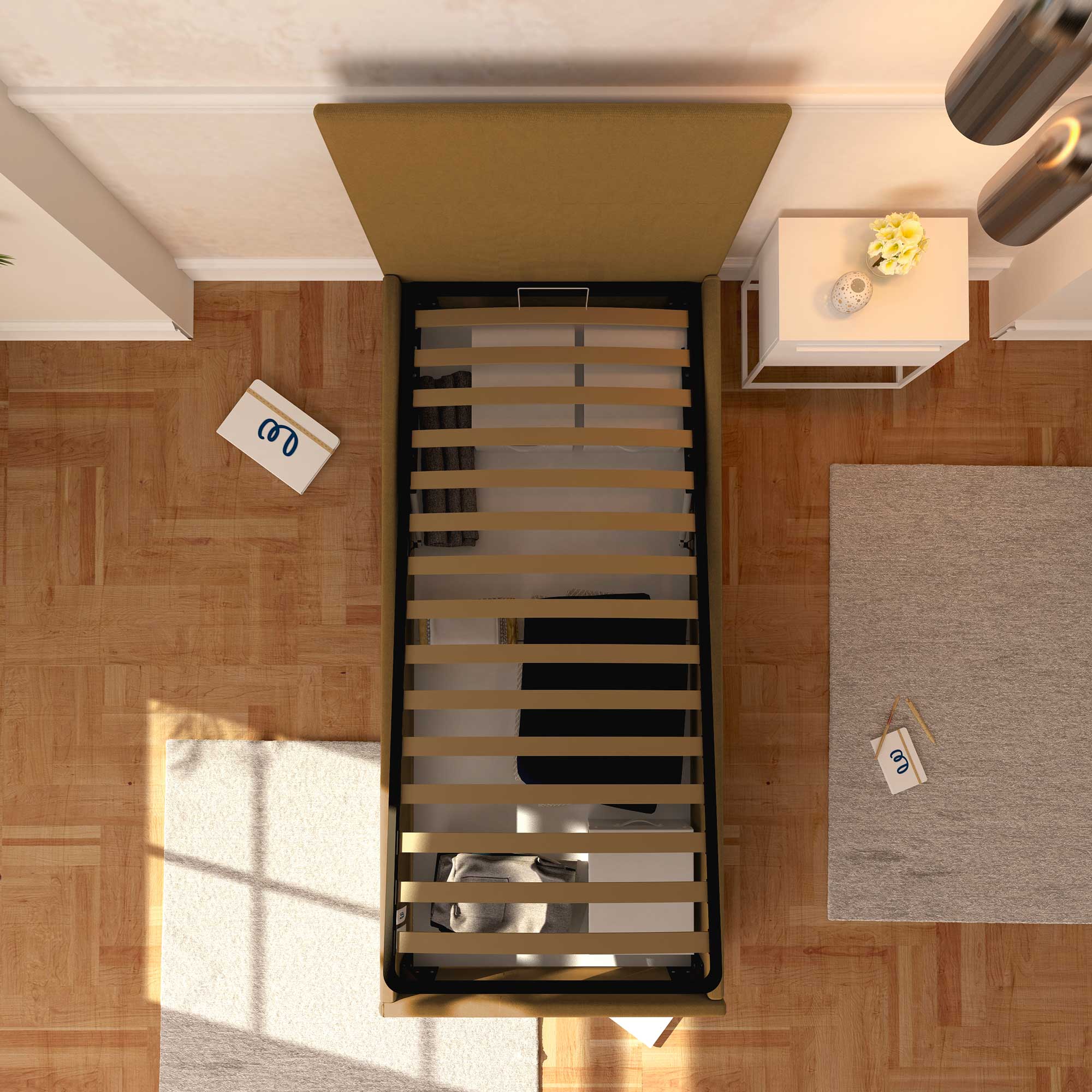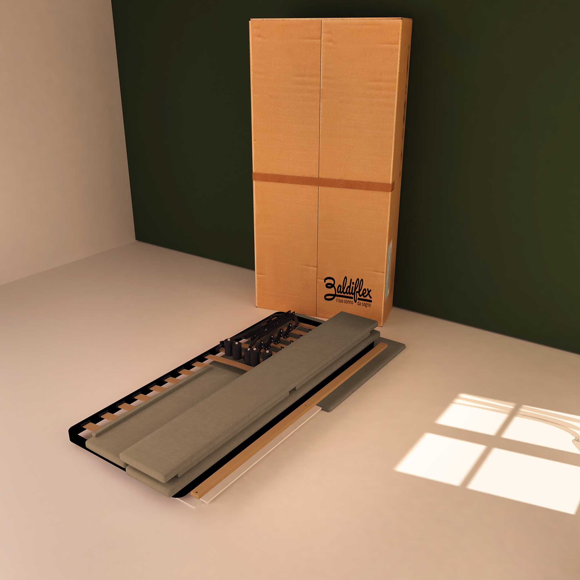 • Baldiflex letto contenitore singolo in ecopelle sfoderabile Rossano verde mela smontato