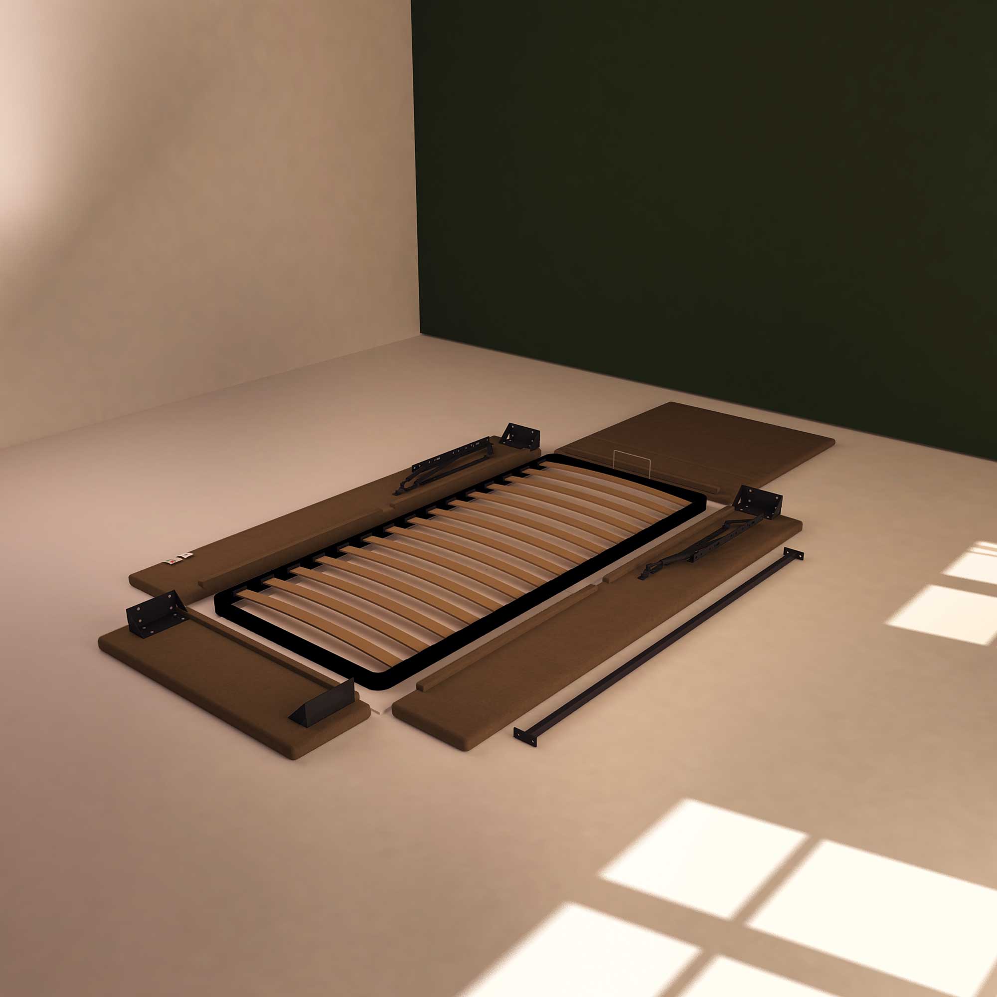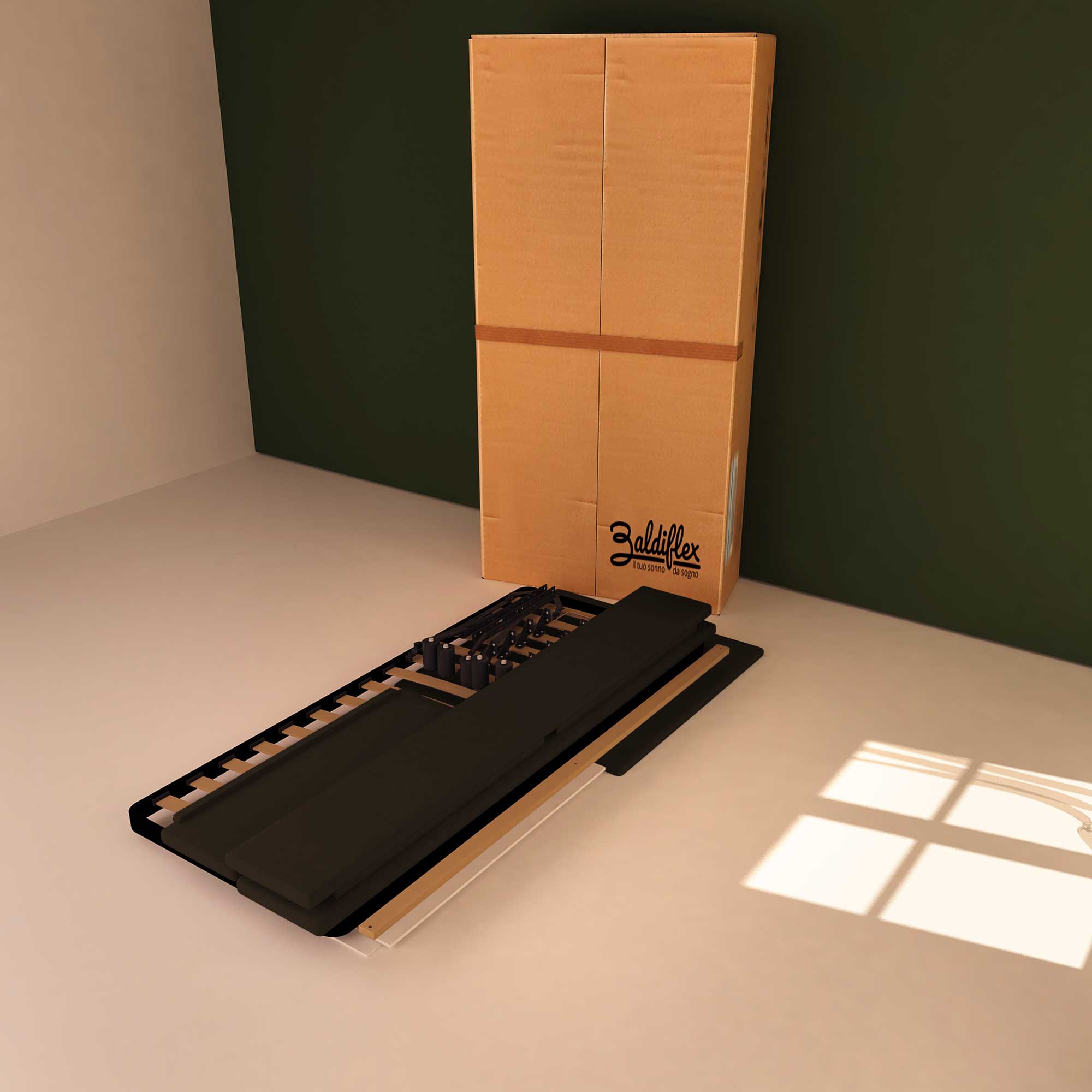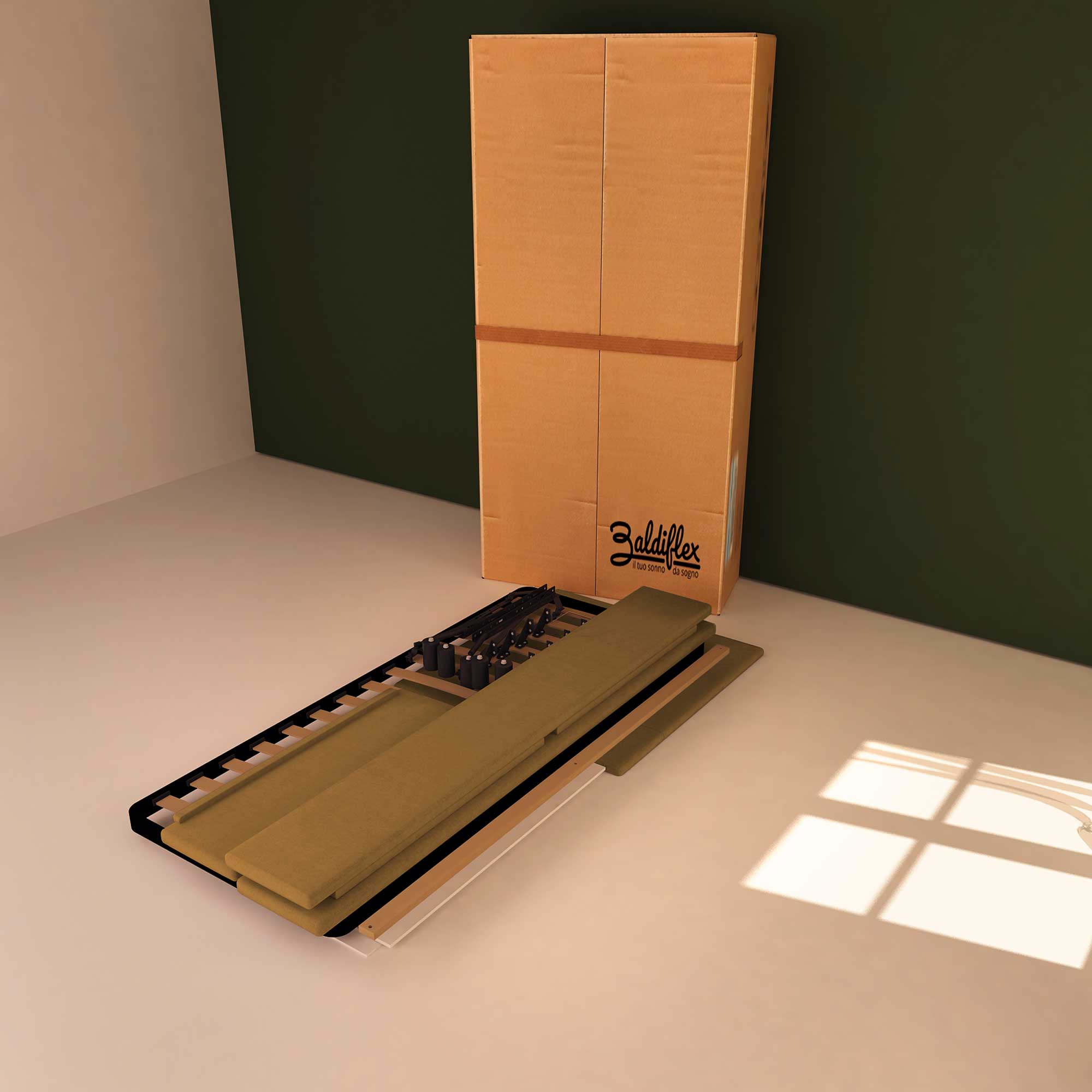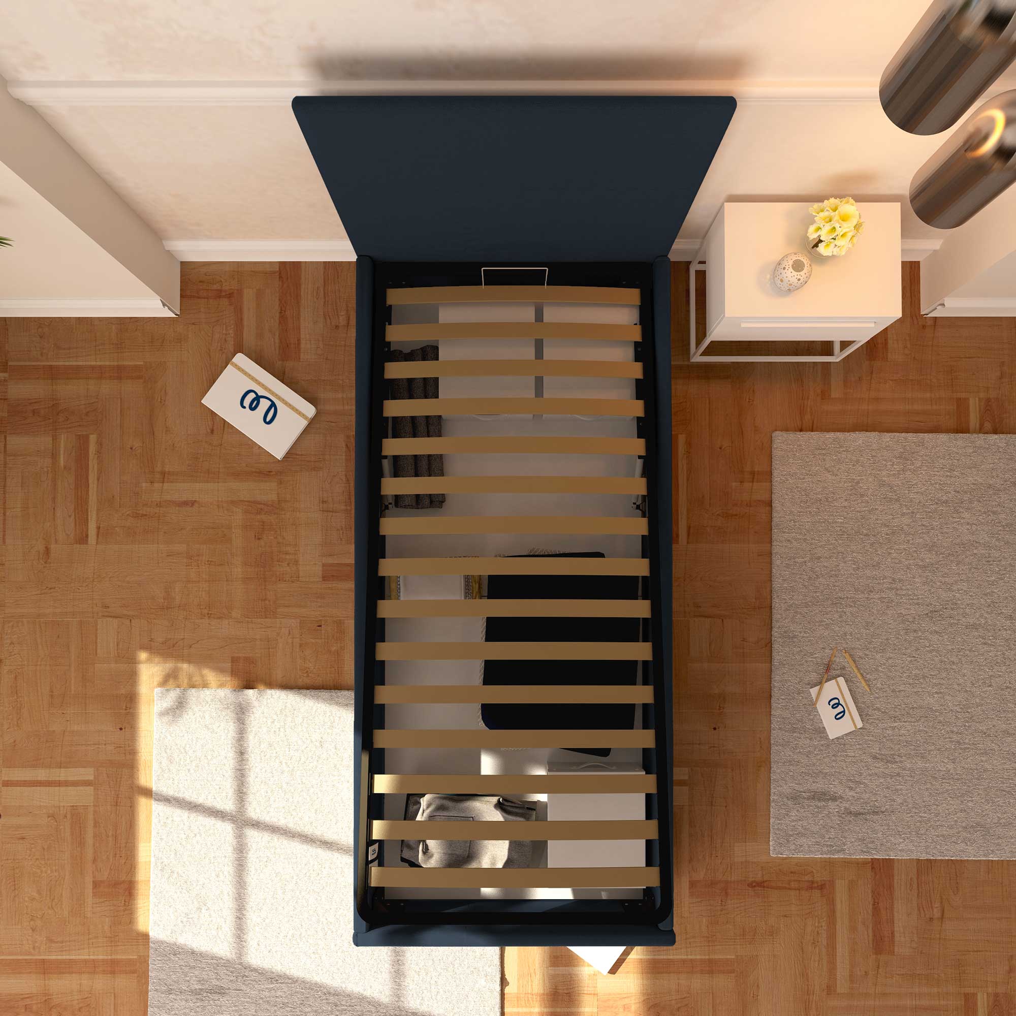 • Baldiflex letto contenitore singolo in ecopelle sfoderabile Rossano verde mela smontato