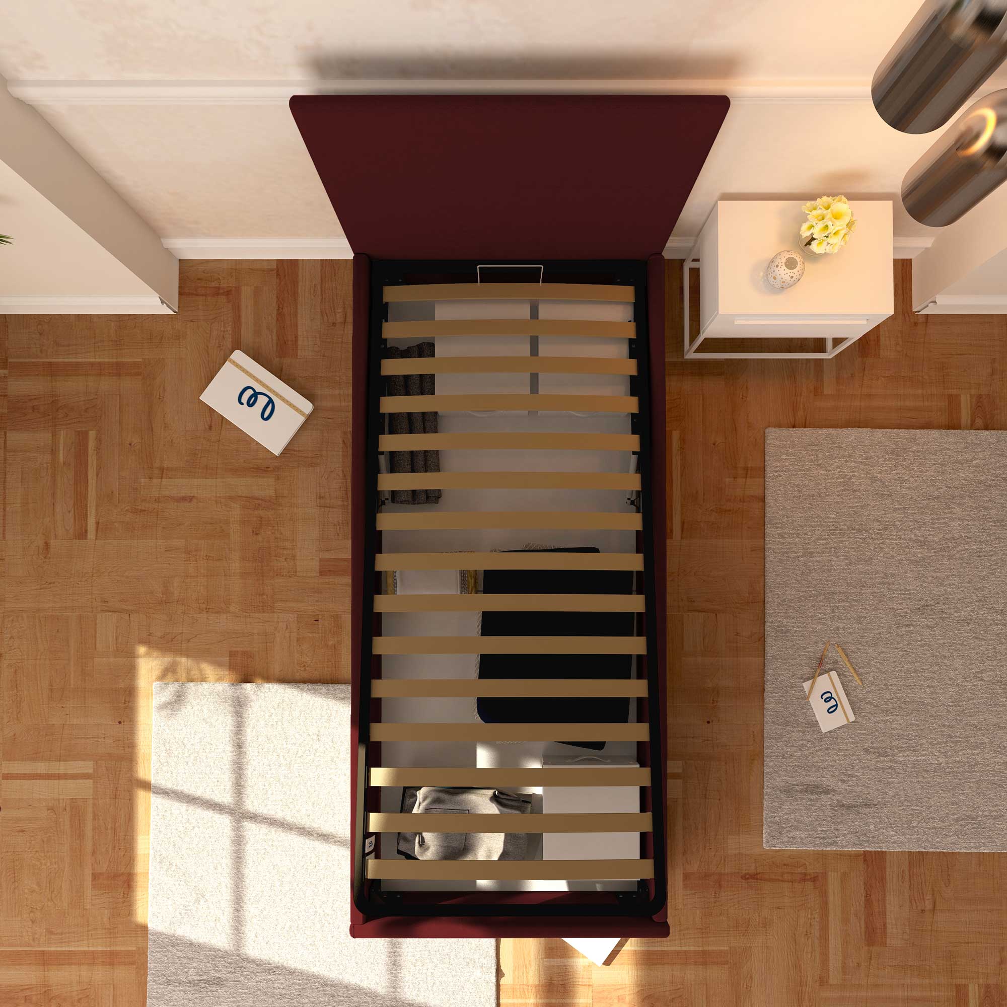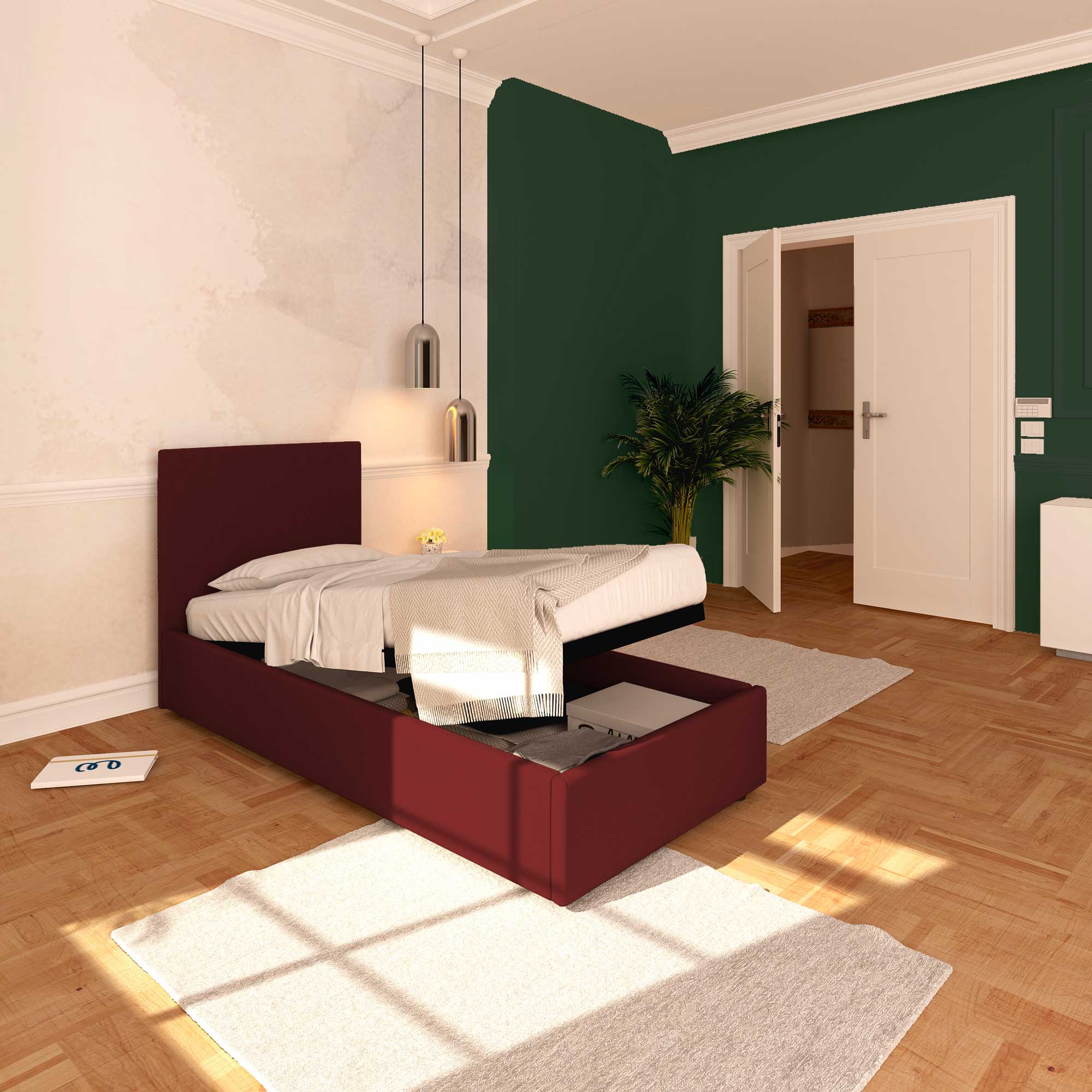 • Baldiflex letto contenitore singolo in ecopelle sfoderabile Rossano rosso da sinistra