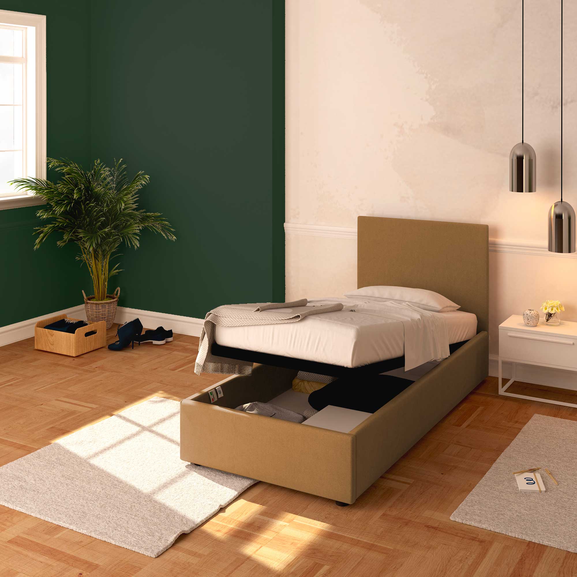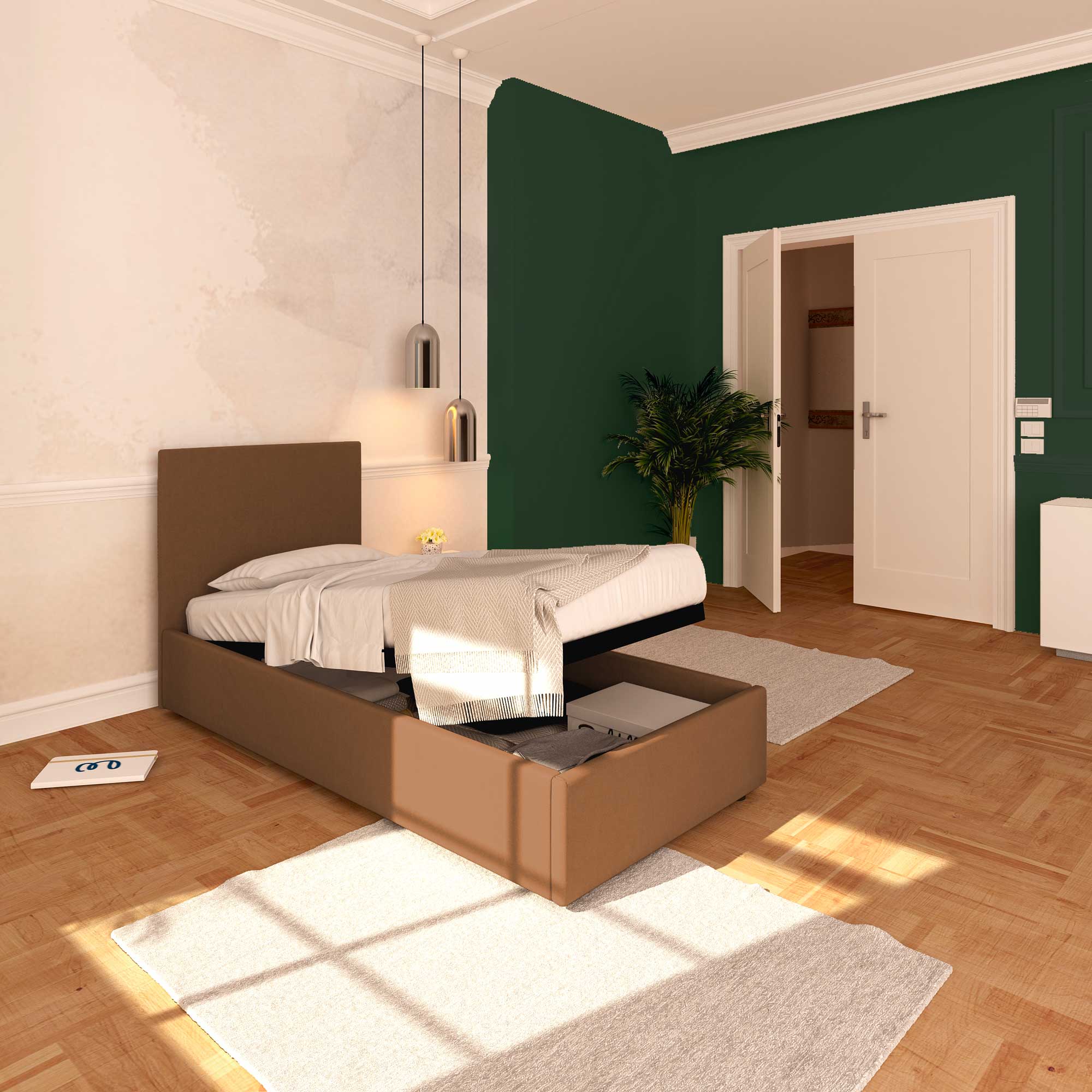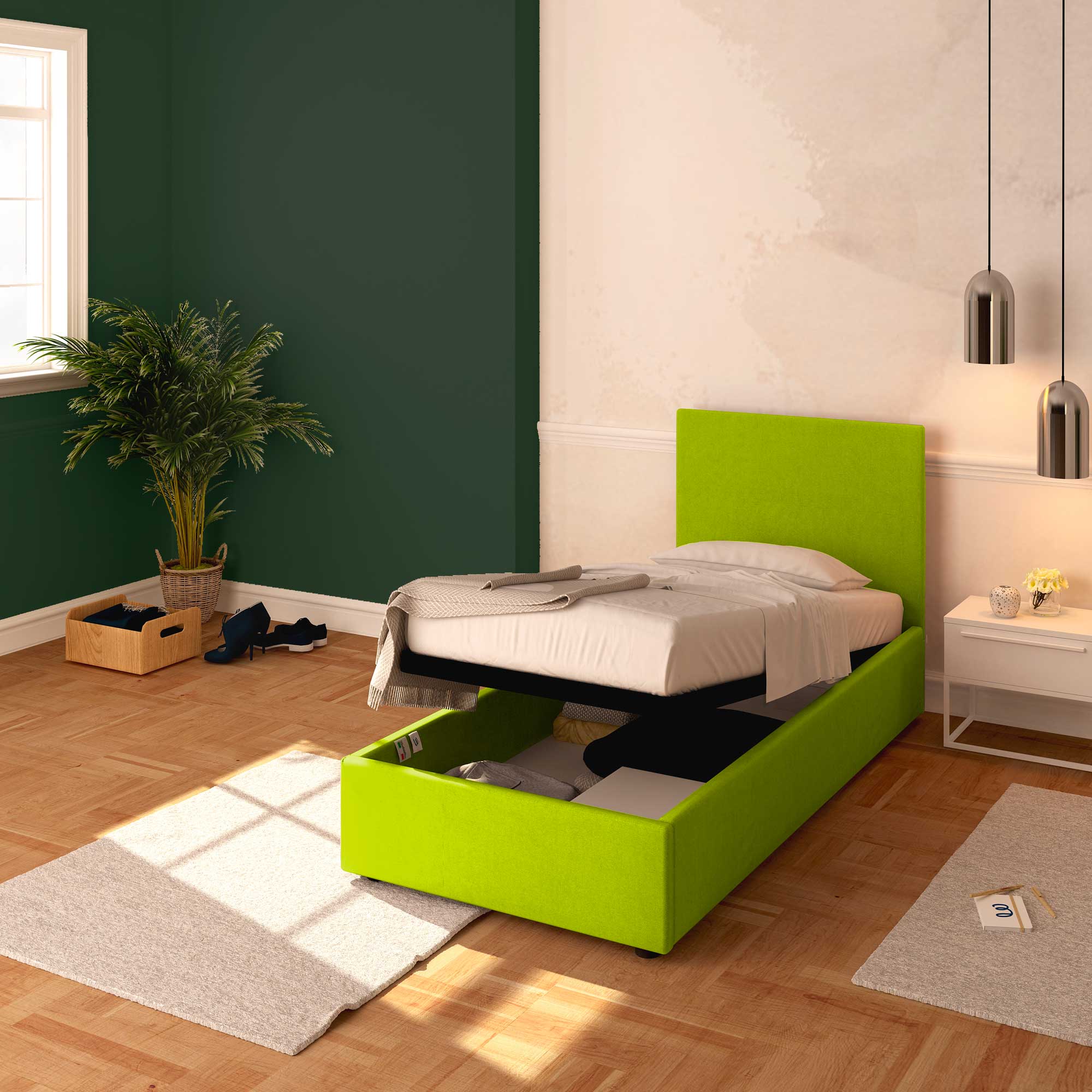 • Baldiflex letto contenitore singolo in ecopelle sfoderabile Rossano verde mela da destra