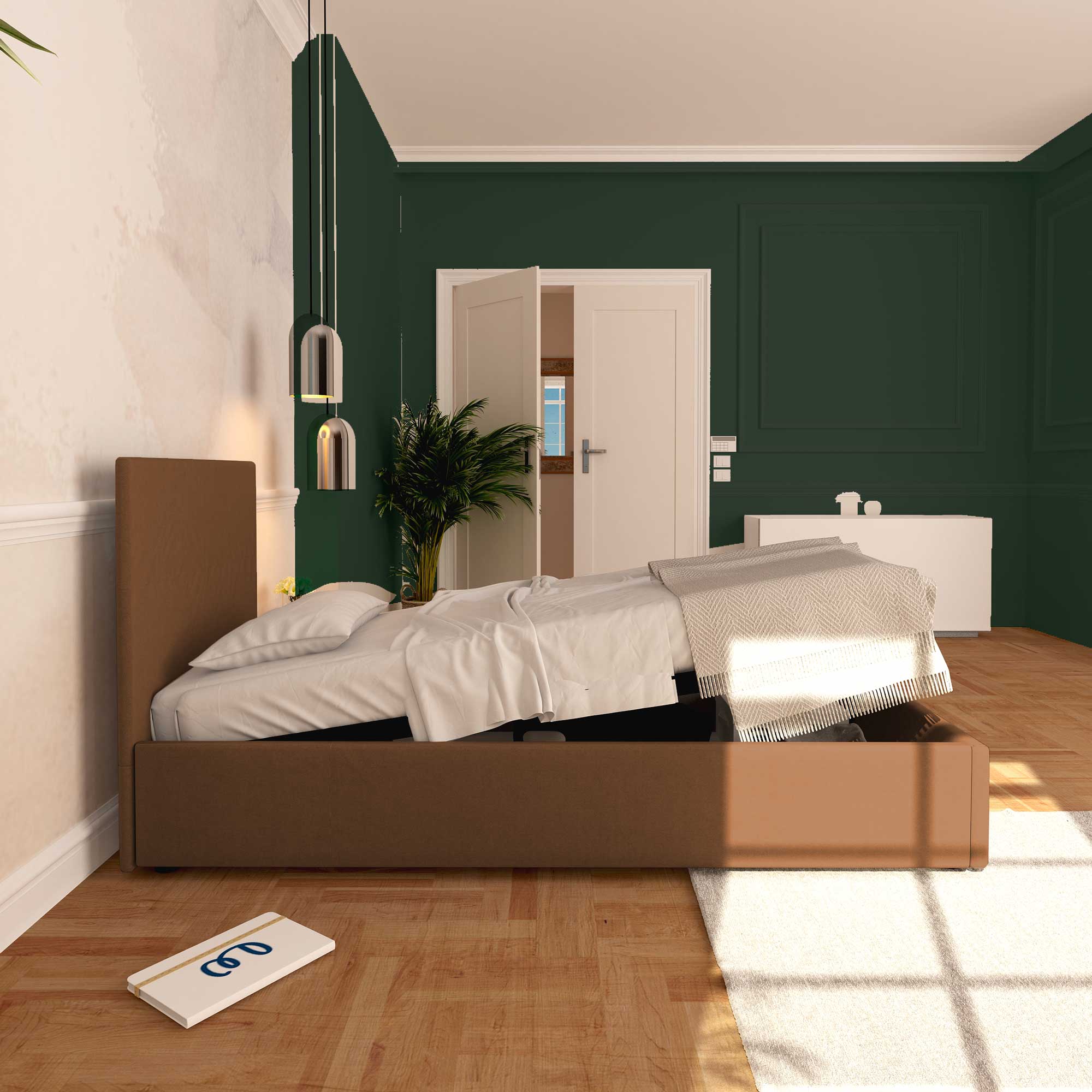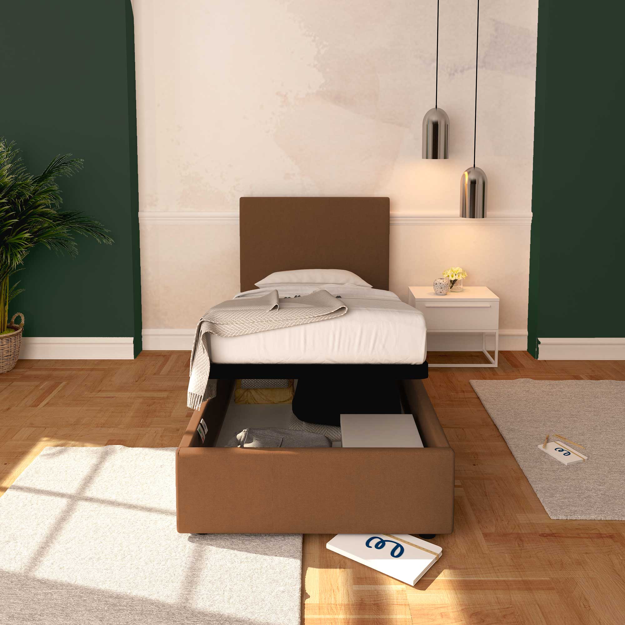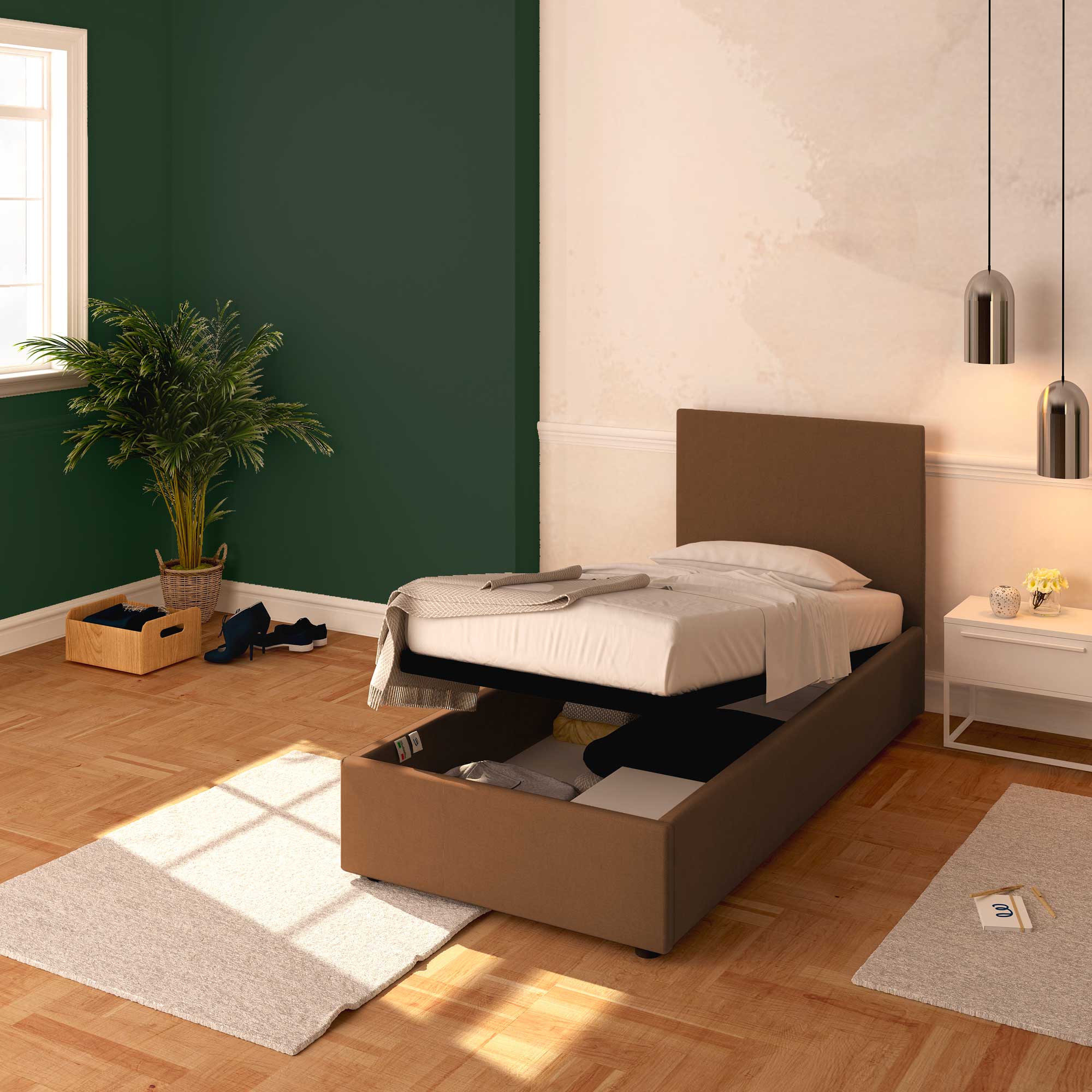 • Baldiflex letto contenitore singolo in ecopelle sfoderabile Rossano verde mela da destra