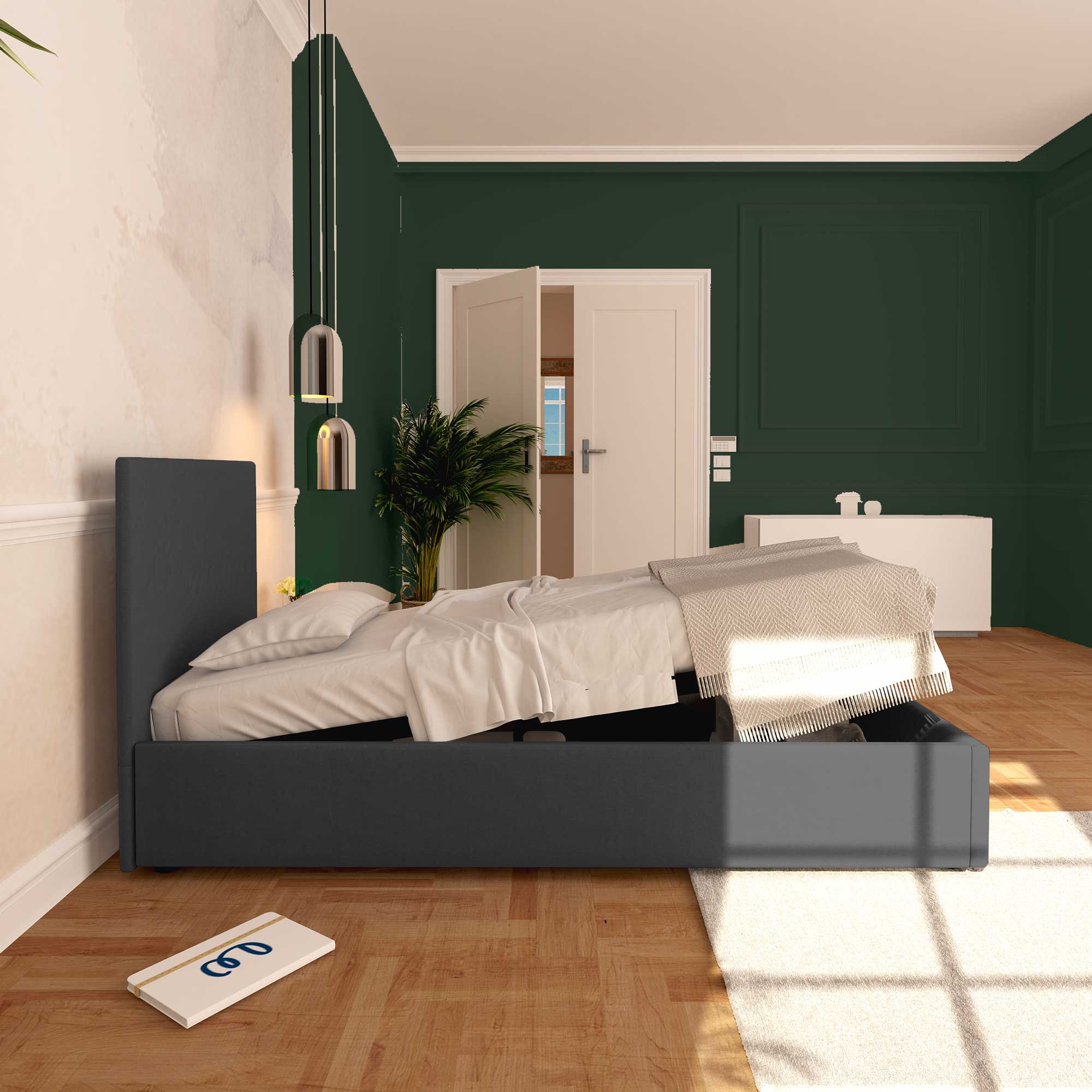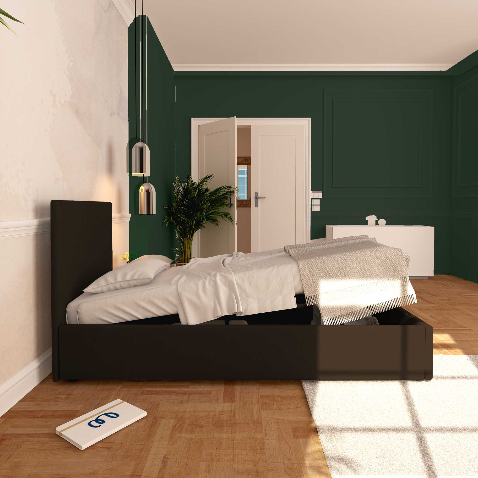 Lit avec rangement simple en faux cuir déhoussable Rossano