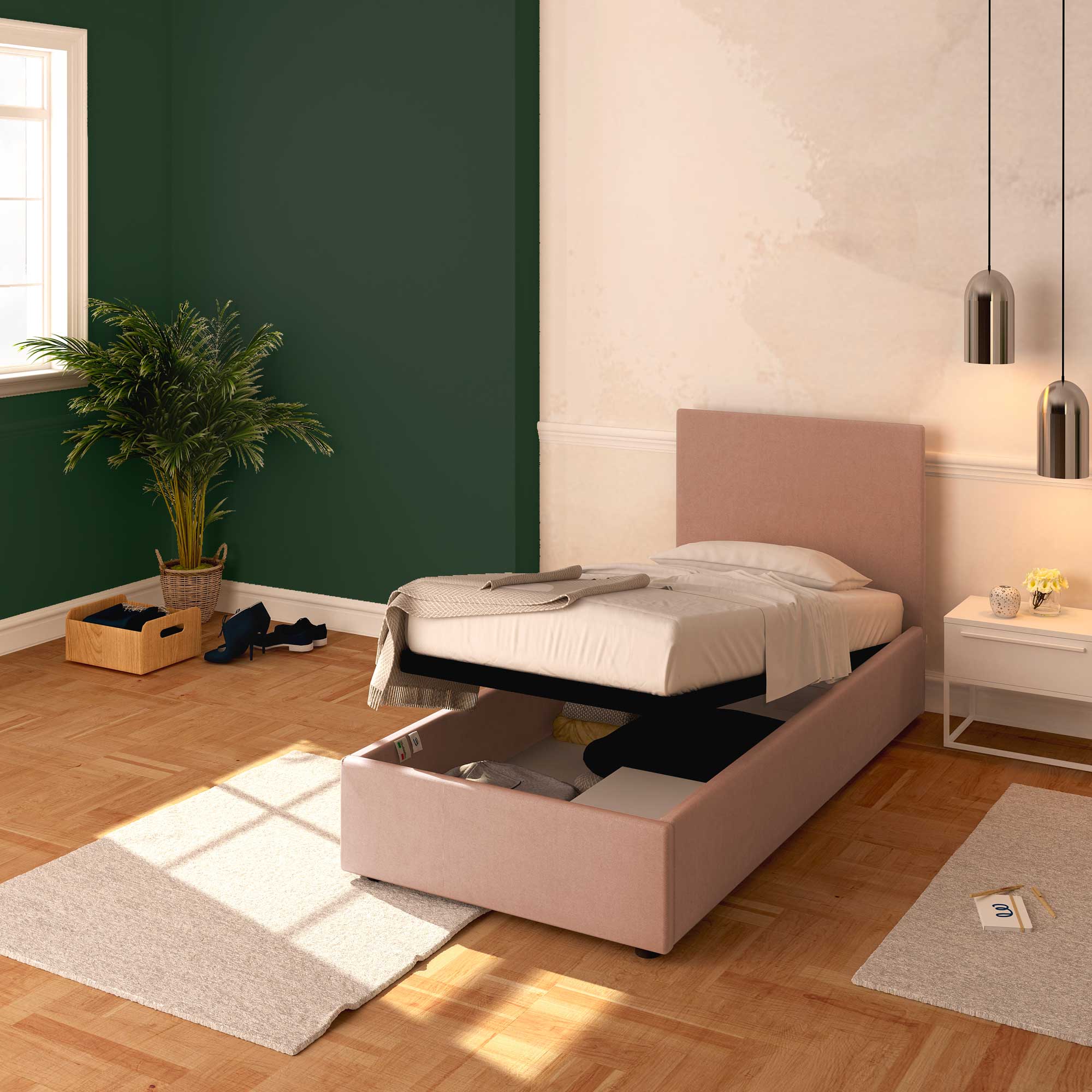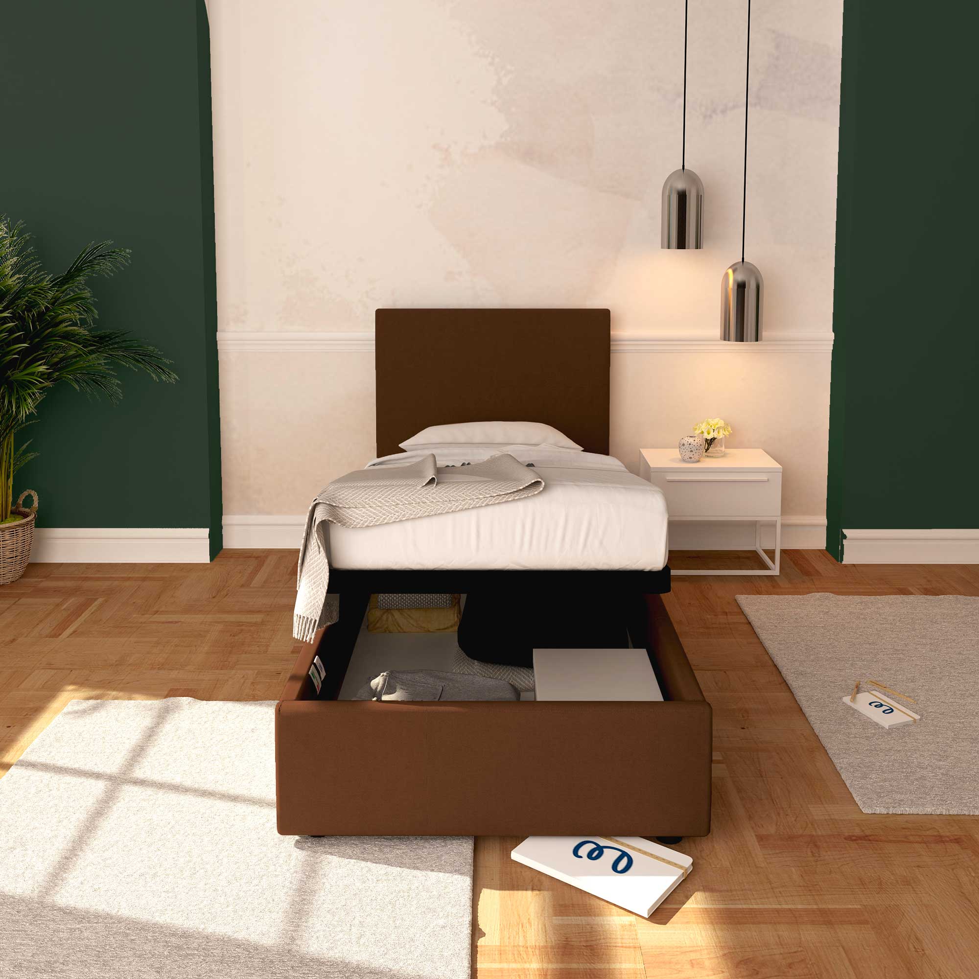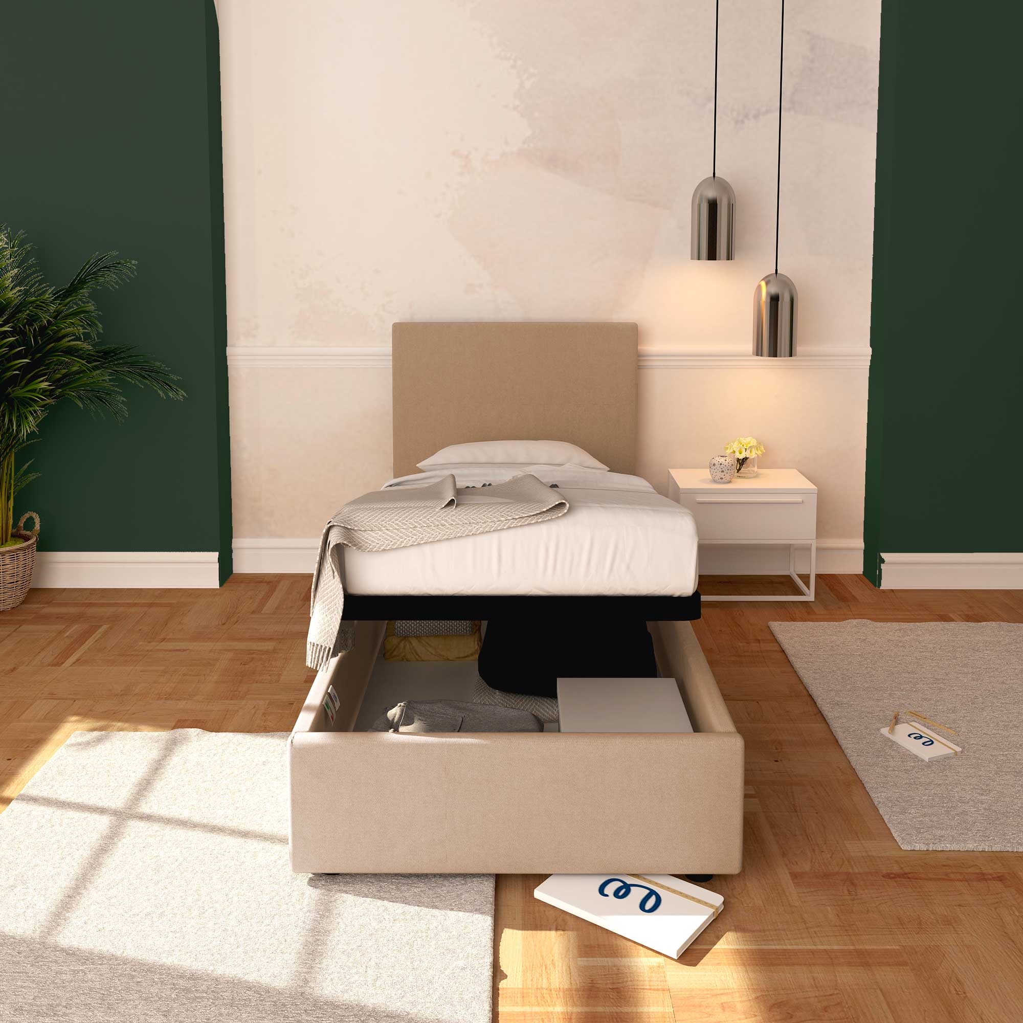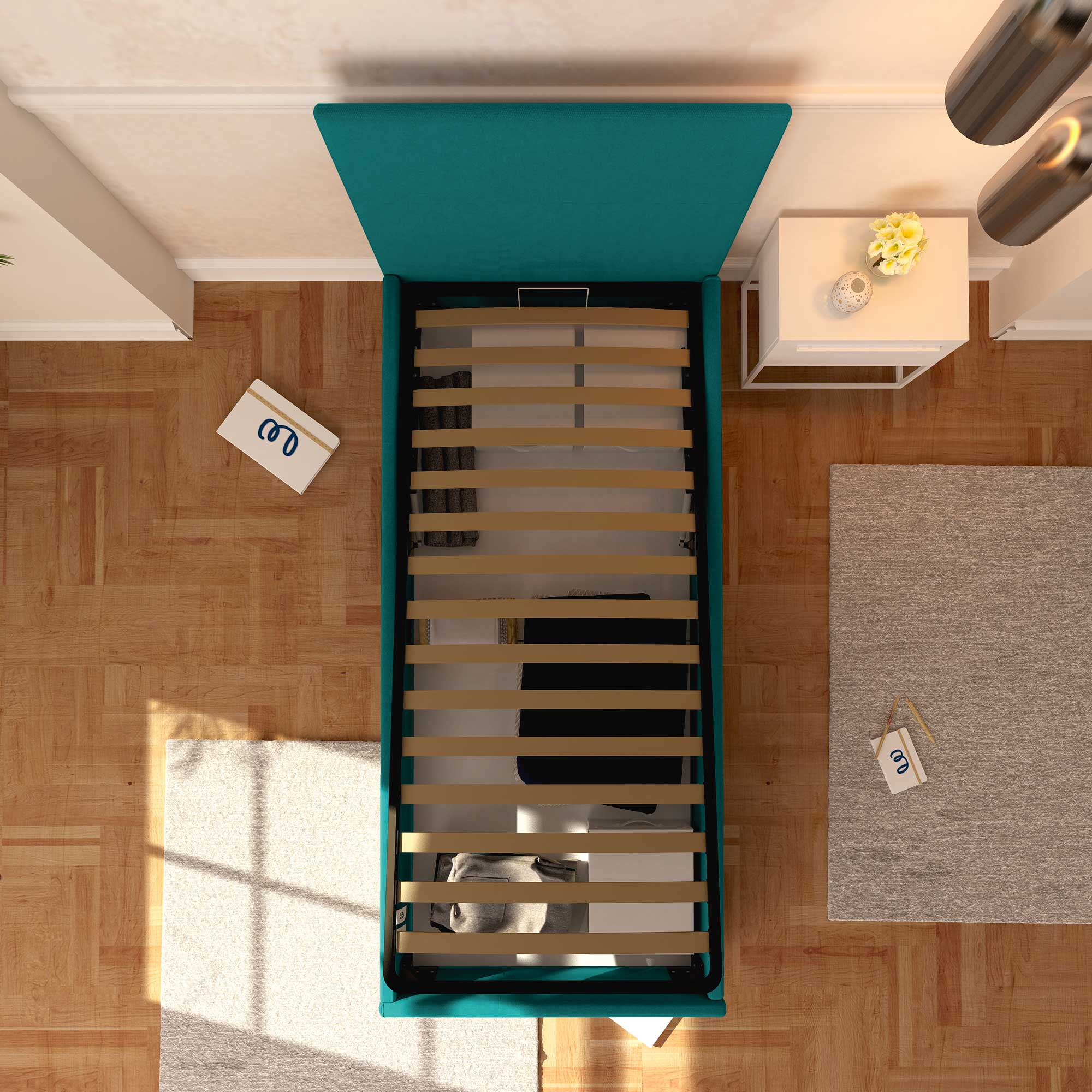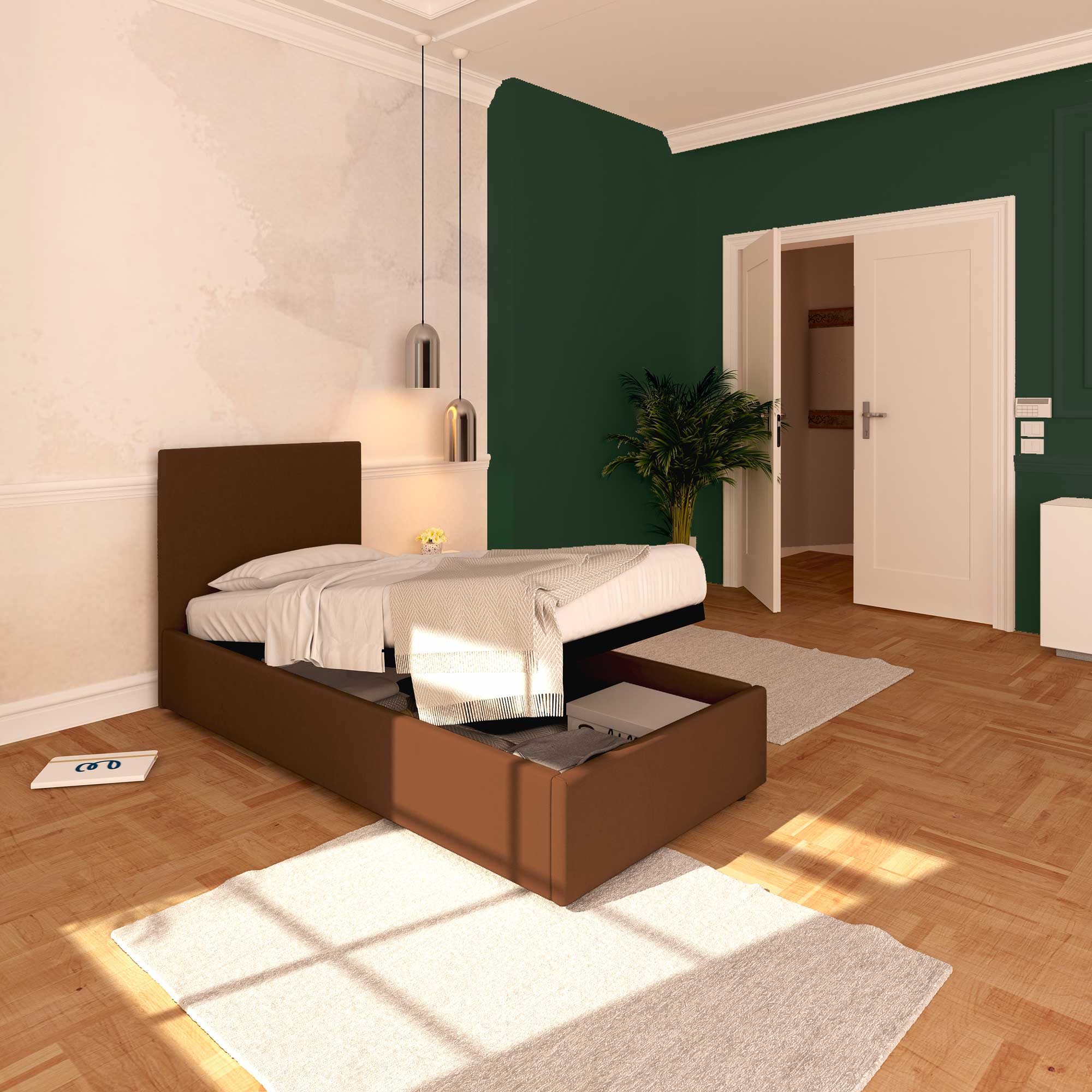 Le lit coffre Rossano permet d'exploiter l'espace sous le lit pour ranger couvertures, draps, couettes, vêtements et boîtes. Le sommier et le matelas se soulèvent facilement grâce à la poignée. Le lit est livré à domicile à monter, accompagné de simples instructions à suivre.